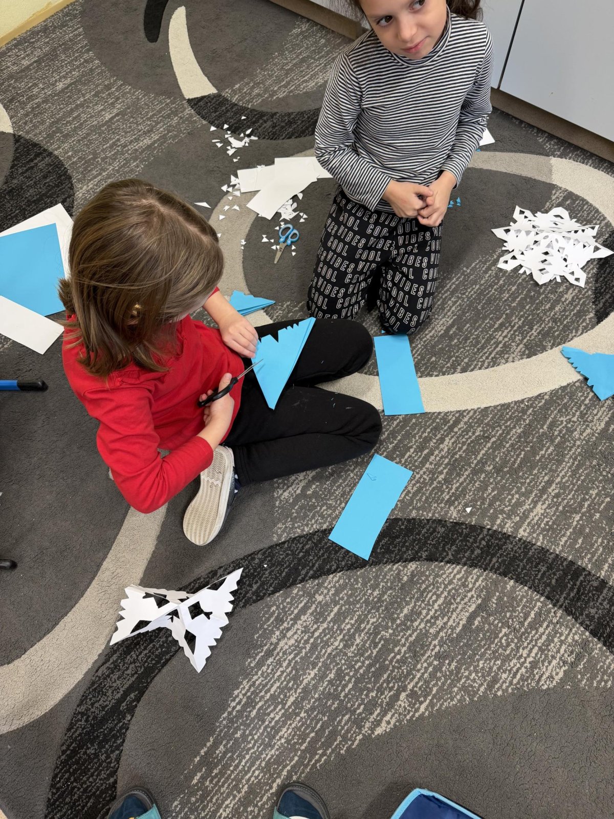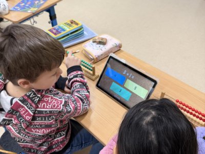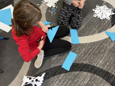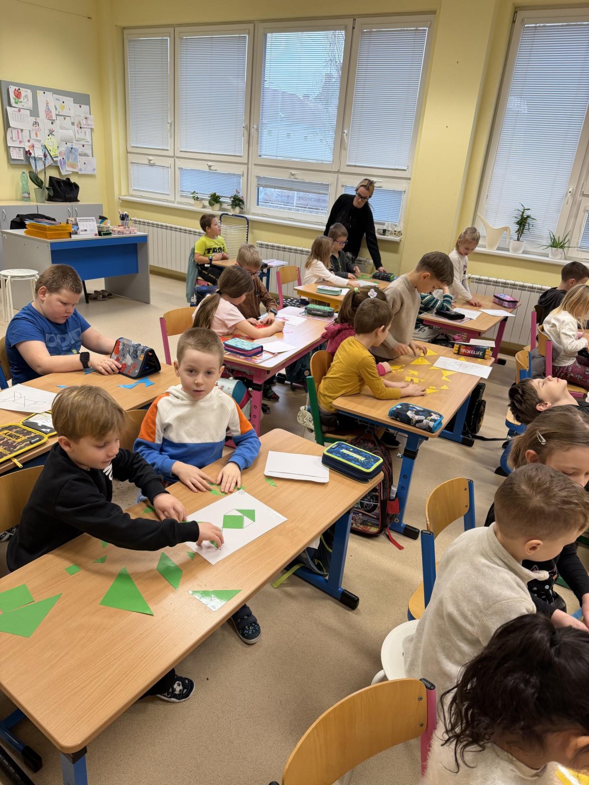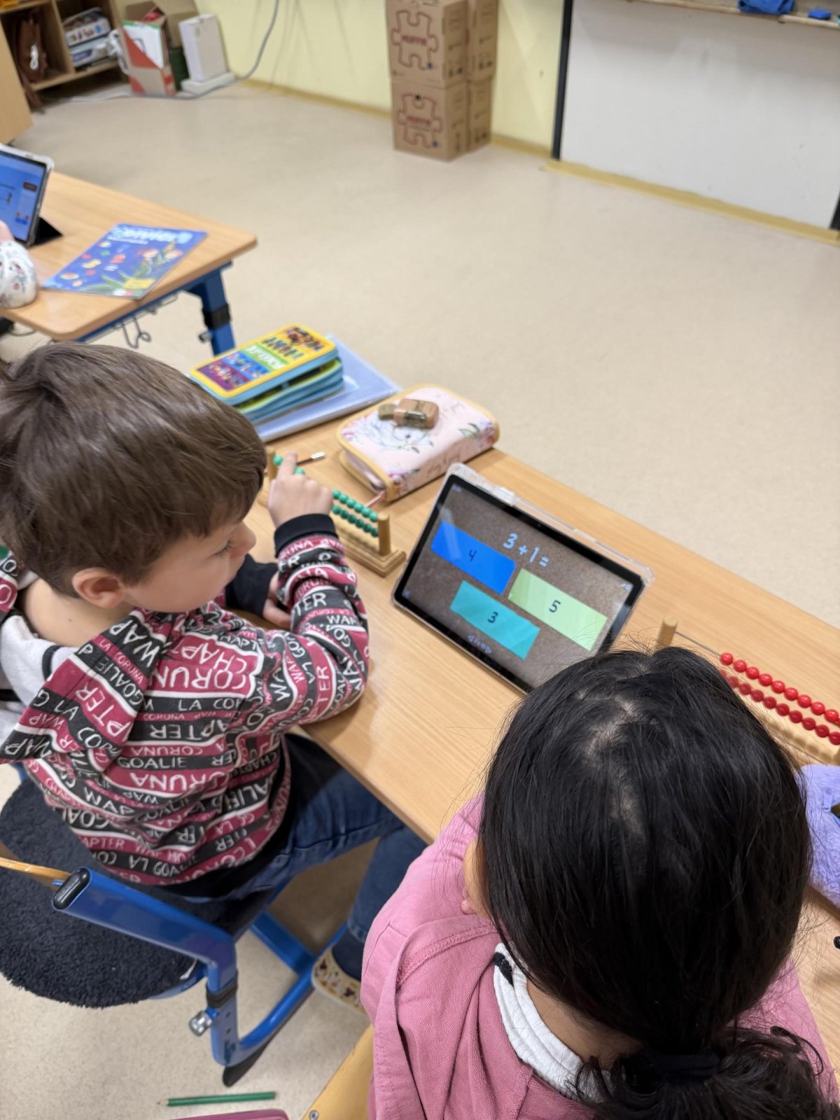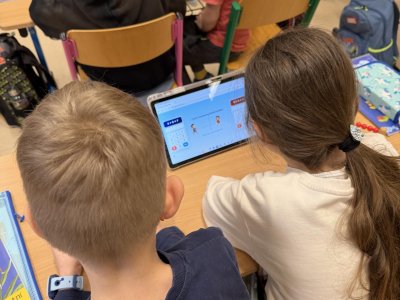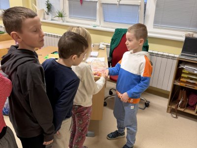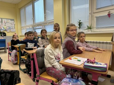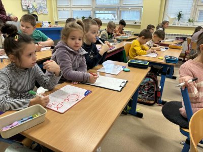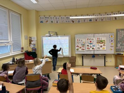 Několikrát nás přišli navštívit předškoláčci z mateřských školek, aby se podívali, co vše už umíme a jaké to ve škole vlastně je. Stihli jsme si vyrobit paní Zimy a zopakovat počty na tabletech, to byla pro nás zábava :).