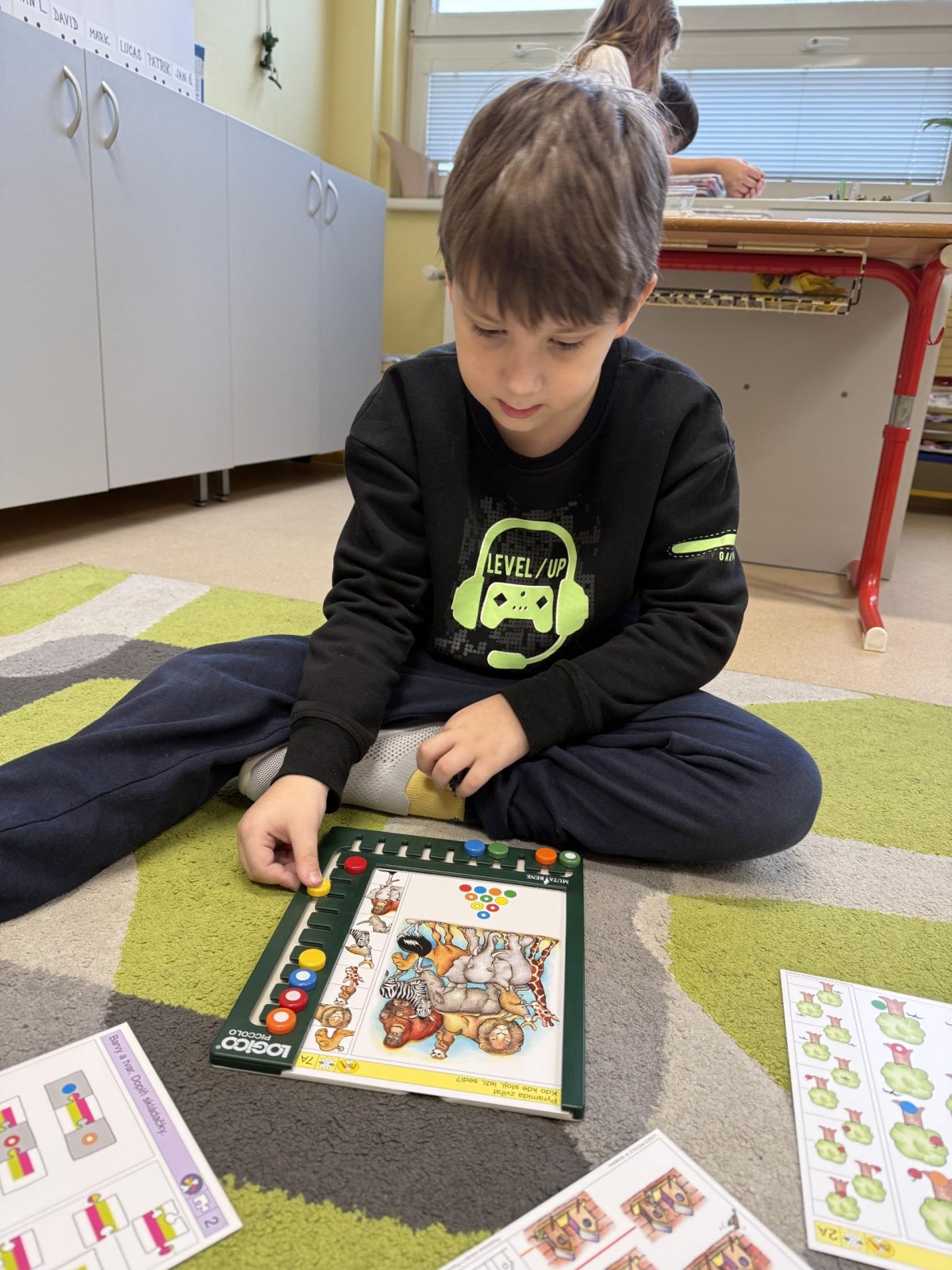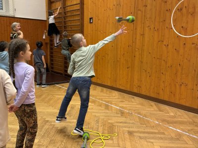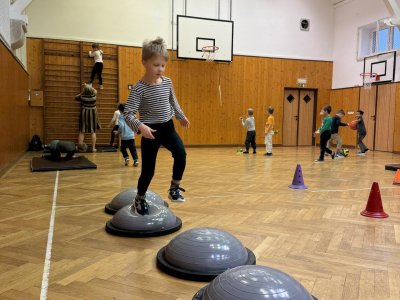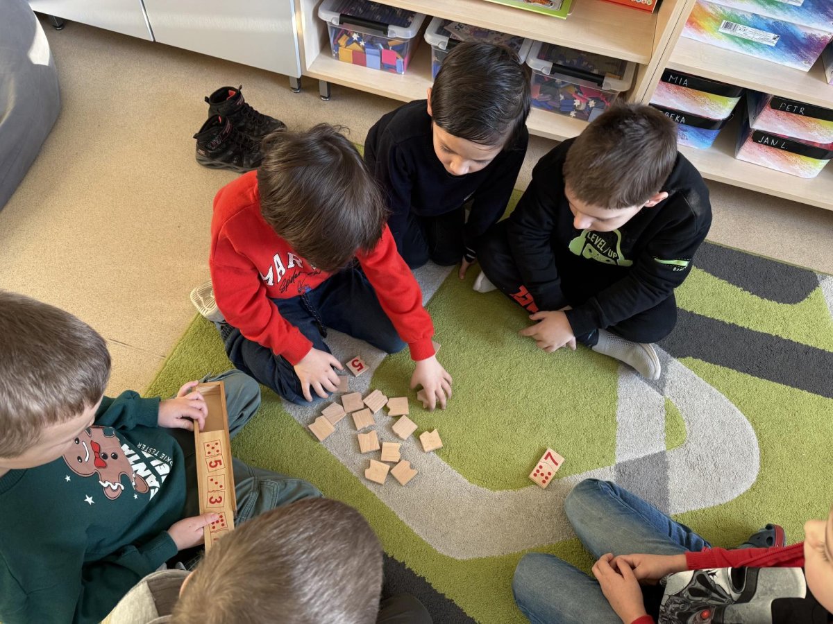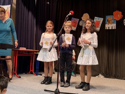 Střípky ze sportovního dne, účastníci Slavíčka a recitační soutěže, stavebnice Seva, práce v dílnách s vyřezávacím strojem BigShot, matematické hrátky, divadlo, nové písmeno J...