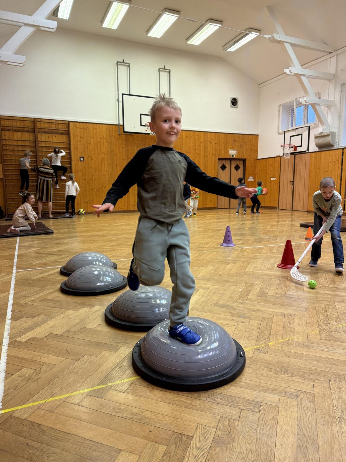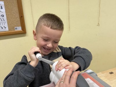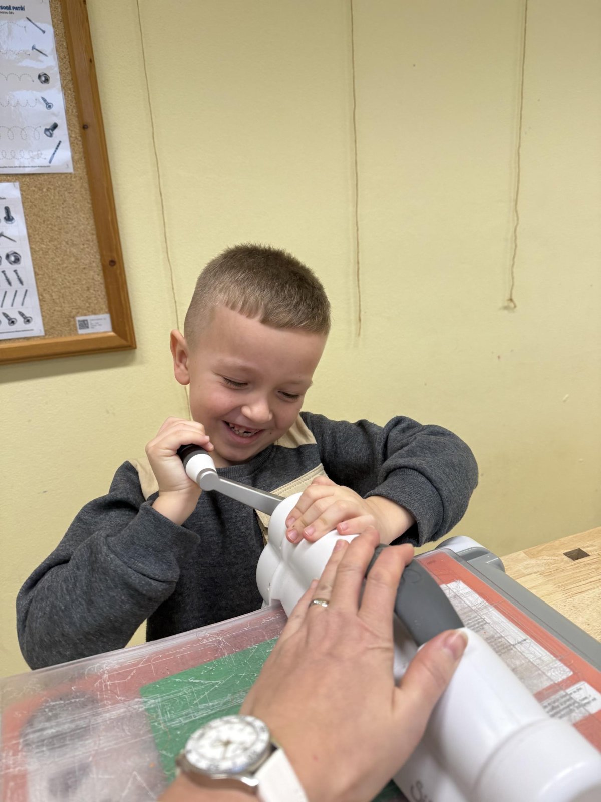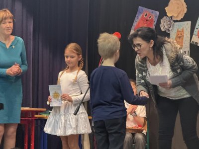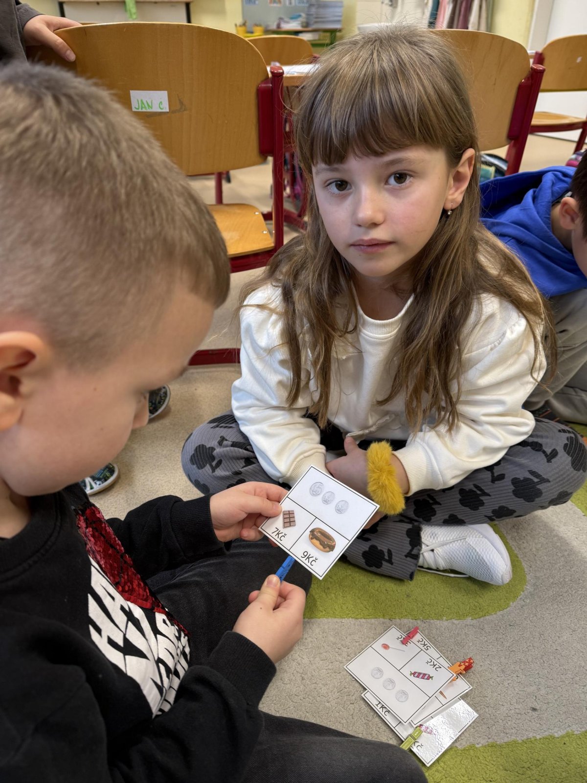 Střípky ze sportovního dne, účastníci Slavíčka a recitační soutěže, stavebnice Seva, práce v dílnách s vyřezávacím strojem BigShot, matematické hrátky, divadlo, nové písmeno J...