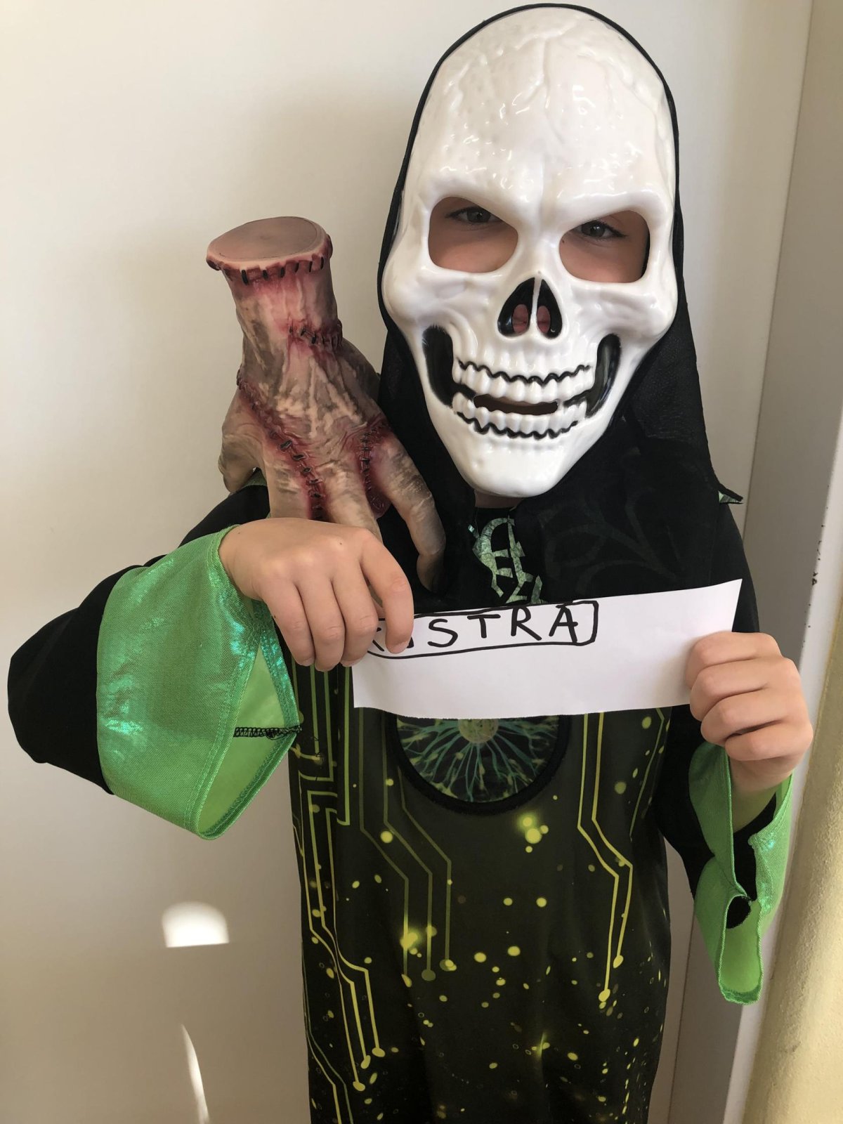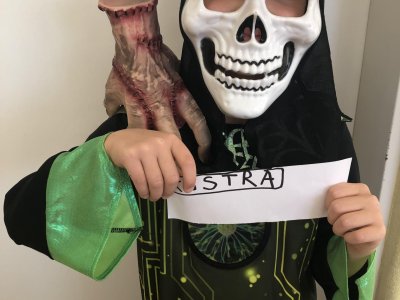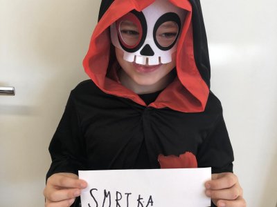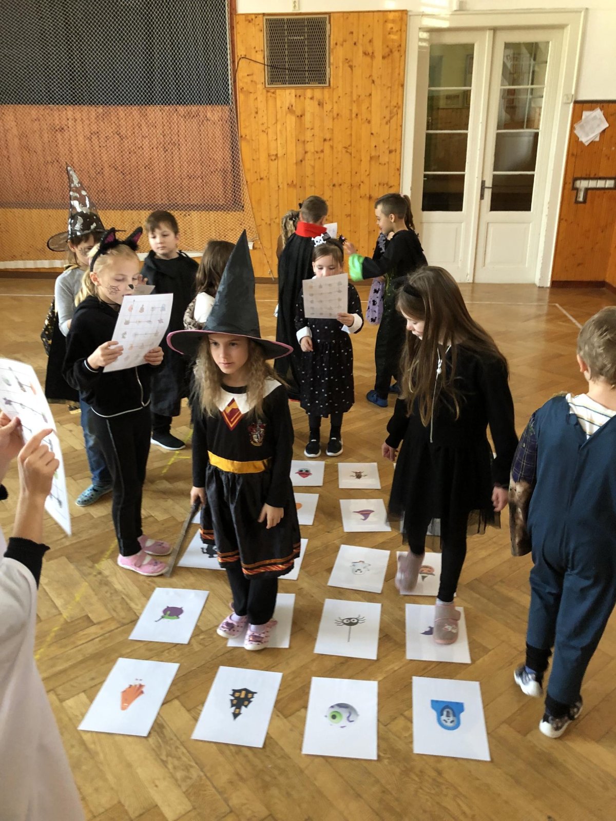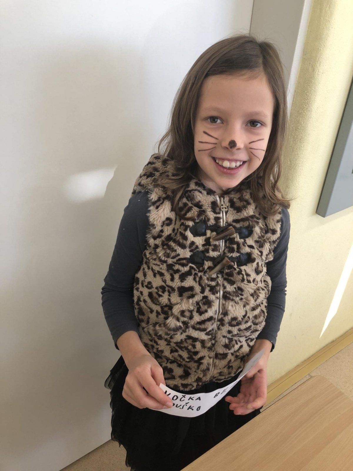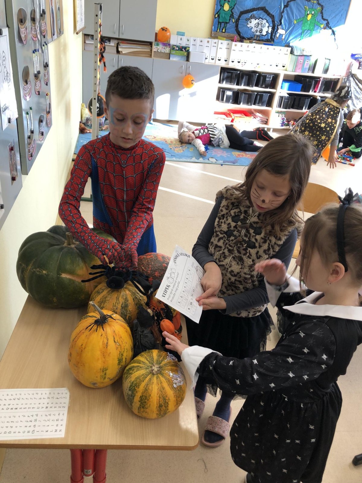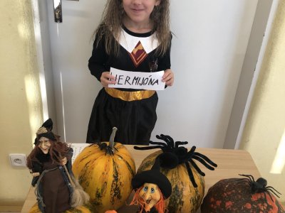 Dnešní den byl jiný. Všichni jsme měli kostýmy a představili jsme spolužákům své masky. Pak jsme plnili úkoly na dýňové stezce. Aby se Sárinka necítila osamocená v kostýmu ducha Ducháčka, tak jsme si vyrobili lízátkové duchy. Nezapomněli jsme na plnění halloweenských úkolů z matematiky a z českého jazyka. I piknik byl díky rodičům báječný - na stole šneci, prsty, muffiny a spousta dalších dobrot. A už také víme, čím se liší Halloween a české Dušičky.