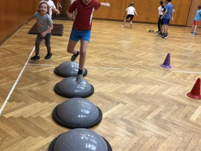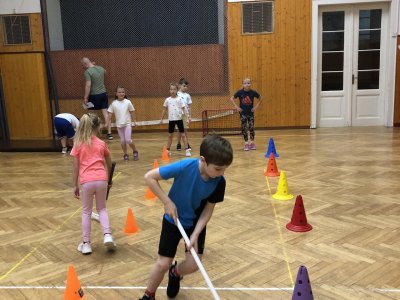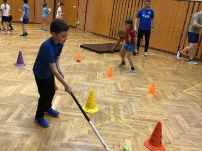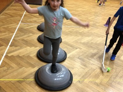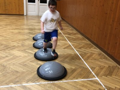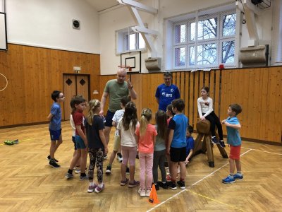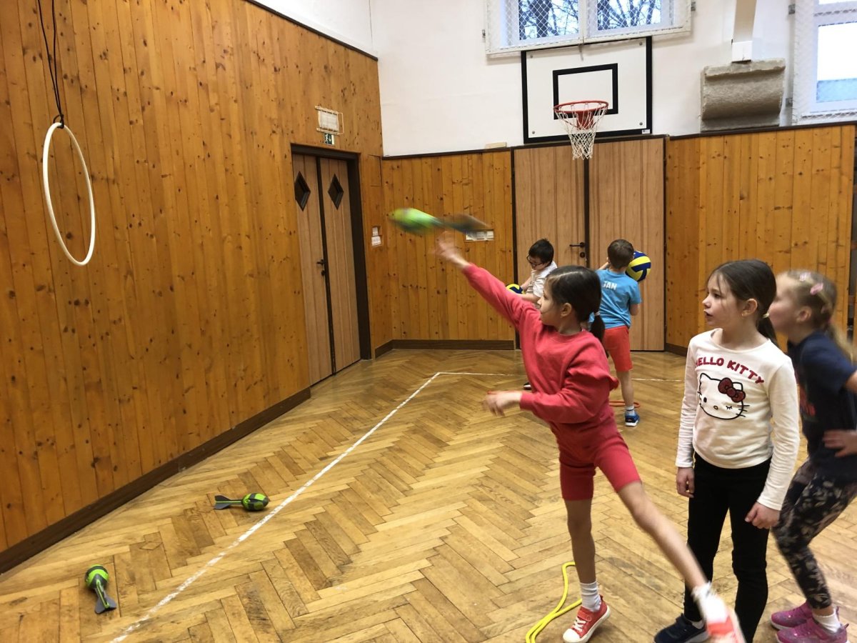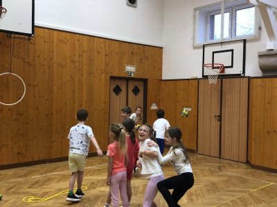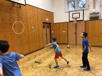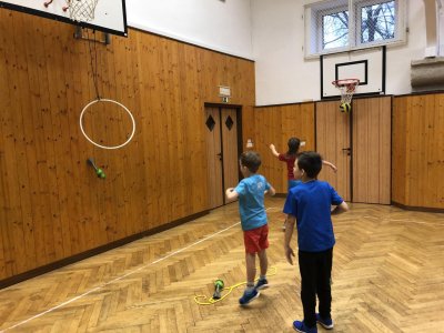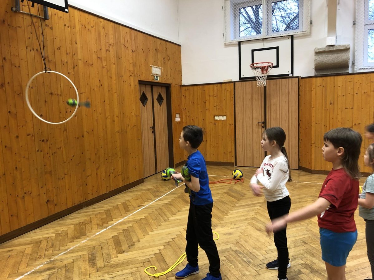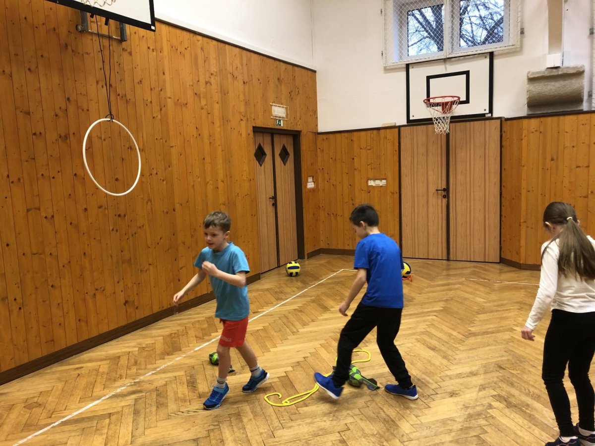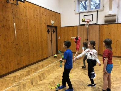 V tělocvičně byly pro žáky nachystané různorodé aktivity. Nesoutěžilo se, bylo důležité se hýbat a to jsme splnili všichni dokonale.