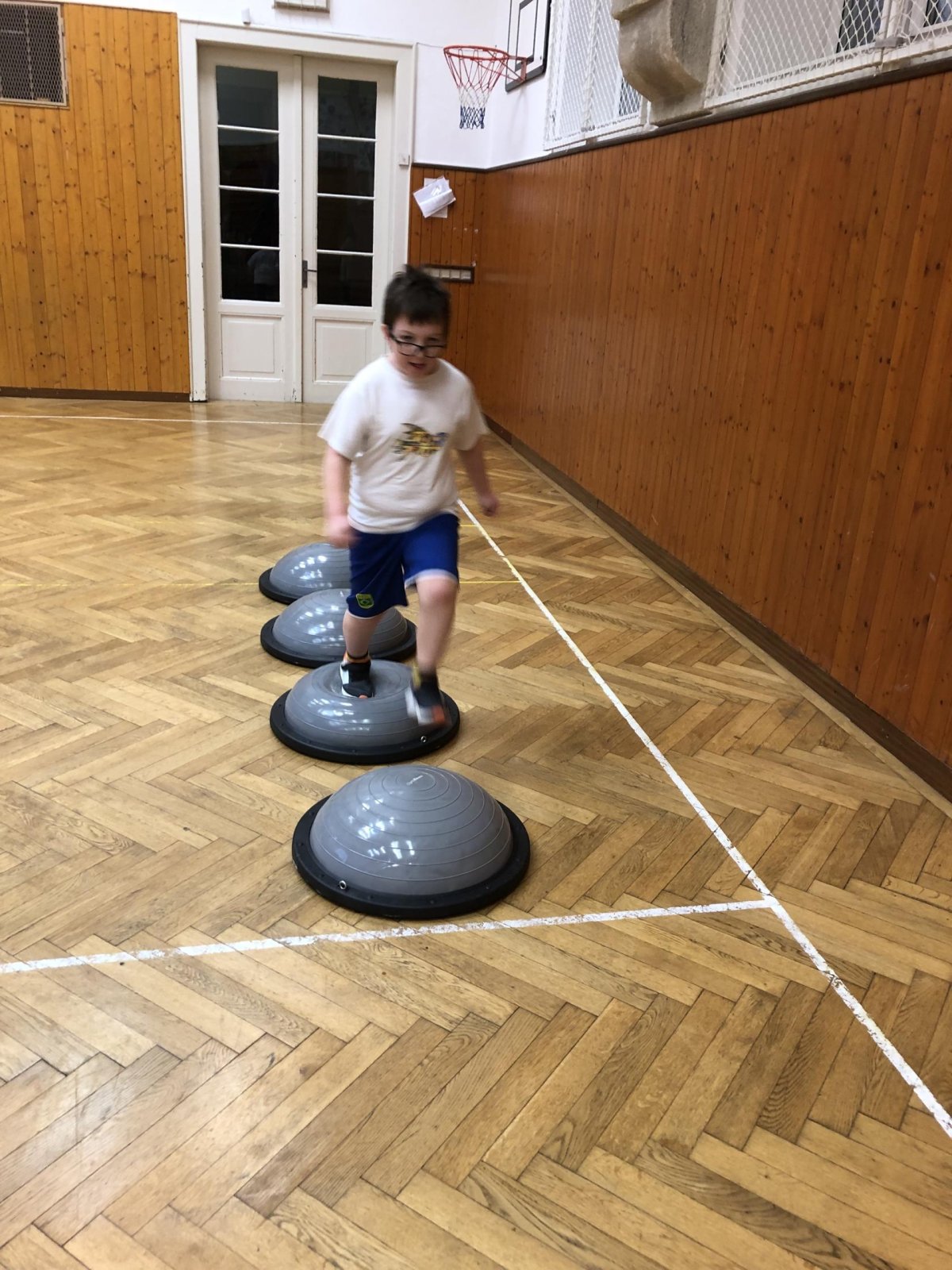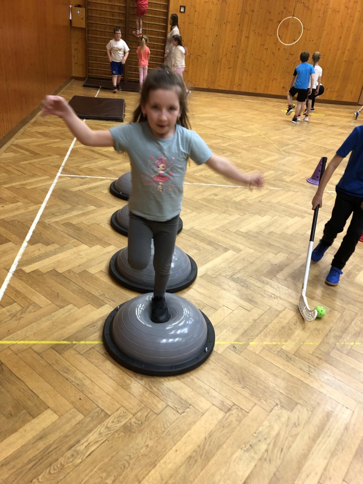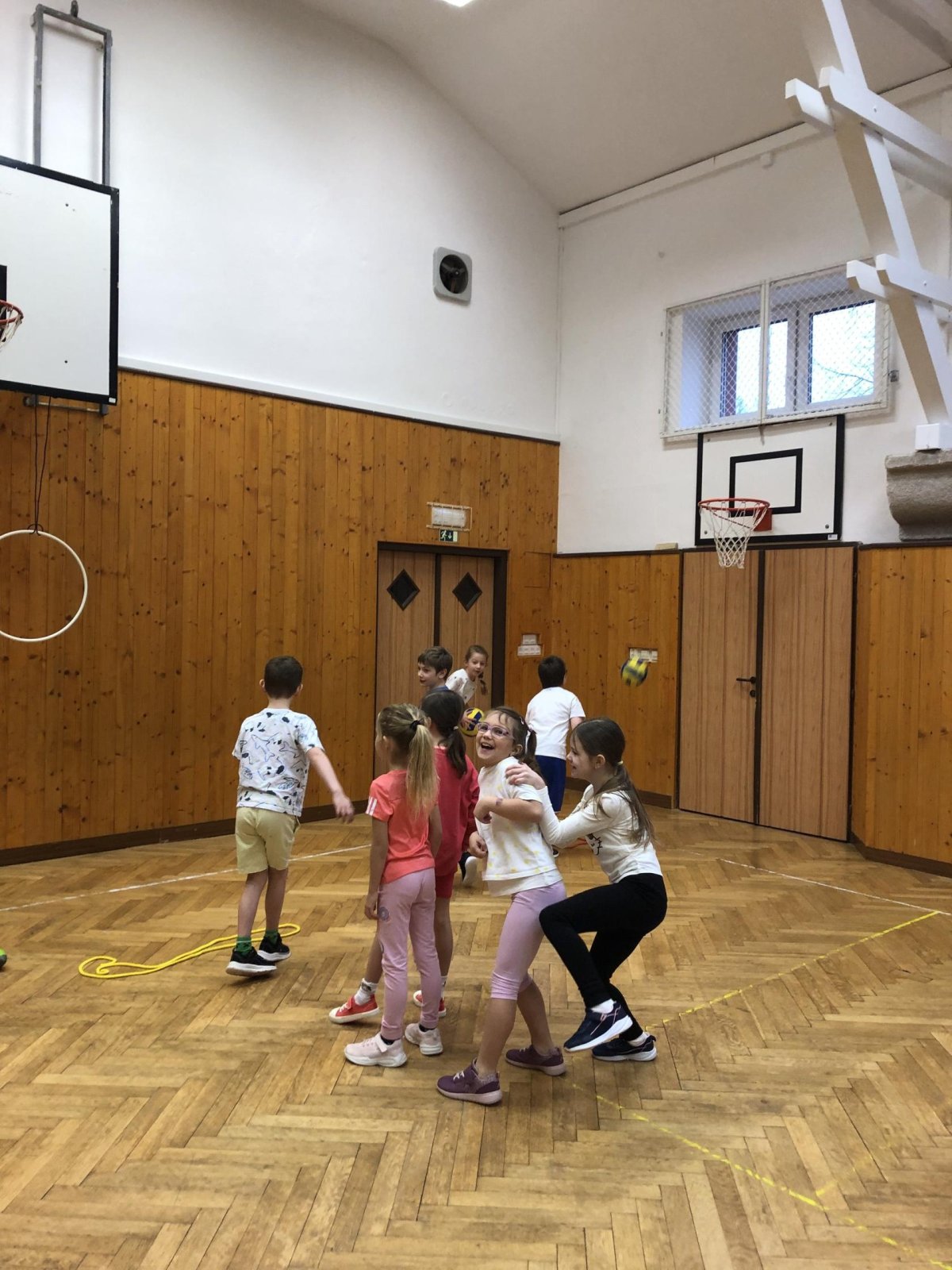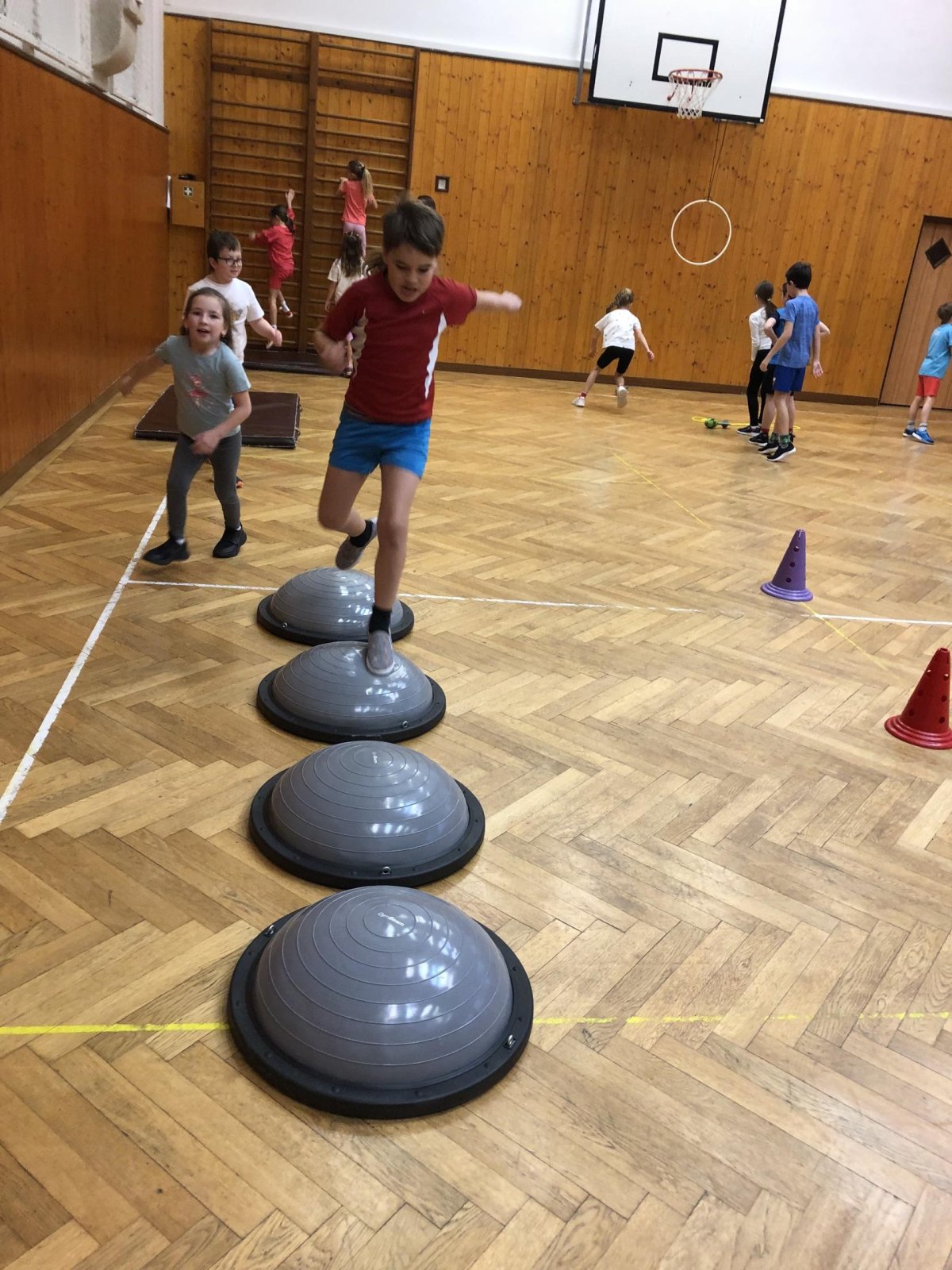 V tělocvičně byly pro žáky nachystané různorodé aktivity. Nesoutěžilo se, bylo důležité se hýbat a to jsme splnili všichni dokonale.