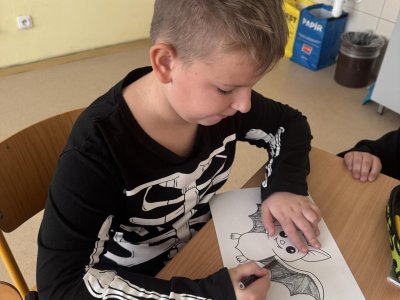 Nejprve jsme si vyrobili létajícího netopýra, pak jsme si dali všelijaké dobrůtky, které jsme si donesli. Dále pak na nás čekal dýňová stezka, která potrápila naše hlavičky. Potom jsme si zaskočili do fotokoutku udělat si památku na tento den. Na závěr na nás čekal jeden ze strašidelných dílů Městečka záhad.