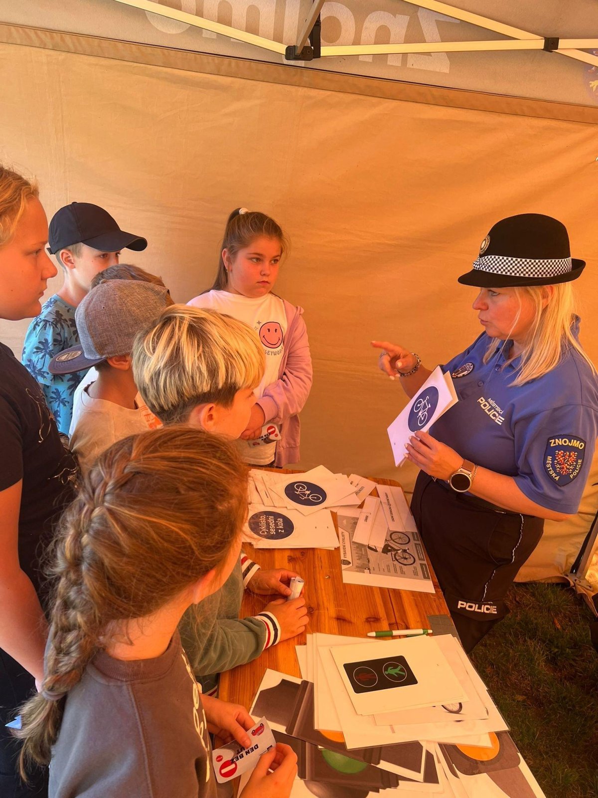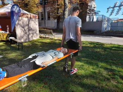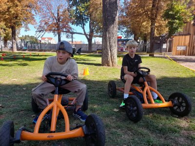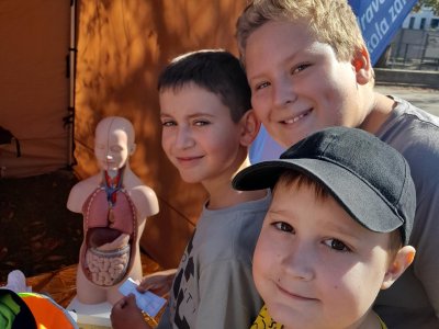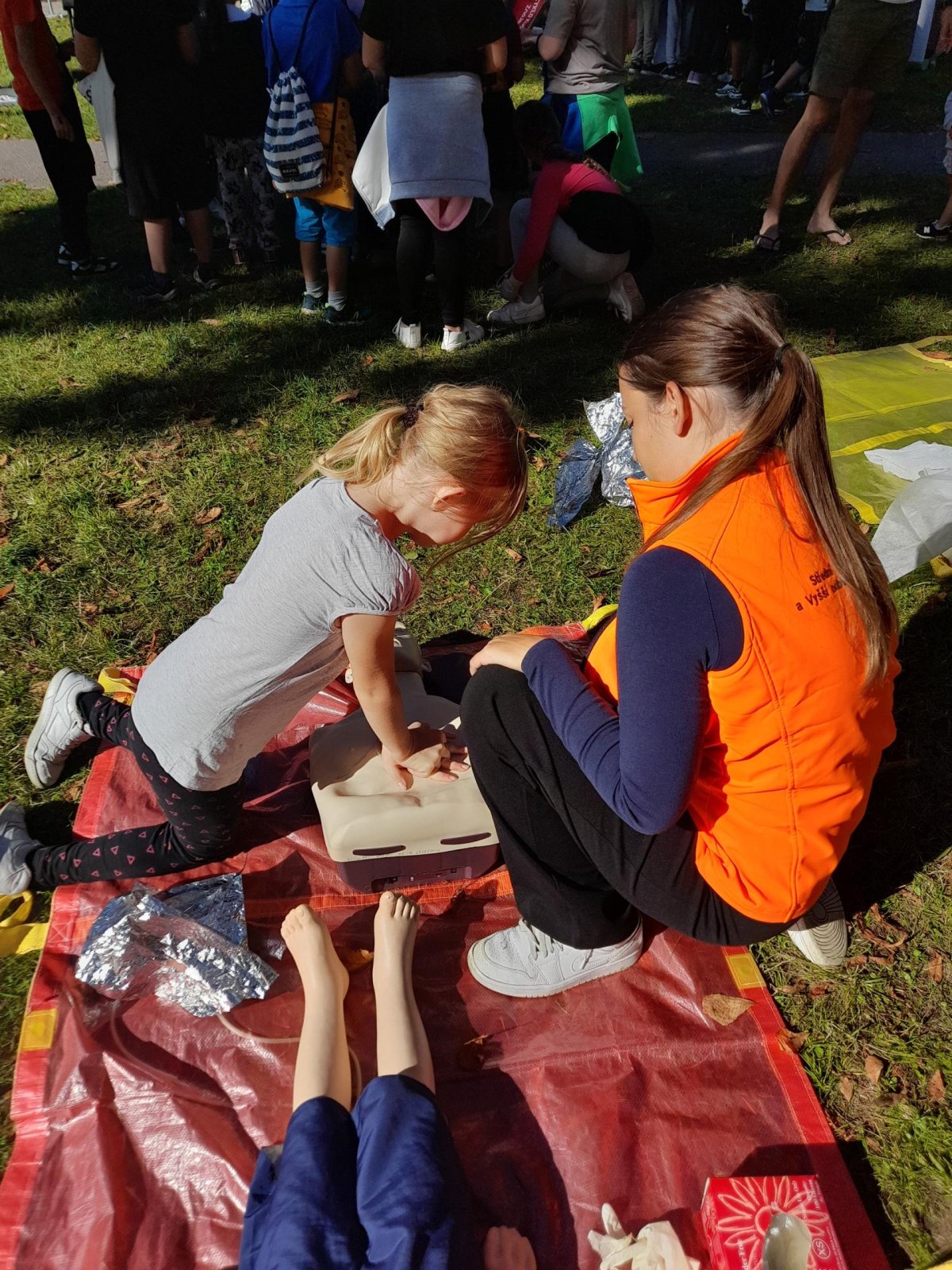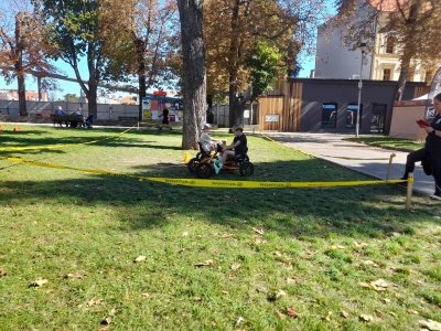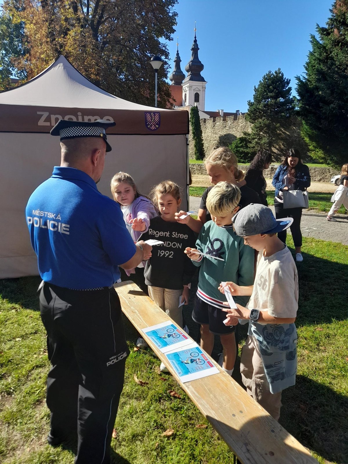Další veselé dopoledne, mimo budovu školy a za krásného počasí jsme prožili v pátek 19. 9. 2025. V Horním parku připravili zástupci Městské policie, zdravotníků, Městských lesů a dalších poskytovatelů různých služeb pro děti zábavné a naučné aktivity, které si žáci mohli vyzkoušet sami na sobě, měli možnost ověřit si svoje vědomosti a dovednosti a užít si společně mnoho zábavy i legrace. Při zpáteční cestě do školy jsme si ještě nafotili několik hezkých památek v parku před školou.
