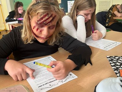 31. října je den, kdy lidé po celém světě slaví Halloween - svátek, který pochází z dob Keltů a jejich života na území střední Evropy; svátek, který se postupně dostával do povědomí lidí po celém světě... Svátek, který si připomínáme i my Češi, přestože za náš považujeme až 2. listopad - Památku zesnulých. Některé momenty mají tyto svátky společné, v jiných se liší. To už si ale každý může dohledat a přešíst v nejrůznějších zdrojích. Vy teď však máte možnost podívat se, jak tuto tradici uchopili žáci 4.A.