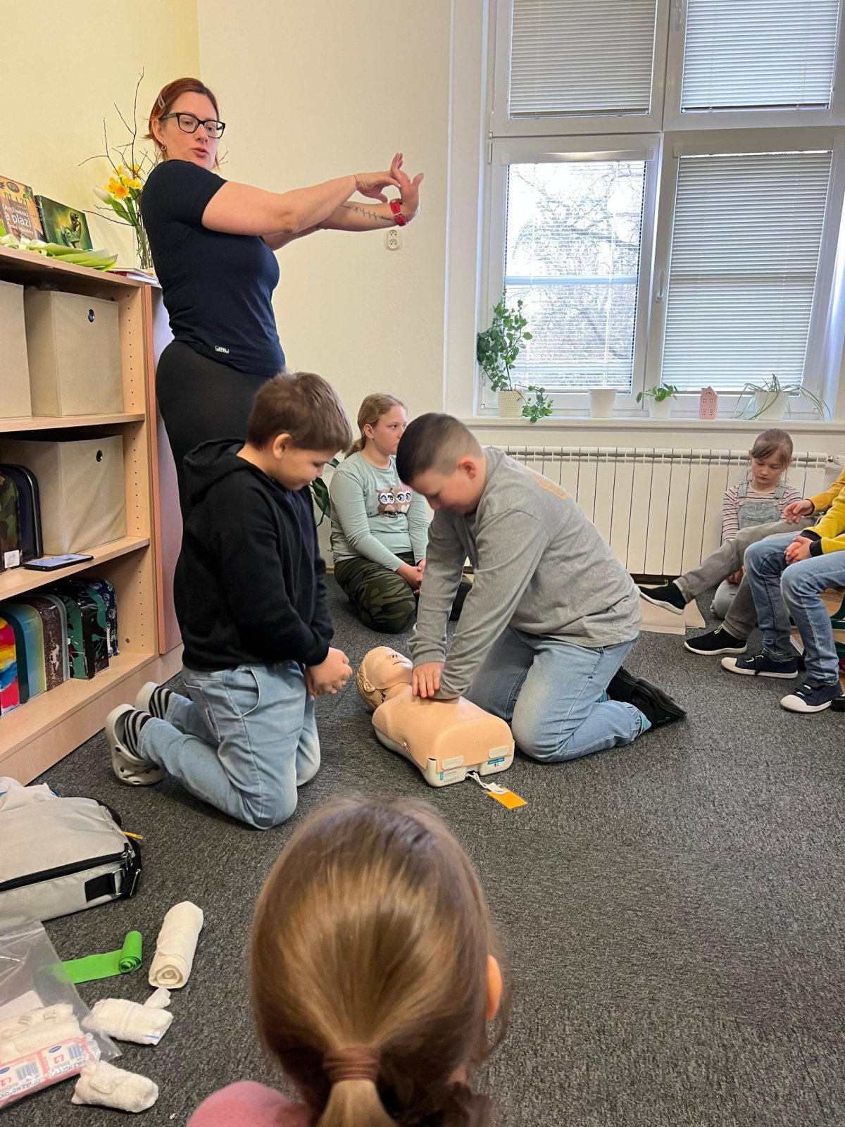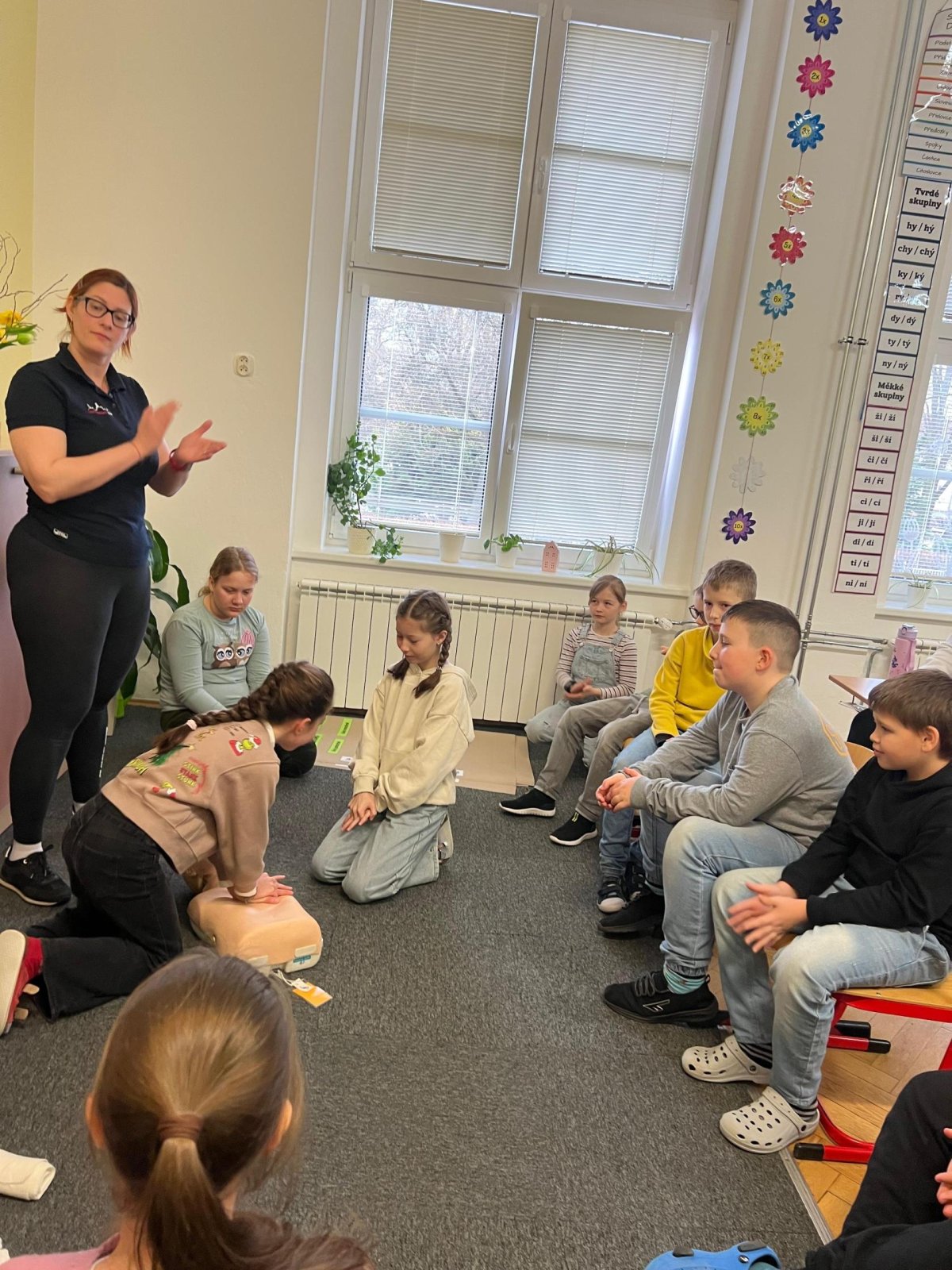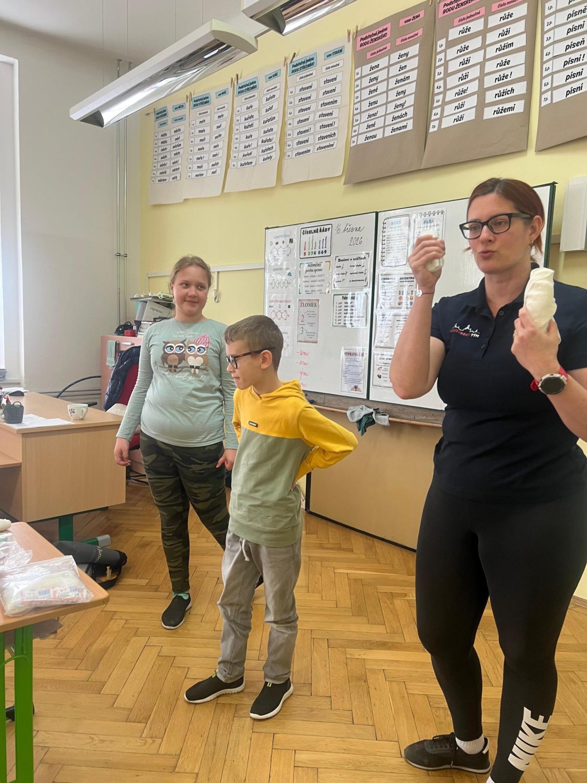 Pondělní ráno 16. března nám zahájila zdravotnice ze záchranné služby, která dětem vysvětlila a ukázala zásady první pomoci. Během programu si děti zkoušely různé postupy a způsoby, jak v případě potřeby pomoci kamarádovi nebo komukoliv jinému. Čas strávený se zdravotnicí Bárou Minaříkovou všechny moc bavil a my se těšíme na nějaké příští setkání.