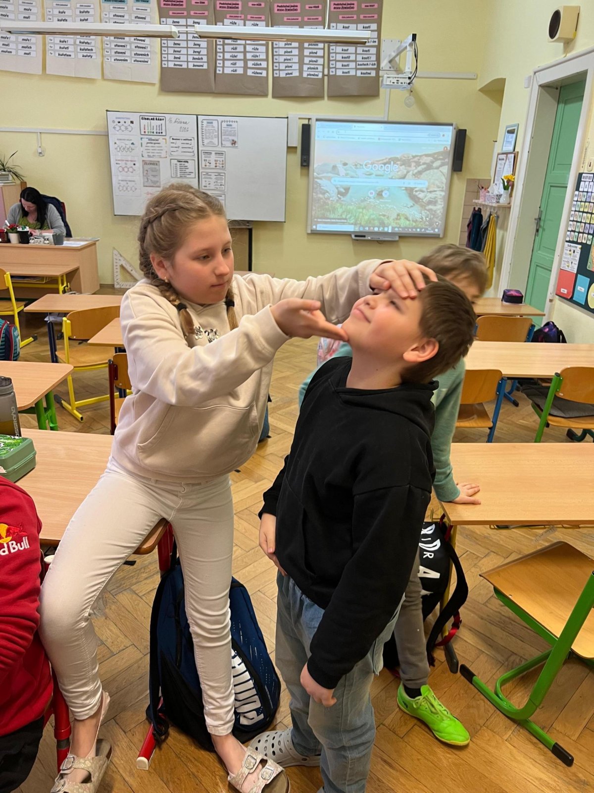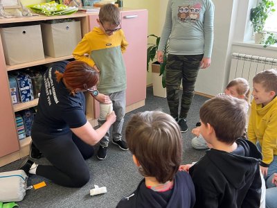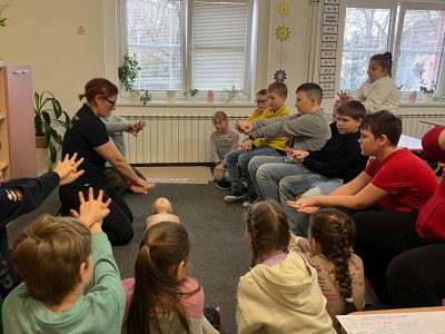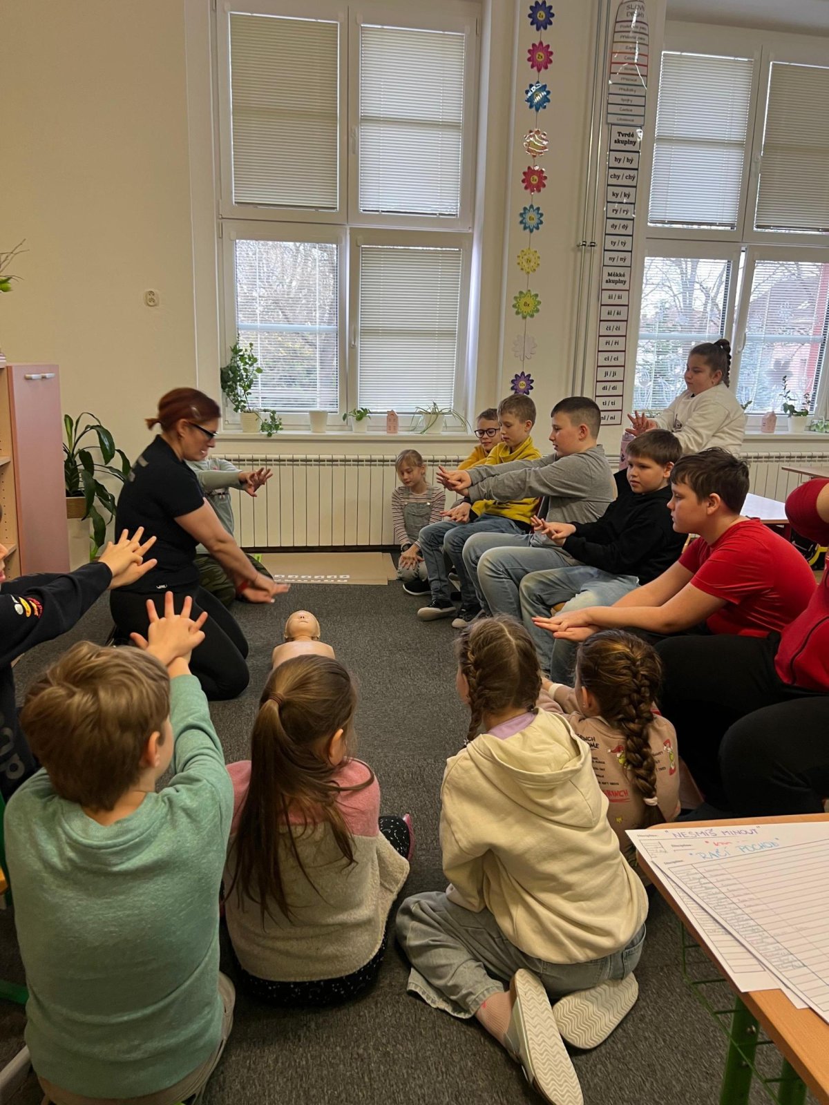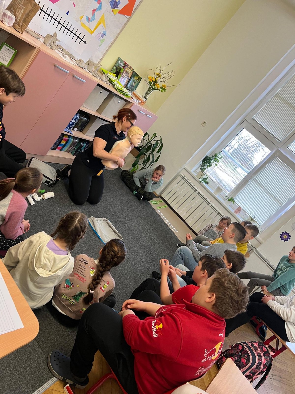 Pondělní ráno 16. března nám zahájila zdravotnice ze záchranné služby, která dětem vysvětlila a ukázala zásady první pomoci. Během programu si děti zkoušely různé postupy a způsoby, jak v případě potřeby pomoci kamarádovi nebo komukoliv jinému. Čas strávený se zdravotnicí Bárou Minaříkovou všechny moc bavil a my se těšíme na nějaké příští setkání.