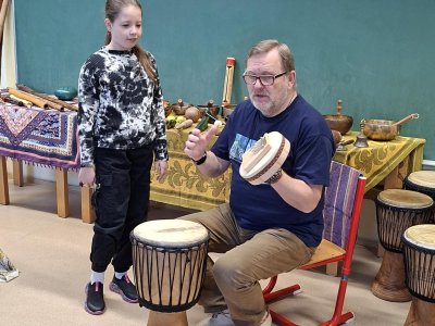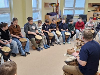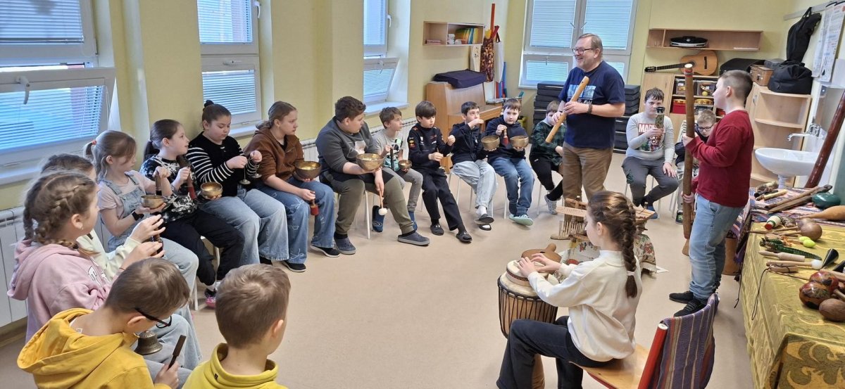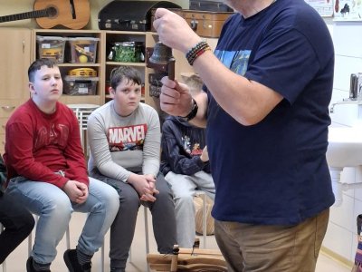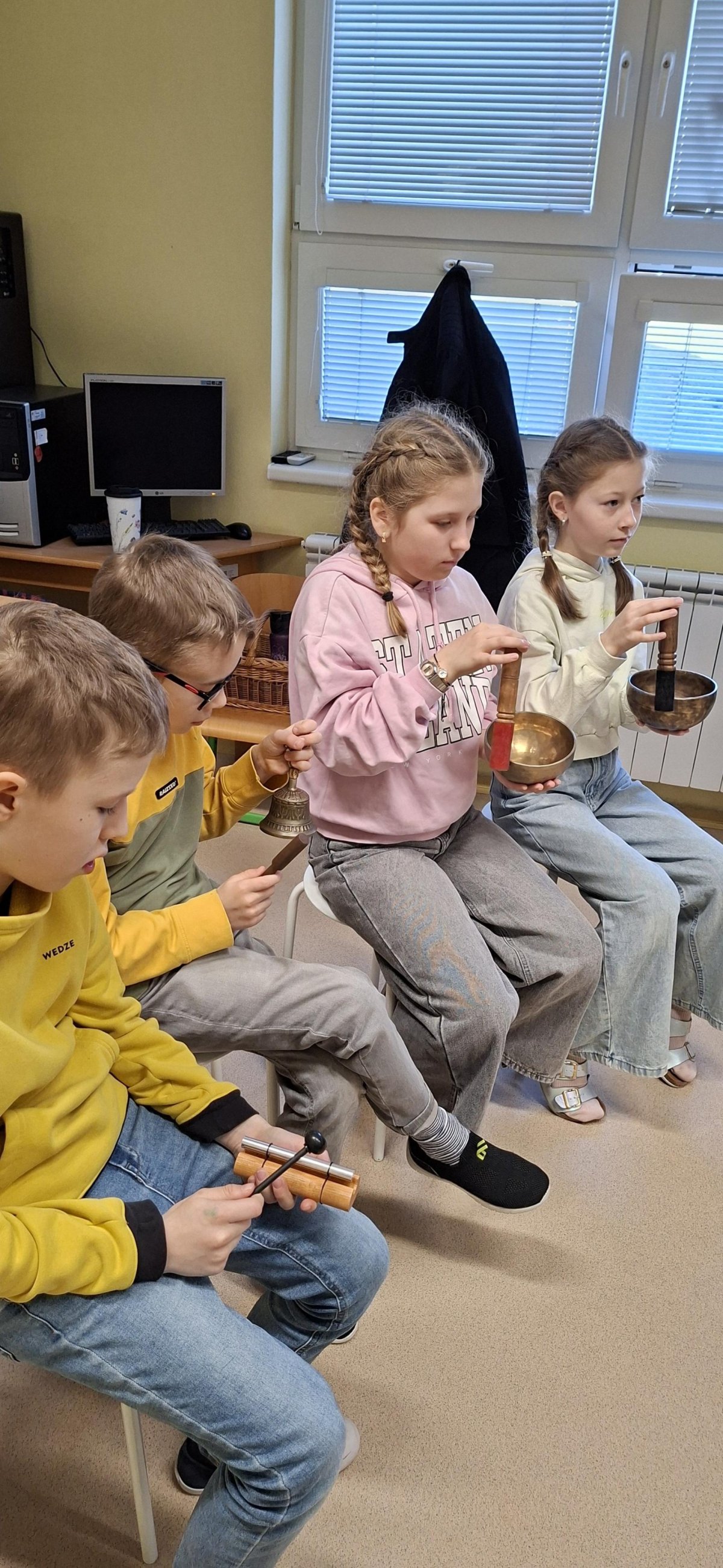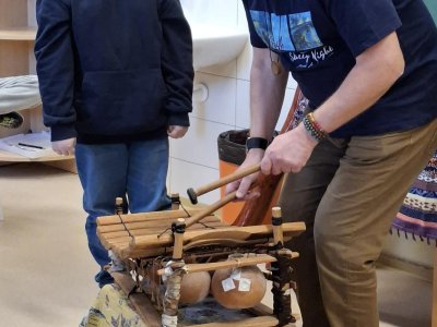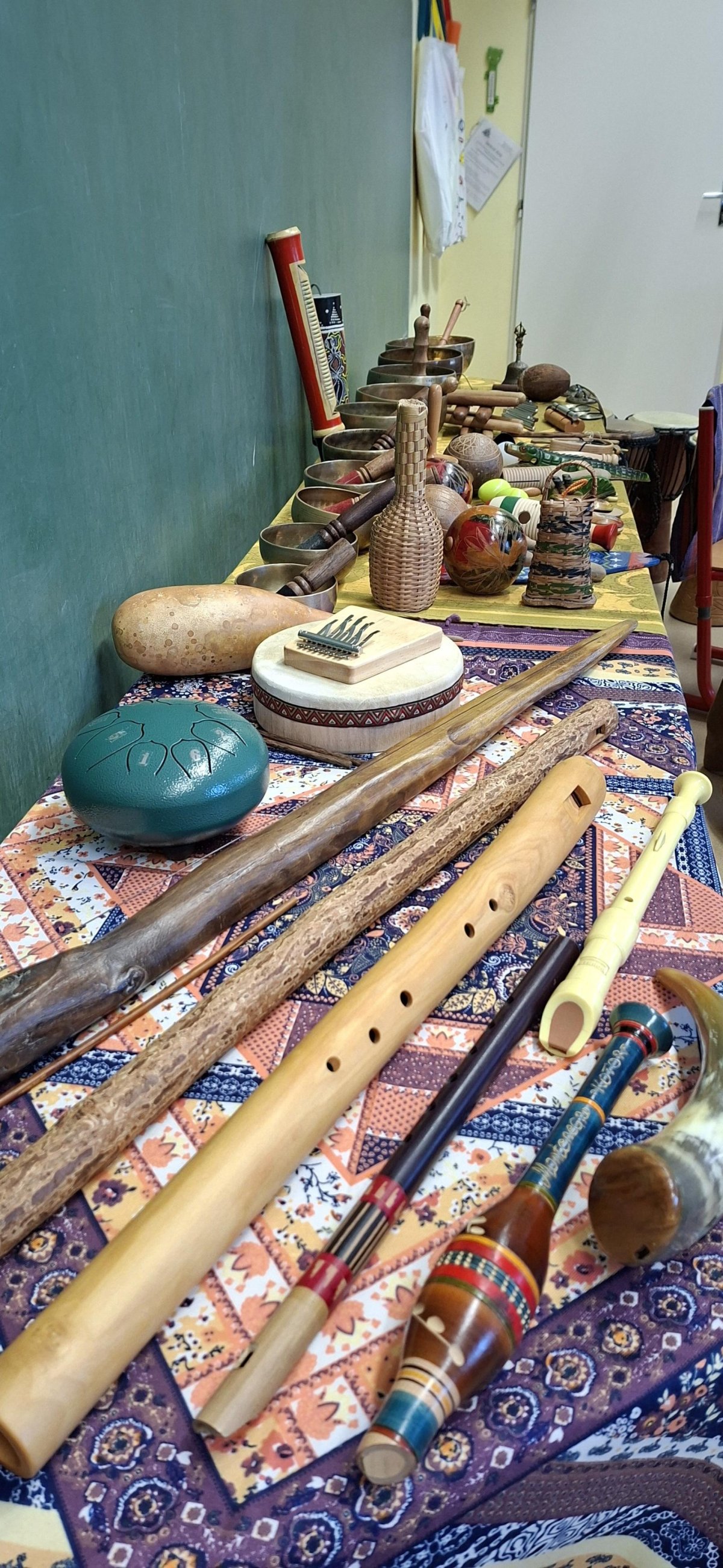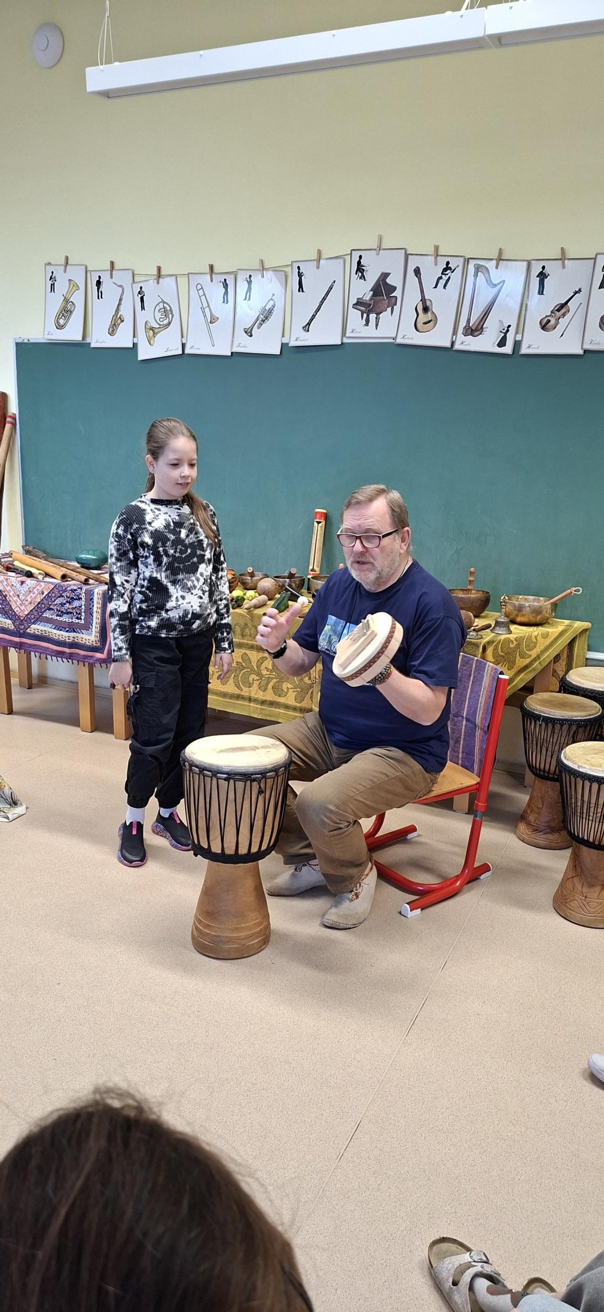 Také do naší třídy zavítal muzikoterapeut, pan Vysočan. Nejdříve nám vyprávěl o vzniku prvních hudebních nástrojů a mnohé zajímavosti o nich. Toto své povídání doplňoval ukázkami jednotlivých nástrojů i hrou na ně. Nakonec si samozřejmě i sami žáci zkusili, jak se na některé z nich hraje, bubnovali podle udávaných rytmů a také díky léčivým nástrojům vytvořili nádhenrnou hudební kulisu ke klidné, krátké meditaci.