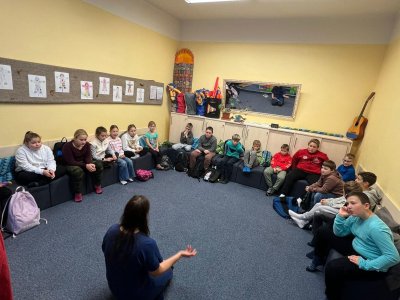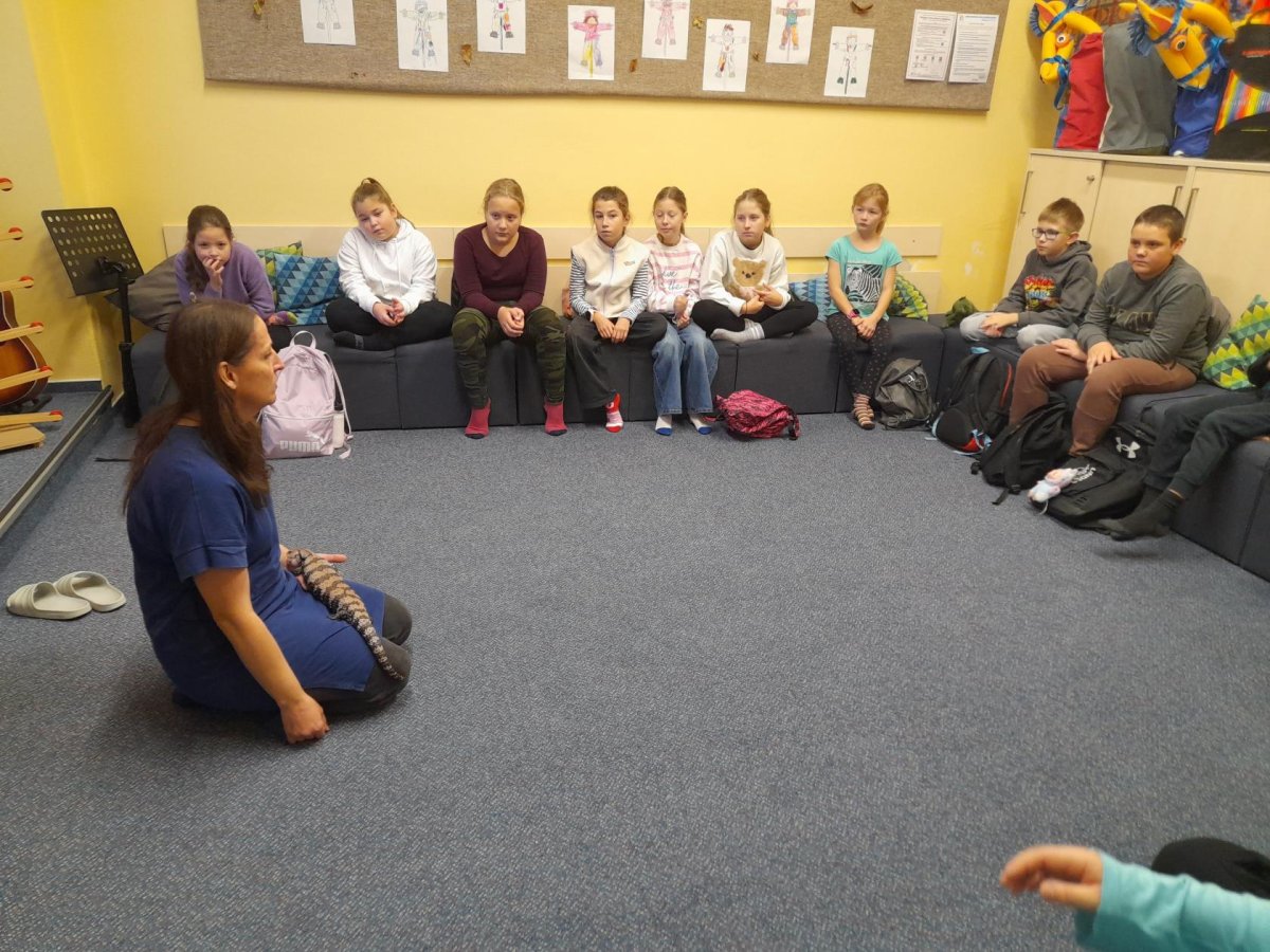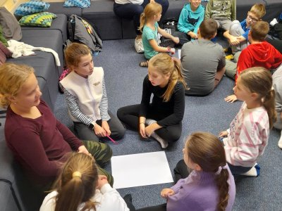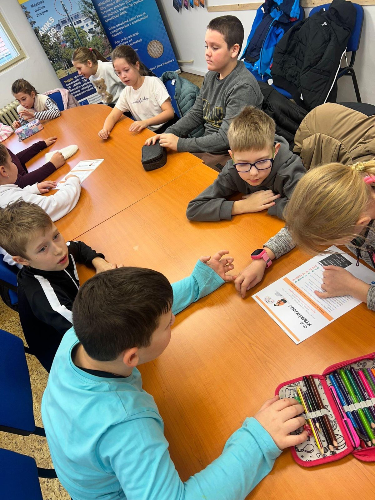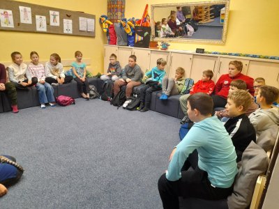 Čtvrteční exkurze byla pro naše čtvrťáky velmi zajímavá i poučná. Navštívili jsme nejdříve oddělení znojemské Městské Policie. Po příchodu náš přivítala paní Smutná, kterou jsme následovali do učebny. Připravené měla téma zabývající se vztahy mezi kamarády a hrozbami, kterými nás denně obklopují sociální sítě. Děti se dozvěděly rozdíl mezi šikanou a kyberšikanou a byly seznámeny s tím, jakým chováním ve fyzickém i virtuálním světě jim mohou předcházet. Ve druhé části programu nás paní Pajdlová provedla Střediskem volného času. Žáci si zahráli spoustu zajímavých her a během závěrečné skupinové hry na Pevnost Boyard si vždy nezúčastnění z nich vyhráli s domácími mazlíčky. Jak se svým volným časem budou dále nakládat, to už je teď zase na nějakou dobu v jejich rukou a na jejich rozhodnutích. Držme jim pěsti, aby byli vždy tak dobrými kamarády, jako jsem teď a aby dokázali čelit různým nešvarům této rychlé a moderní doby.
