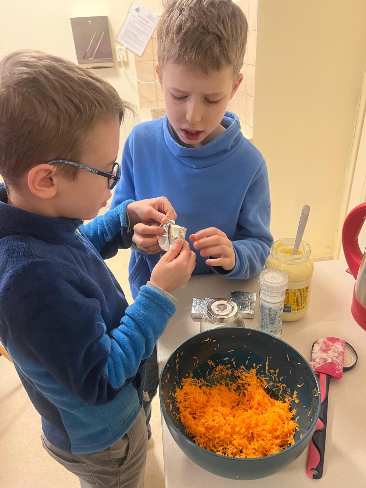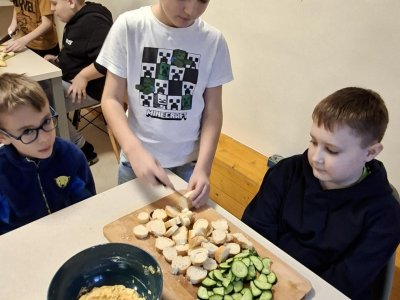 V pracovních činnostech začátkem února si naši žáci vyzkoušeli přípravu pomazánek a pečení čokoládových Muffinů. Byli rozděleni do čtyř skupin a každá z nich se věnovala jednomu receptu. Pomazánky žáci připravovali pod vedením paní asistenky, zatímco pekařkám pomáhala třídní paní učitelka. Hodina pracovních činností byla spojena s hodinou českého jazyka, takže si žáci v rámci slohové výchovy také prošli práci s připraveným pracovním listem, jehož tématem byl opět recept a vše, co k němu patří. Na konci svého snažení, po ochutnávkách a úklidu místnosti, si všichni opravdu pochutnali.