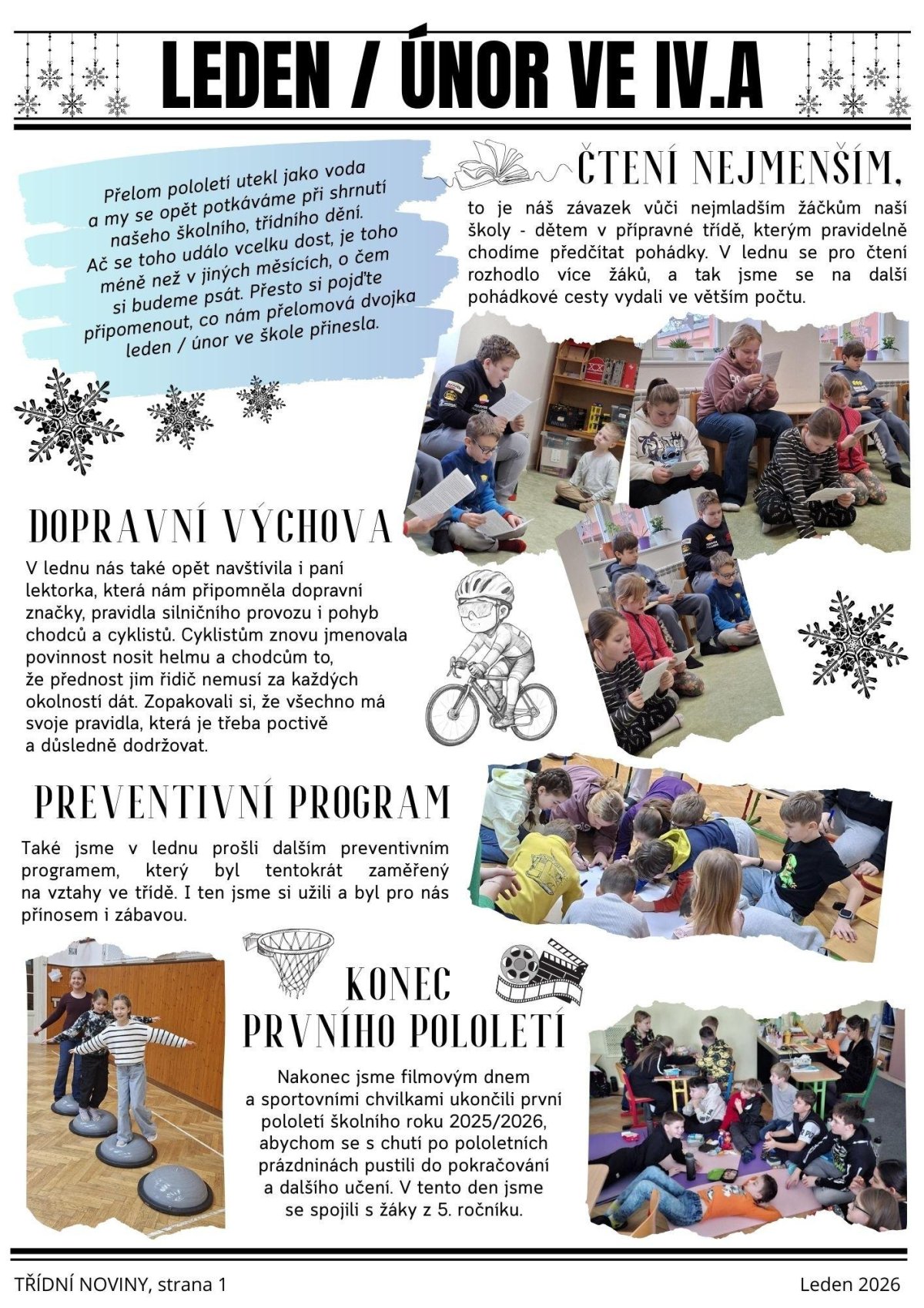Třídní plátek 4.A - ohlédnutí za měsíci lednem a únorem 2026