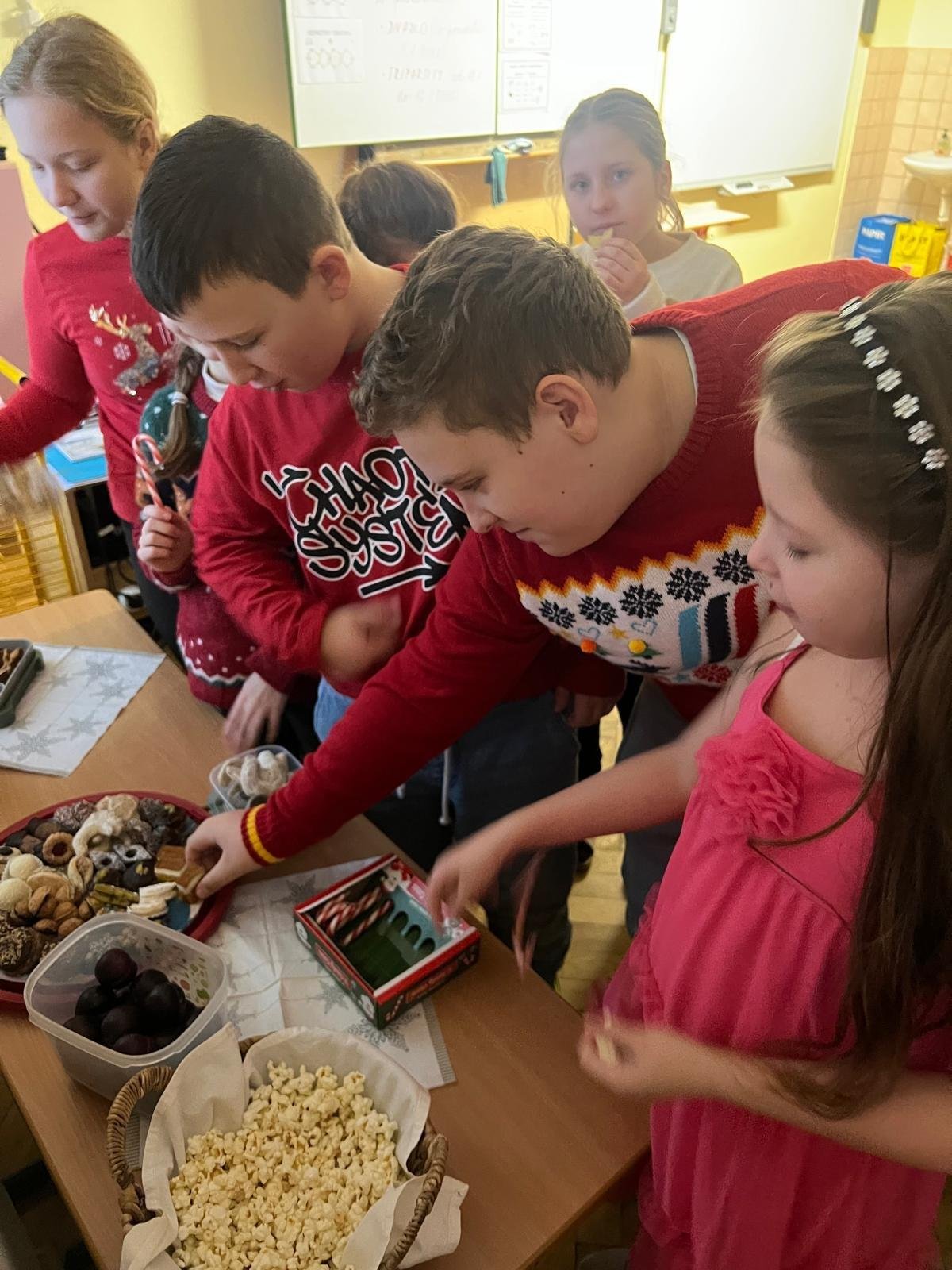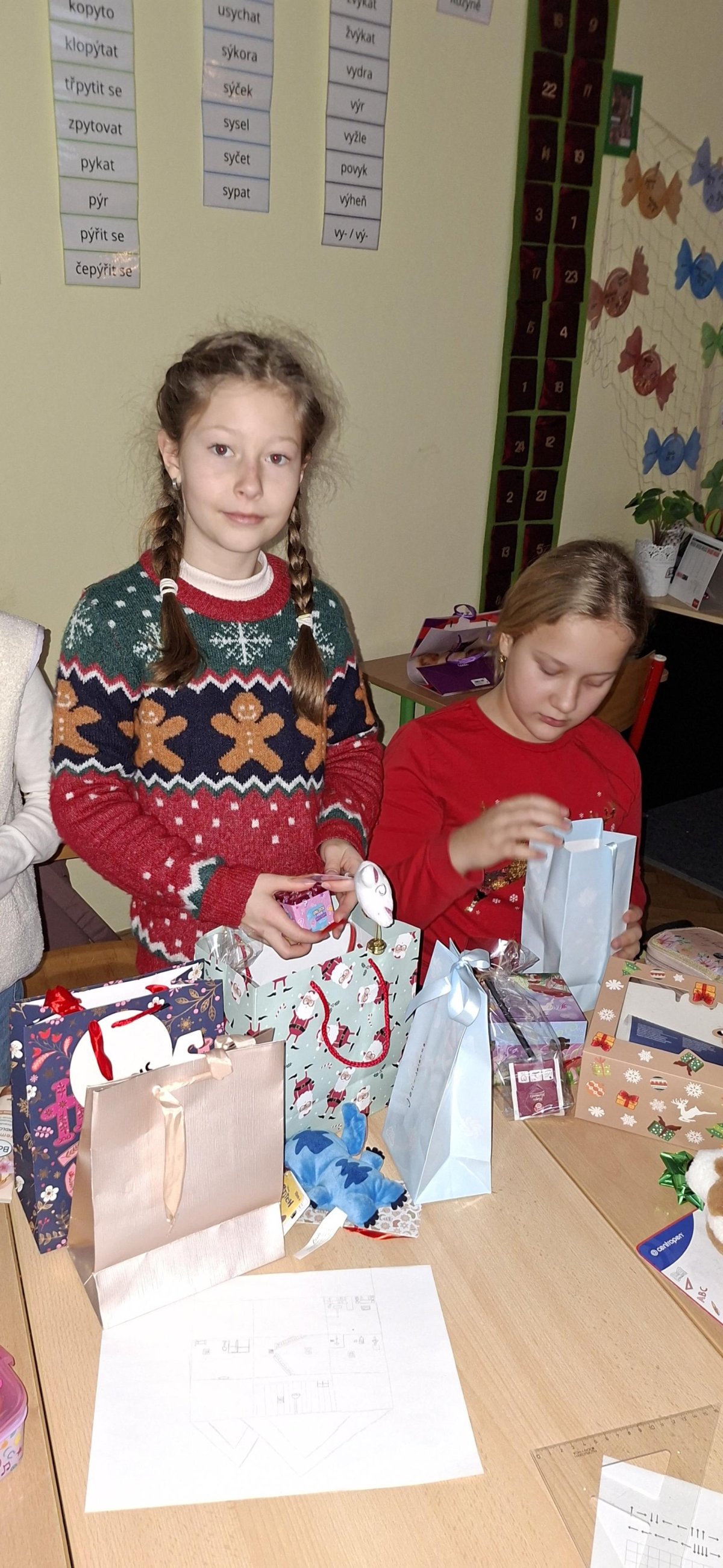 Atmosféru předvánoční doby si mnozí zpříjemňují večírky, obdarováváním přátel drobnými dárečky, vzájemným setkáváním a sdílením... vzduch je provoněn zimou, radostí i vůněmi Vánoc - cukrovím, ovocem, svíčkami... mnozí z nás jsou citlivější a vnímavější ke všem a všemu... A takovou vánoční atmosféru jsme si vykouzlili i ve třídě. Vše Vám poví naše foto-vzpomínky. A také všichni všem děkujeme za dárečky, maminkám za úžasné sladké cukroví...