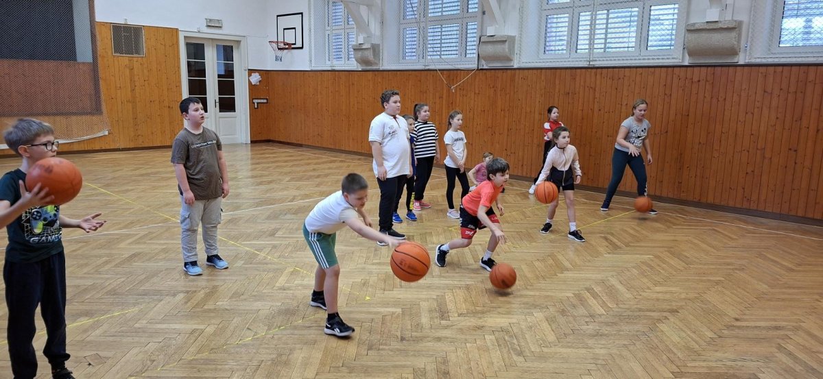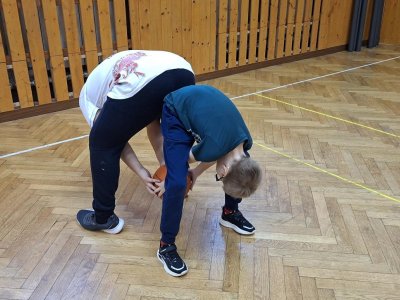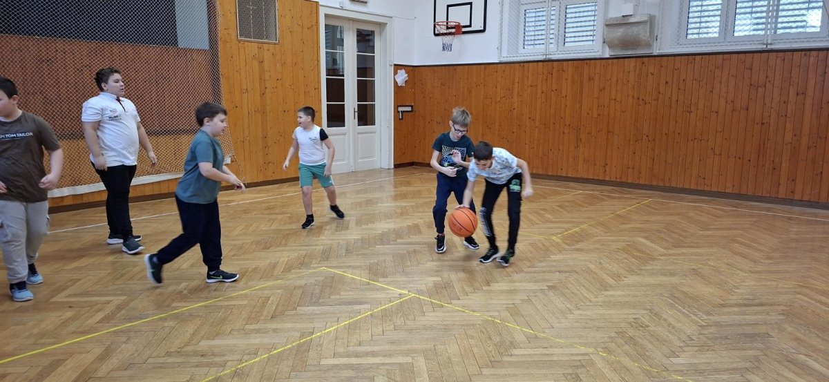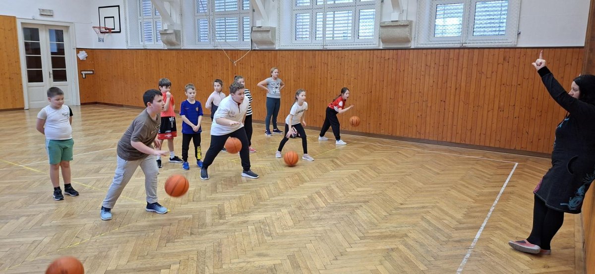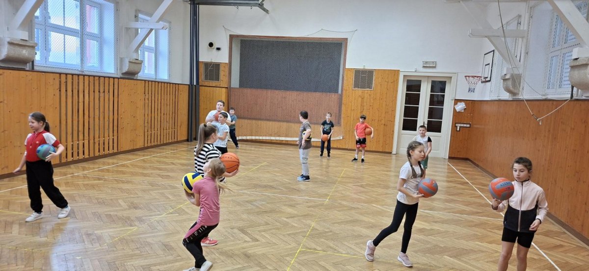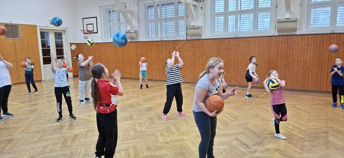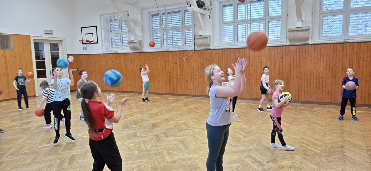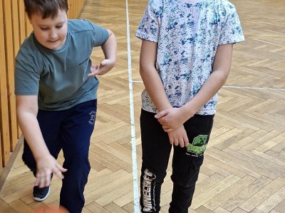 Míčové hry jsou součástí výuky tělesné výchovy, a tak jsme si dnes se žáky 4. ročníku připomněli základy basketbalu. Přestože nám chyběl dostatečný počet vhodných míčů, nezoufali jsme a některá cvičení jsme prováděli s jinými balóny. A že toto děti od cvičení neodradilo, na to se pojďte podívat společně s námi. První byla honička s míčem, kdy měli míč sebrat spoluhráčům. Potom jsme se s míči rozcvičili a následoval nácvik driblování a přihrávek. Závěrem byly hody na koš. A veřte, šlo jim to... :-)