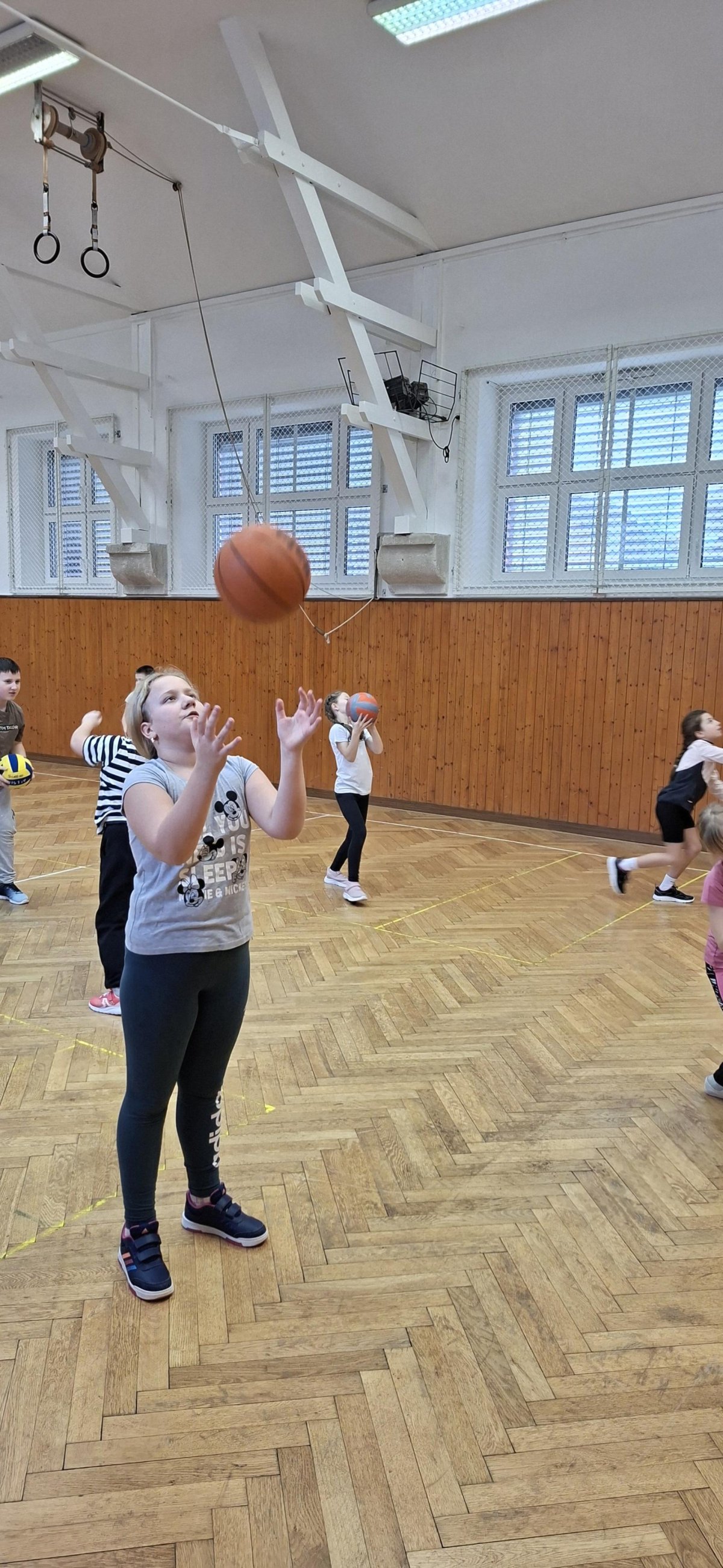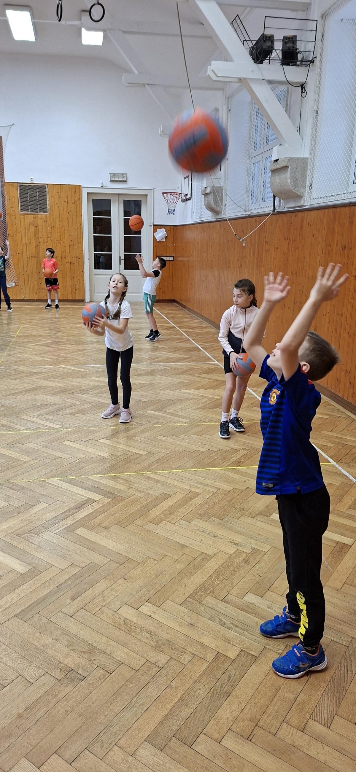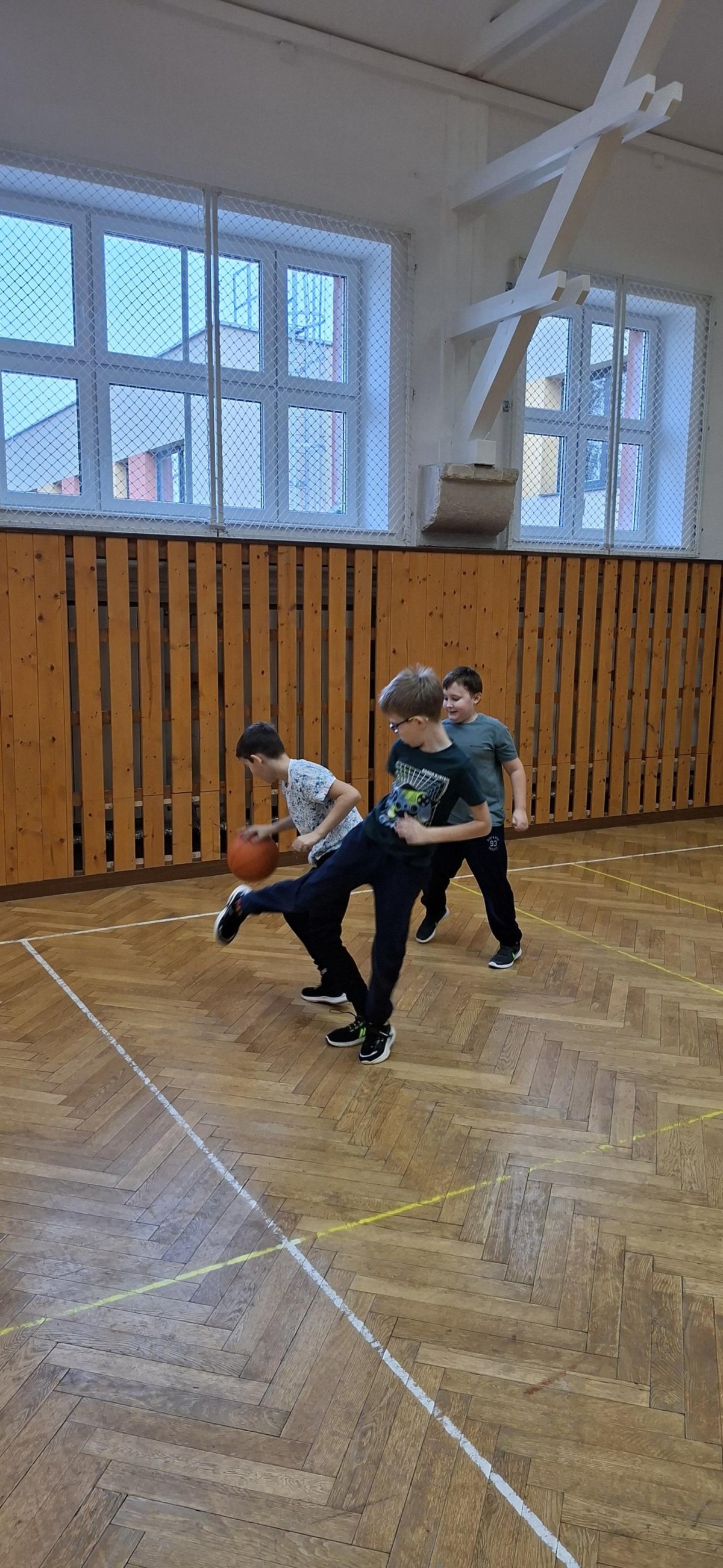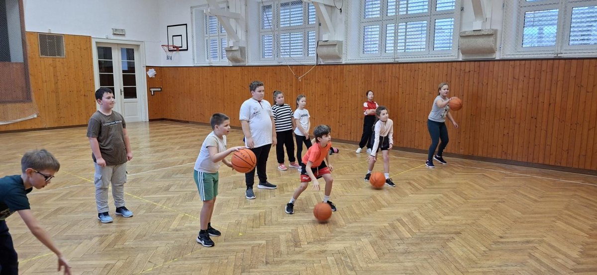Míčové hry jsou součástí výuky tělesné výchovy, a tak jsme si dnes se žáky 4. ročníku připomněli základy basketbalu. Přestože nám chyběl dostatečný počet vhodných míčů, nezoufali jsme a některá cvičení jsme prováděli s jinými balóny. A že toto děti od cvičení neodradilo, na to se pojďte podívat společně s námi. První byla honička s míčem, kdy měli míč sebrat spoluhráčům. Potom jsme se s míči rozcvičili a následoval nácvik driblování a přihrávek. Závěrem byly hody na koš. A veřte, šlo jim to... :-)