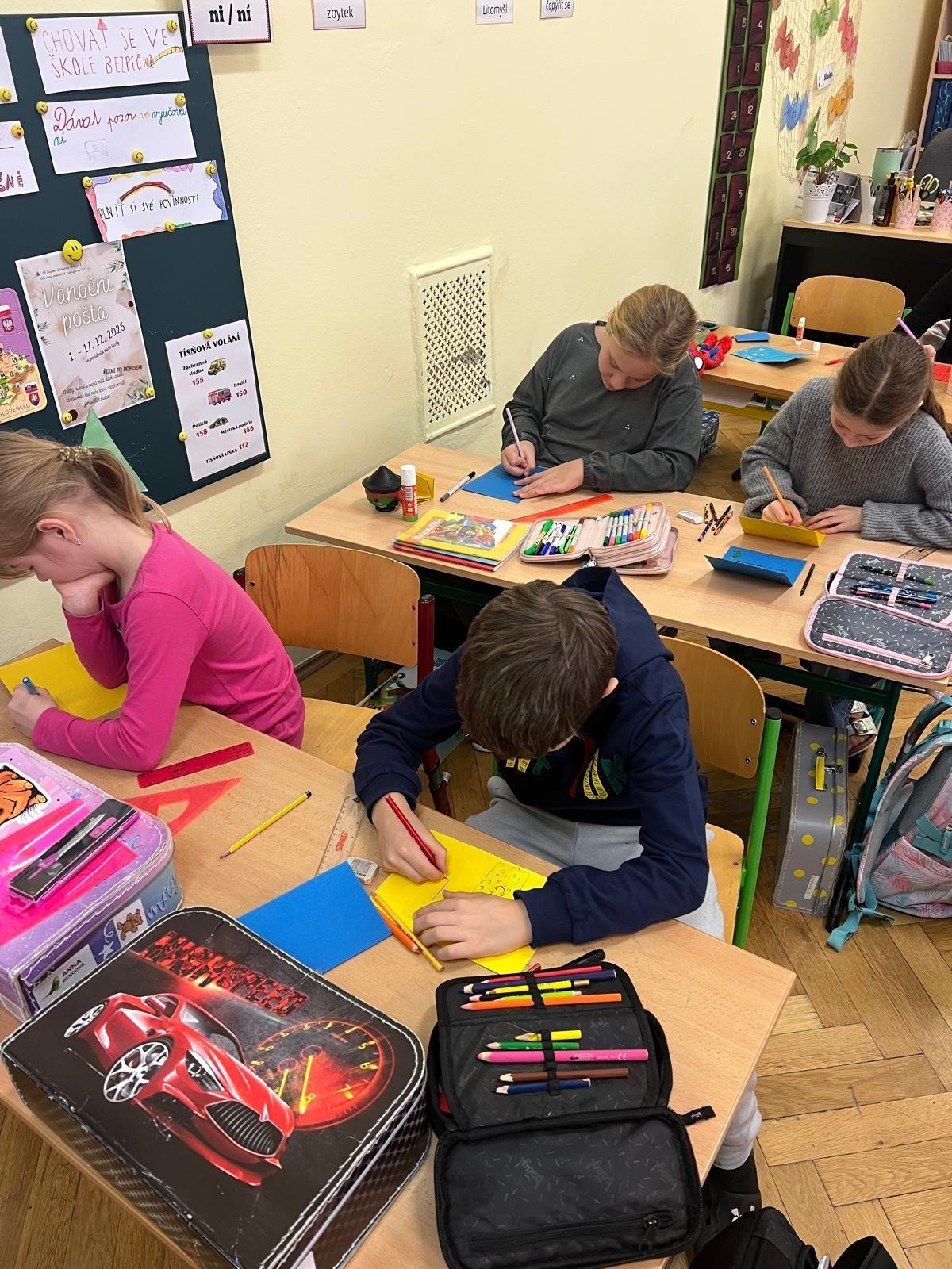 Nejenom Ježíšek nosí o Vánocích lidem dárky. Někdy stačí i pouhé přáníčko k tomu, aby někomu vykouzlilo úsměv na rtech a zahřálo u srdíčka. Takové malé a levné radosti si děláme i my ve škole - prostřednictvím Vánoční pošty.
