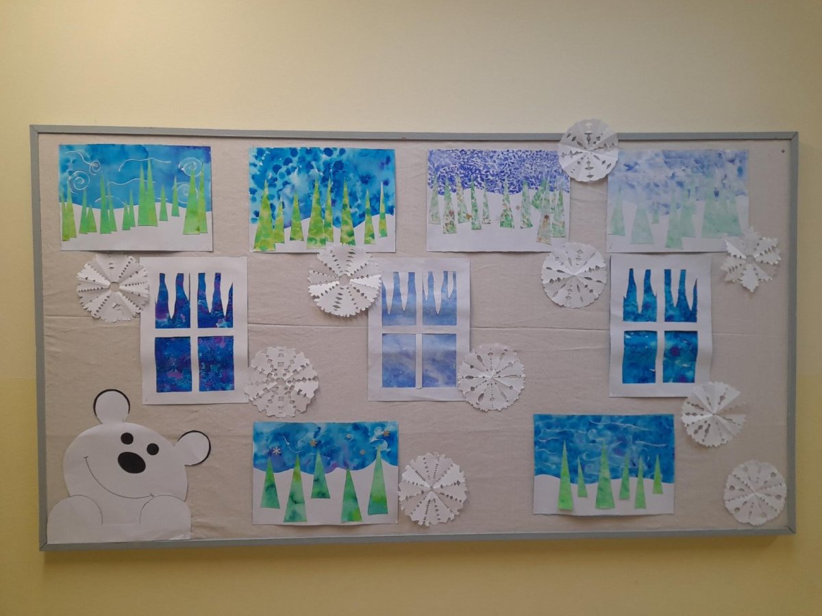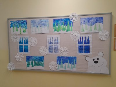 Zatímco venku je zima zatím většinou jenom ve vzduchu, naše školní nástěnky Vám nabízí sníh i rampouchy.