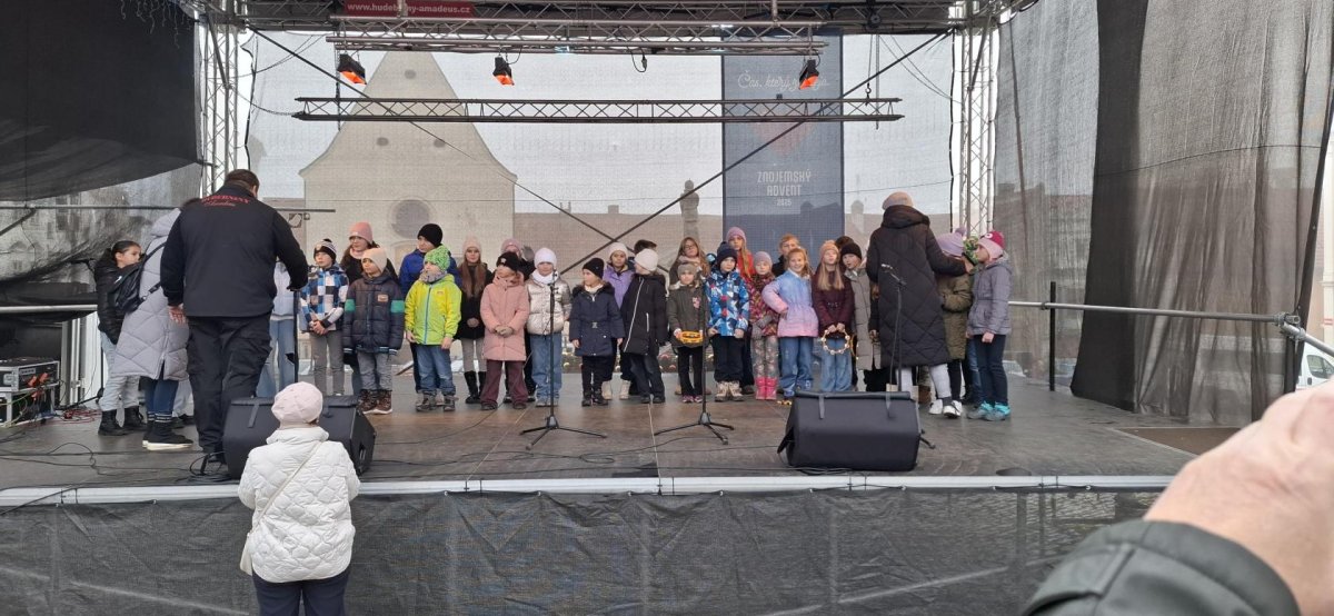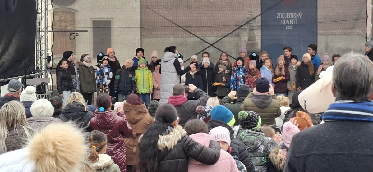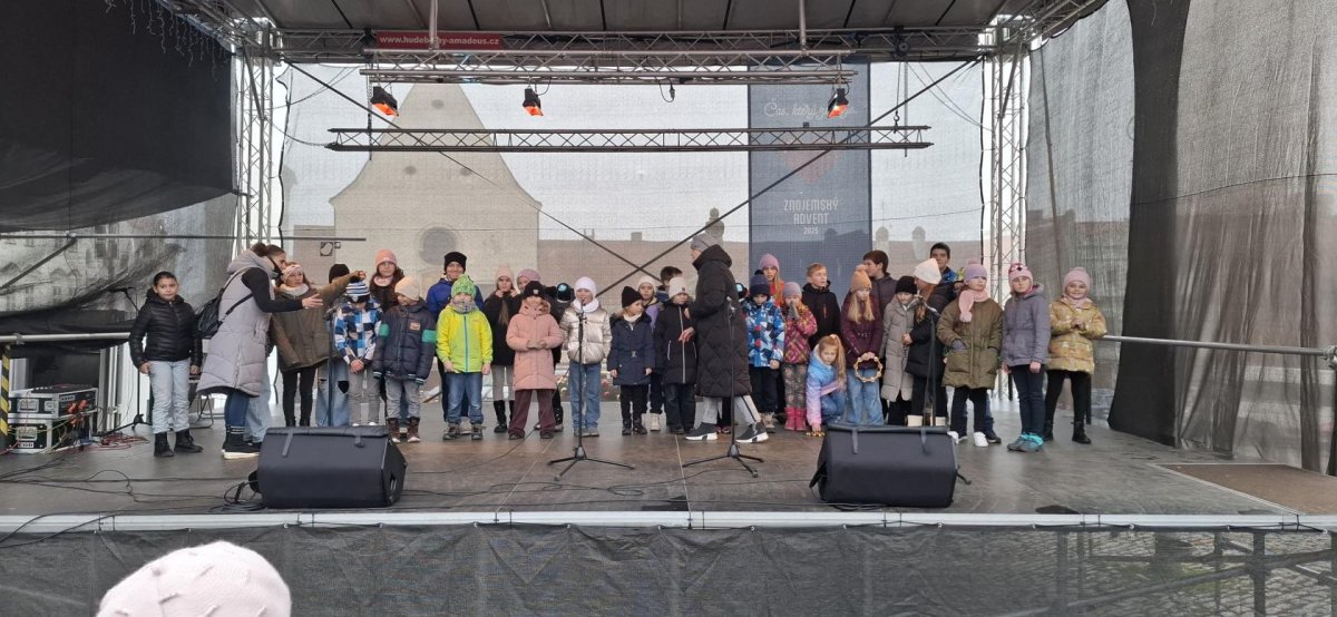 Dne 10. 12. 2025 jsme se společně s dětmi vydali do města, a to jednak se podívat na předvánoční Znojmo a jednak podpořit děti z naší školy při vystoupení na Masarykově náměstí. Děti nádherně zazpívaly vánoční písně a přispěly tak ke krásné vánoční náladě. Naši třídu reprezentovali dva žáci, a to Líza Klotchko a Erik Žiga, který krásně zazpíval i sólově. Bylo to hezké pozorovat děti, jak podporují své spolužáky při pěveckém výkonu. Každým dnem se více přibližujeme ke Štědrému dni a je milé, to i takovými drobnými a společně strávenými chvílemi, dětem zpříjemnit.