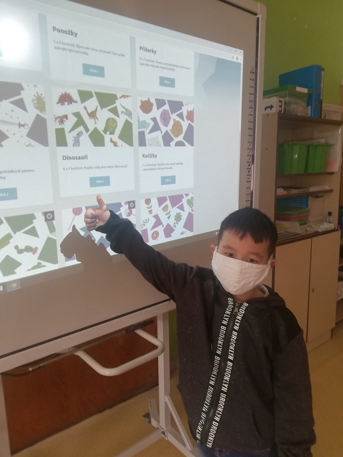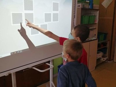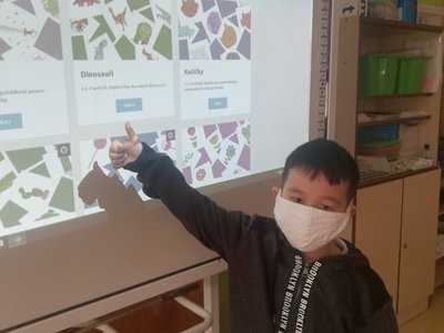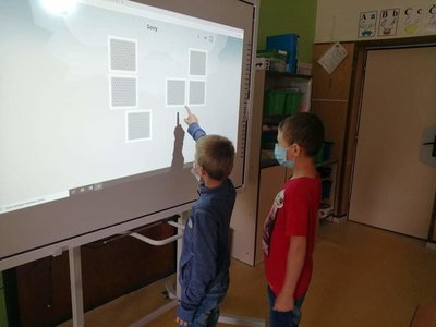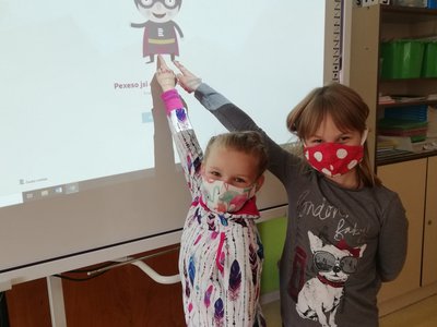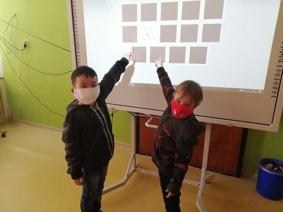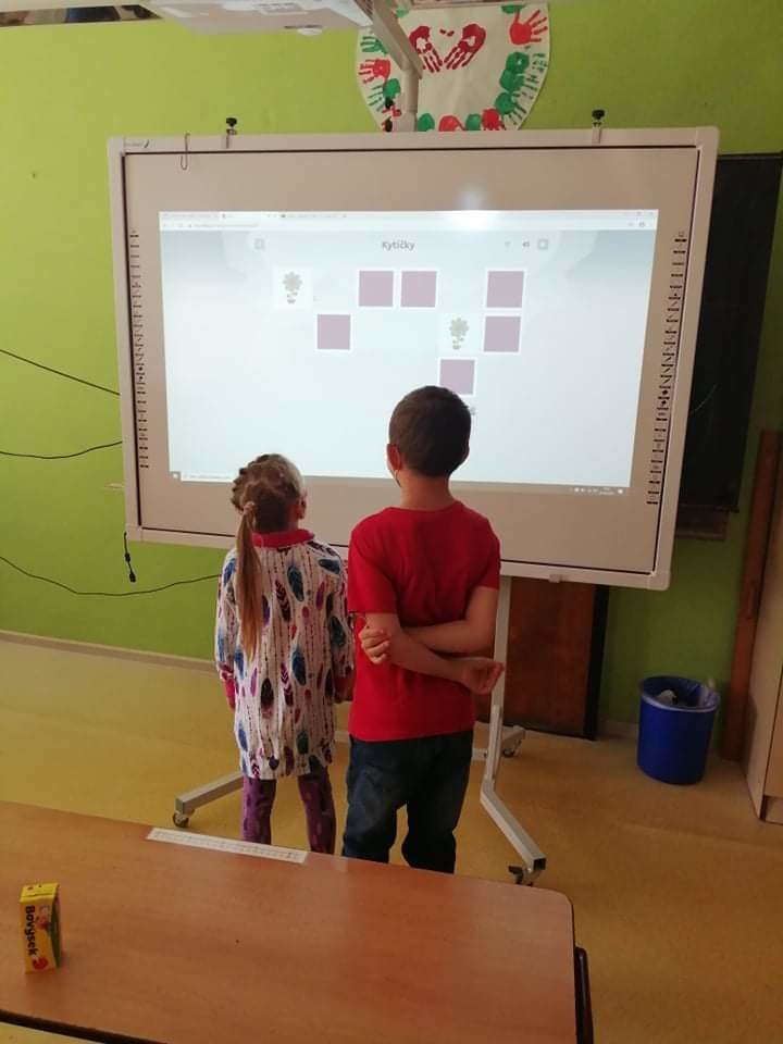 Zahráli jsme si pexeso a puzzle na interaktivní tabuli, zazpívali písničky a také vyrobili společný plakát.