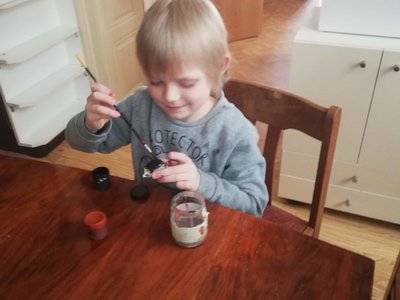 Dominiček se sourozenci a maminkou barvili vajíčka a výsledek stojí za to. Krása!