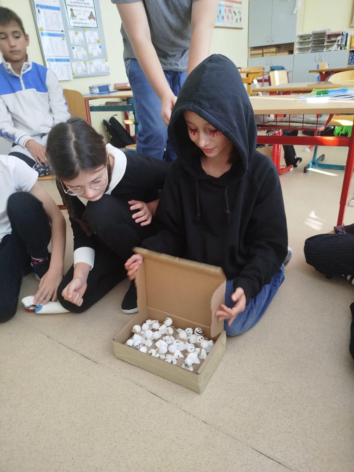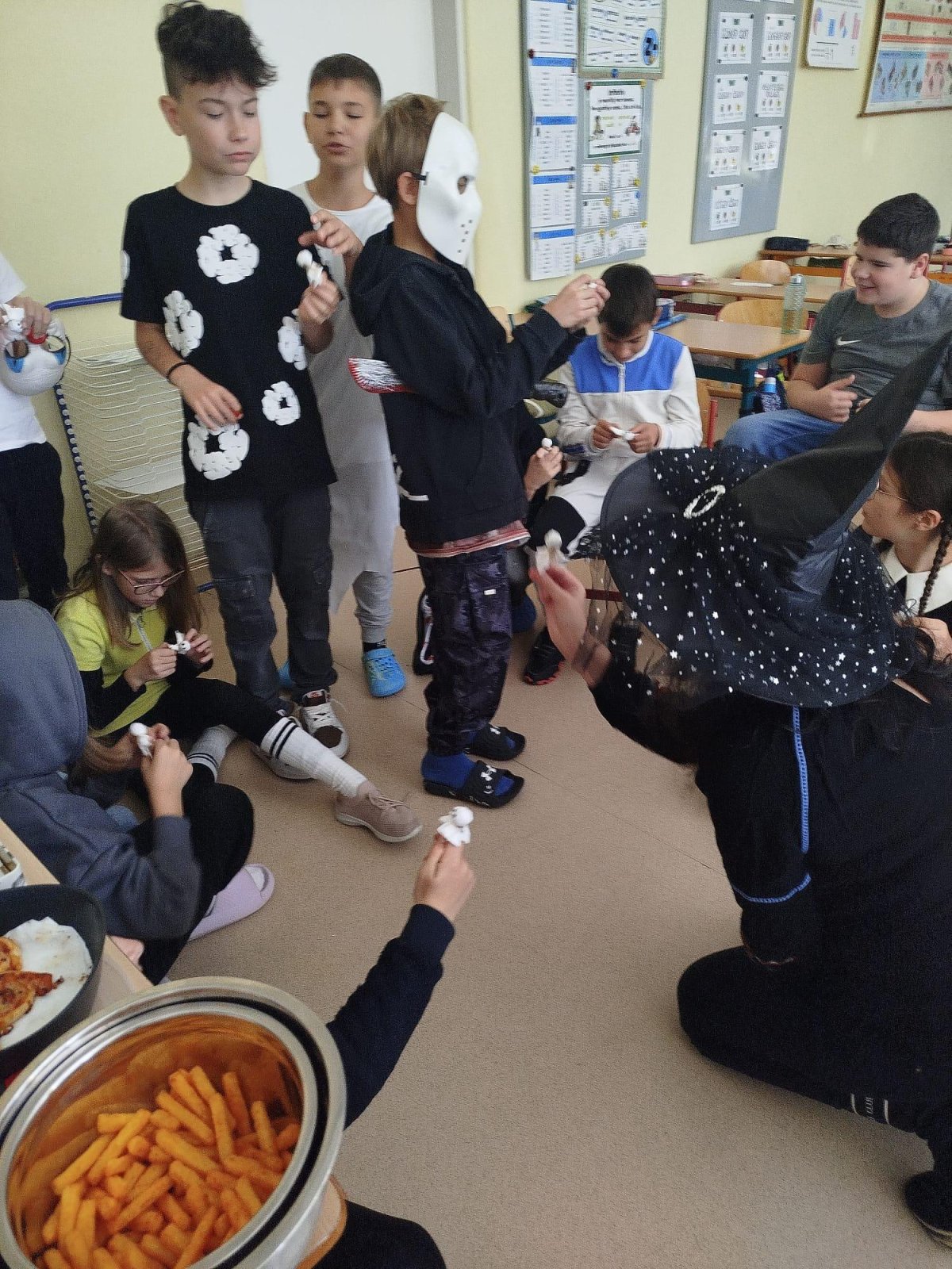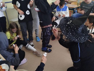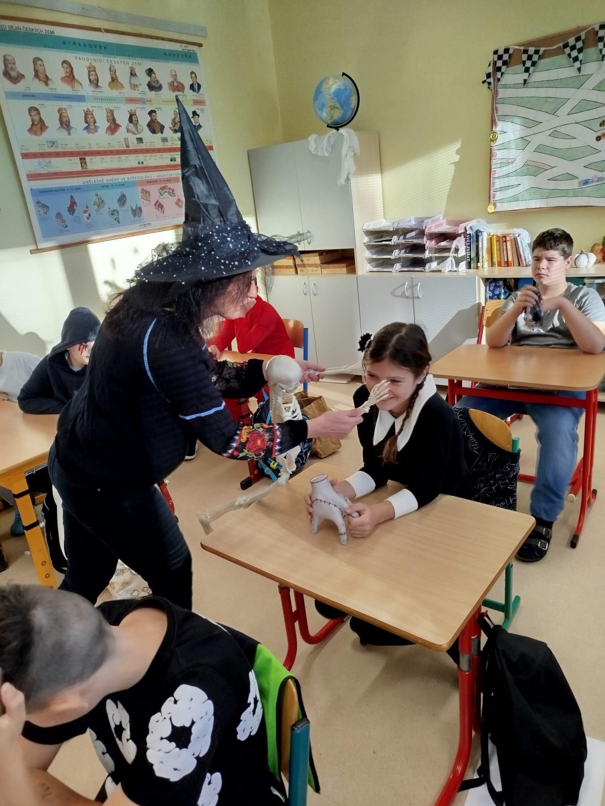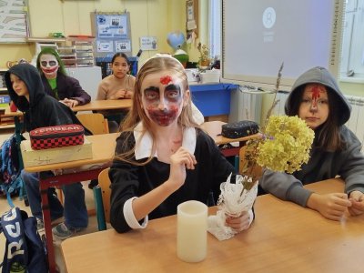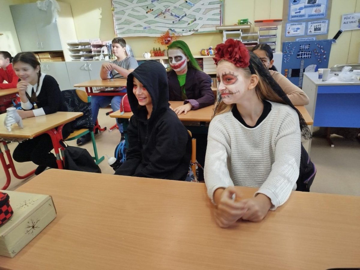 Náš projektový den se nesl v duchu halloweenské atmosféry v naší třídě tak, jak po celé škole. Rozhodně jsme tomuto svátku neudělali ostudu. Naši halloveenskou párty jsme vzali strašidelně, ale i zábavně. Trochu jsme se učili, trochu soutěžili, trochu relaxovali a trochu strašili. Vše jsme pojali v rámci vzdělávání, ale hravou formou. V úvodu jsme si znovu připomněli historii oslav svátku Halloween a osvěžili jsme si také svátek Dušiček, který nás vzápětí čeká.