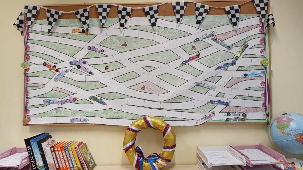 Ano, ano, vážení přátelé, na start se nám letos zcela dobrovolně přihlásilo 21 motoristů a závod začal plnou parou vpřed. Ve vedení se zatím střídají jezdci ze 4 stájí, které kvůli možné reklamě nemůžeme jmenovat. Tato celoroční velká soutěž nás stojí spoustu úsilí a překážek, ty je třeba překonat, aby se závodníci dostali úspěšně do cíle. Např. příprava na výuku, dobré chování, plnění úkolů a v neposlední řadě samozřejmě hra fair - play. Vážení diváci a posluchači, věřte - nevěřte, ale jezdci se podporují, jsou kolektivní a vzájemně si fandí. Pády a bouračky jsou na denním pořádku, ovšem závodníky to rozhodně nezastaví.  Určitě teď čekáte, že zvítězit může pouze jeden, ale u nás to není úplná pravda. První v cíli může být opravdu jen jeden závodník, ale zvítězí každý, kdo dojede zpět do boxu. V závěru nás čeká velká odměna a pochvala od hlavního pořadatele i rozhočího. Důležitá je dobrá strategie, rychlost, vytrvalost a jednota těla i duše!