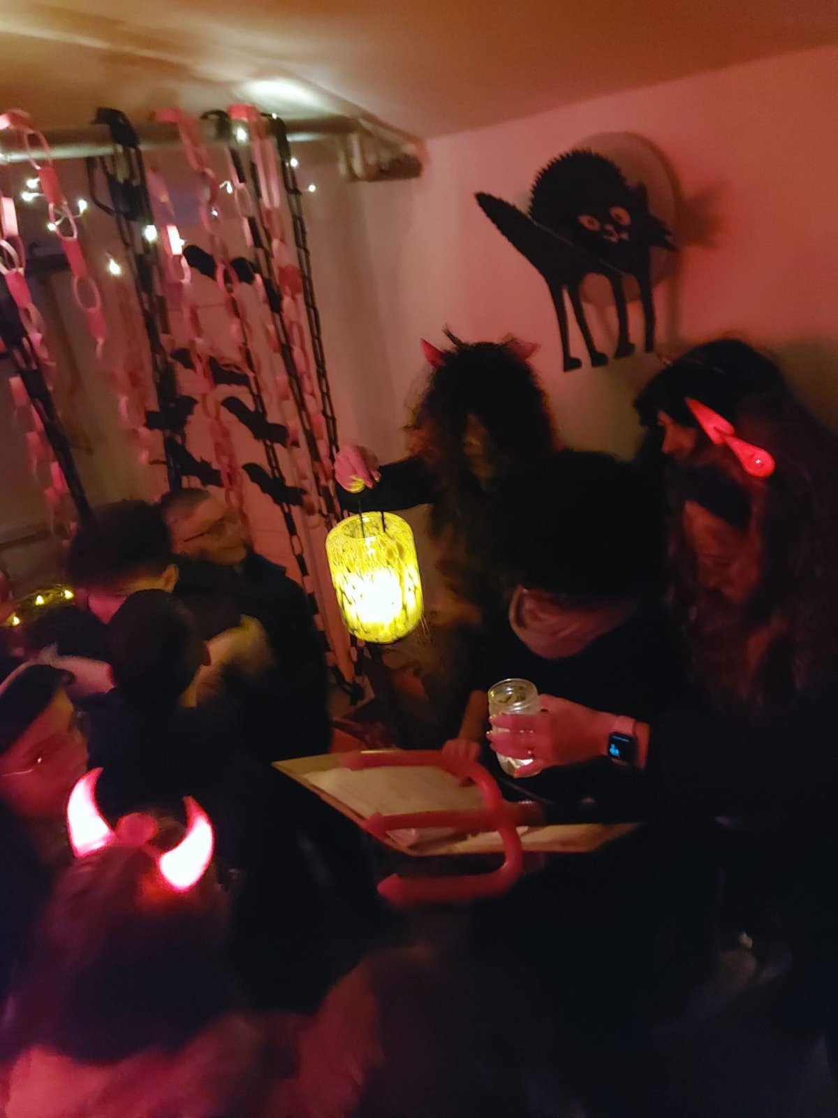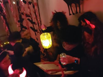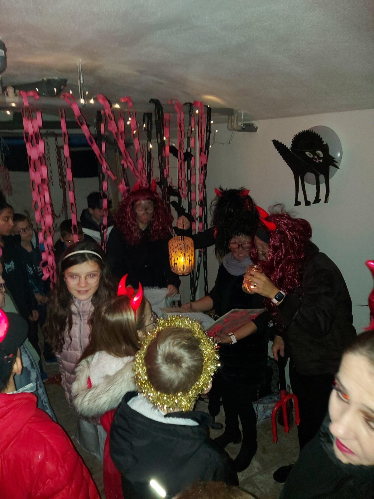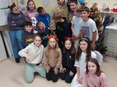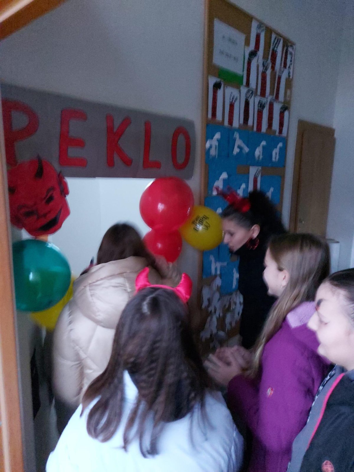 I my jsme měli ve třídě tři hříšníky, které naši čerti tak trochu pokárali. Vypili kouzelný čertovský nápoj a přislíbili nápravu, tak jim budeme věřit. Čertíkům jsme hezky zazpívali a po propuštění z Pekla jsme se chvíli věnovali čertovské výuce. Další čertovská zastávka byla v knihovně, kde jsme si doplnili své čertovské znalosti a přečetli úryvky z pekelných knih. BLE, BLE, BLÉÉÉ, JU CHU CHŮŮŮ....