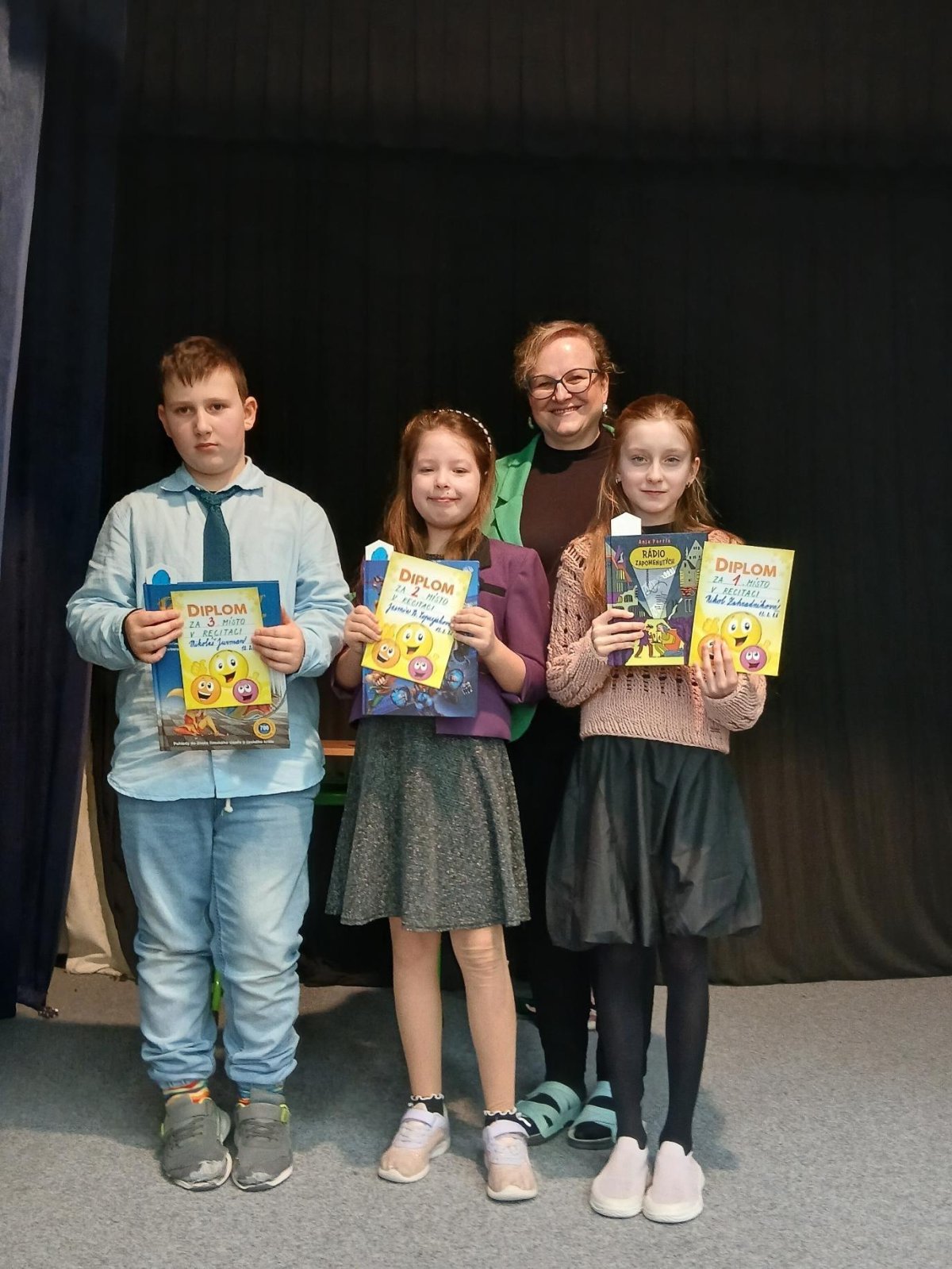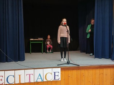 Na recitační soutěž jsme letos vyslali dva zástupce. Oba se vzorně připravovali a oba předvedli skvělý výkon. Od Nikolky zazněla próza a od Samíka poezie. Není jednoduché překonat trému a přednášet na jednu stranu s klidem a zároveň s emocemi, které daný příběh či báseň vyžadují. Oběma moc děkujeme a Nikolce ještě GRATULUJEME za postup do okresního kola.