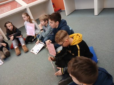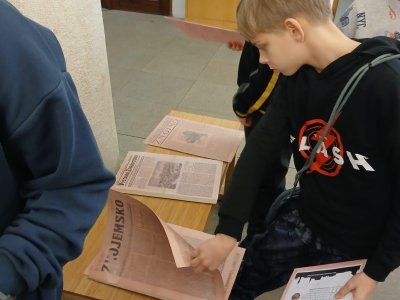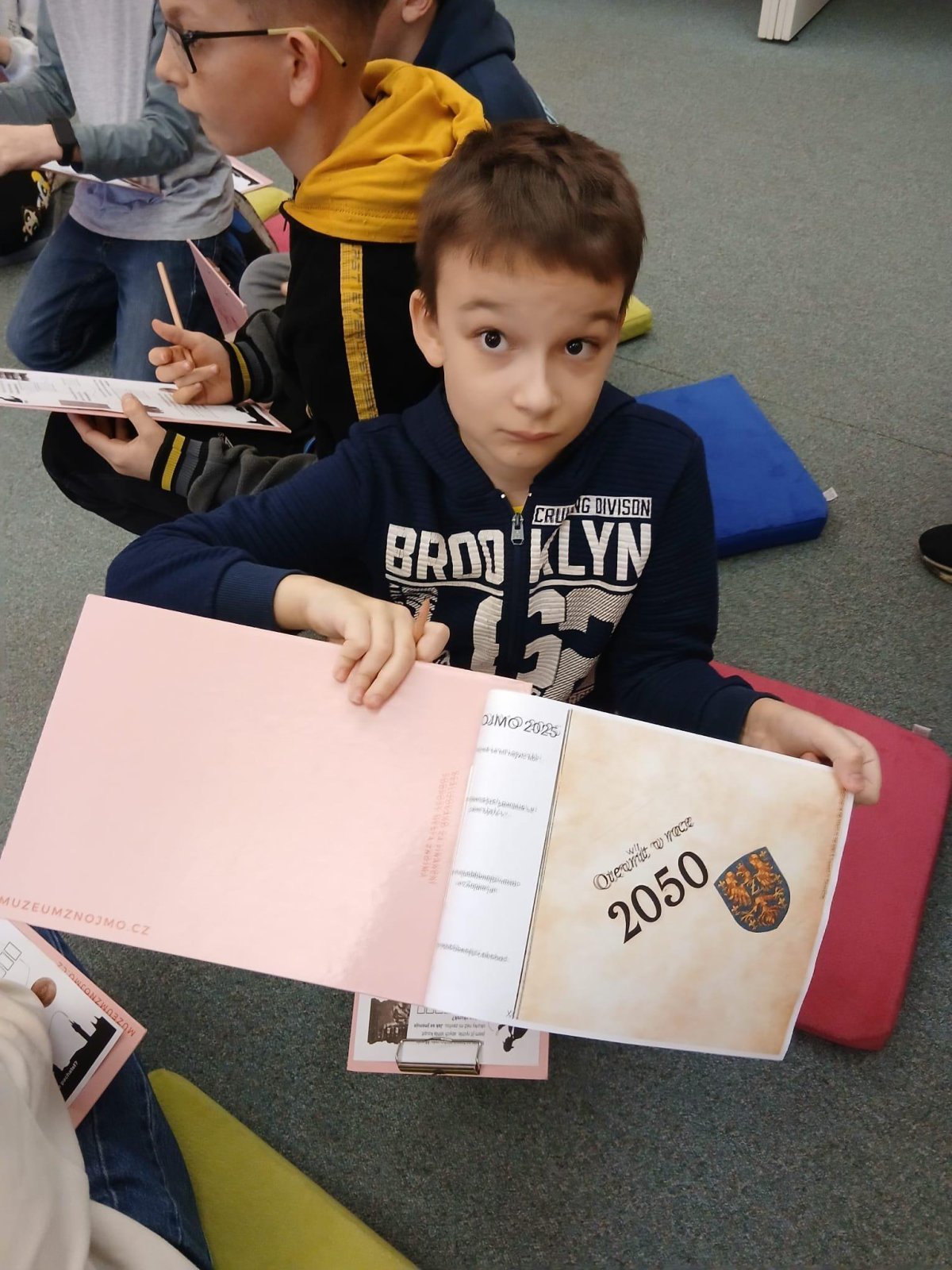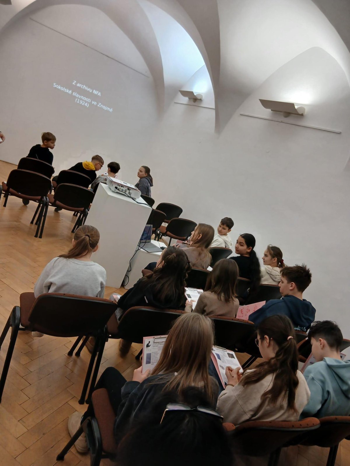 Jak vypadalo naše město před 100 lety? Domy, kostely, obchody a lidé? Které podniky ovládly Znojmo a proslavily se i ve světě? Co jsme dokázali, čím jsme se prezentovali, na co můžeme být pyšní? Tak těmito otázkami jsme se společně s paní Frecerovou z JmM zaobírali a hledali jsme odpovědi. Stali jsme se malými detektivy a dle zadaných indícií jsme dohledávali, kdo ukradl historické písemnosti města Znojma. Samozřejmě, že vše byla pouhá fikce, naštěstí je doopravdy nikdo nevzal a my jsme v podstatě pátrali, kde jsou dodnes uloženy. Prošli jsme se naším městem o 123 let zpátky, některá místa jsme poznávali, některá již ne, ale moc se nám líbila. V závěru jsme zhlédli dokumentární film, kde byli průvodci naši pra pra pra prababičky a pradědečci - byl to úžasný průnik do historie města Znojma.
