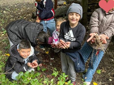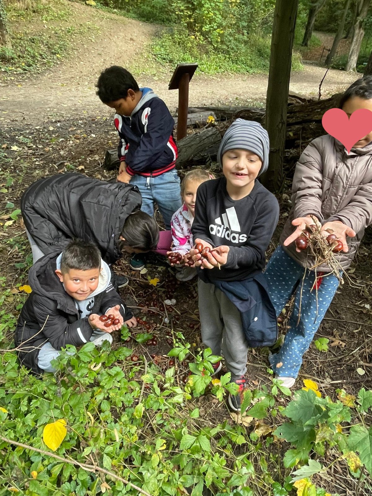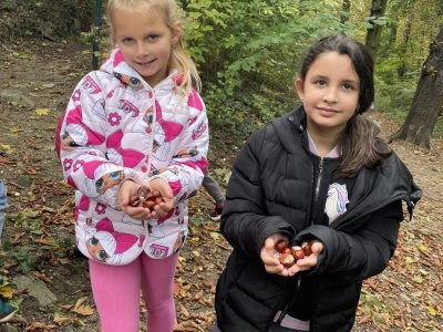 Gránický les nás přivítal šustěním listí pod nohama a jemným větrem, který rozechvíval koruny stromů. Slunce se prodíralo skrz větve a vytvářelo na cestách zlaté skvrny. Každý krok byl jako malý objev – kaštany, žaludy, šípky, barevné listy… příroda nám nabídla svou podzimní paletu v celé kráse.