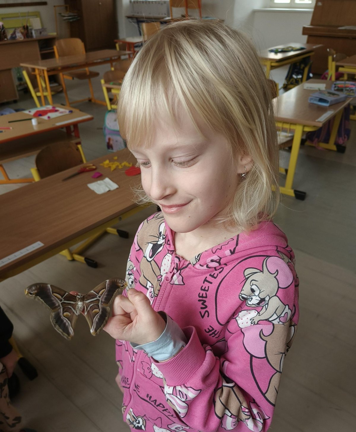 Byl to krásný a poučný zážitek, který možná v dětech probudil zájem o přírodu a její proměny. A to není všechno. Některé děti překonaly velký strach, nechaly si motýla lézt po prstech.