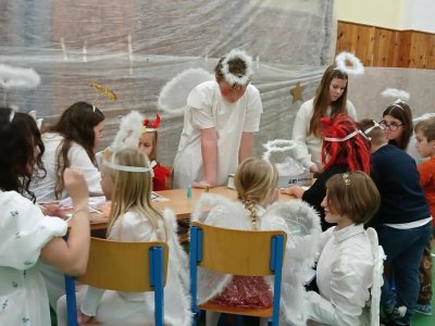 Čertovskou stezku az k samotnému vládci pekel Luciferovi si děti prošly pod ochranou andělů a v příjemné náladě. Zveme Vás do tajuplnéh prostoru naší školy,kde ožívají pohádkové bytosti a projděte si s námi vánoční pohádku NEBE -PEKLO v režii starších spolužáků ve fotogalerii naší třídy zde