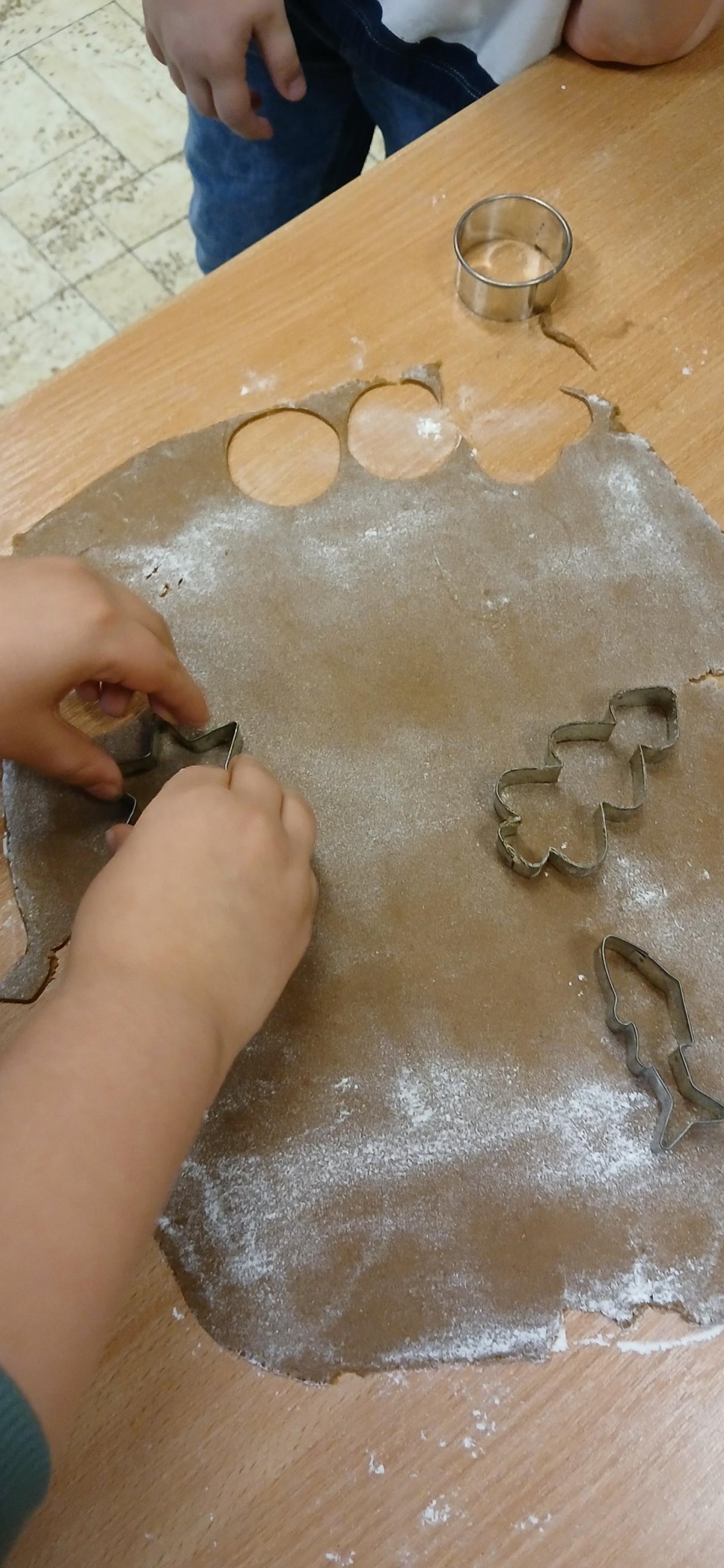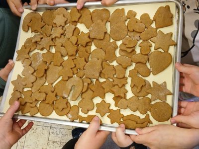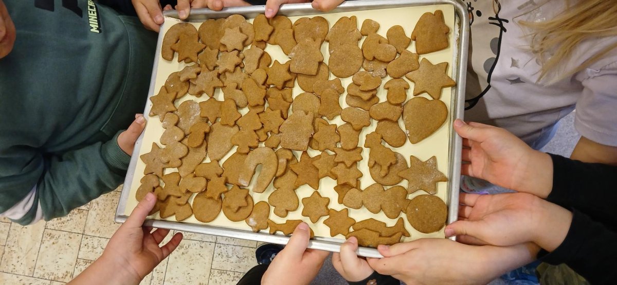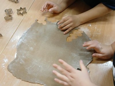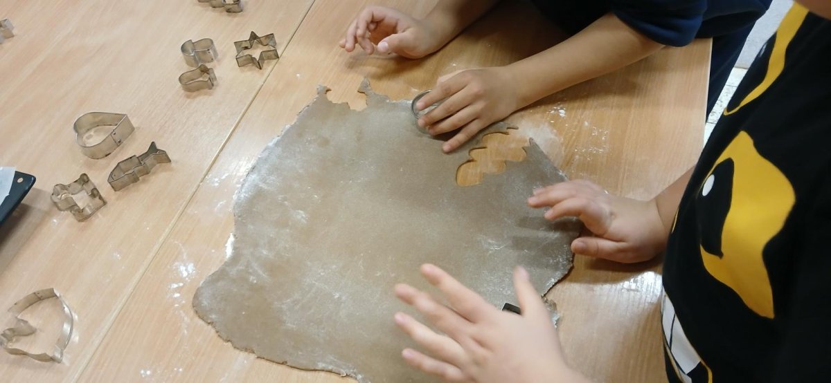 Děti z přípravné třídy upekly medové perníčky sobě i druhým pro radost. Nadšeně válely těsto a pod rukami se jim měnilo v krásné tvary vykrajováním hvězdiček,srdíček,stromečků,zvonečků...