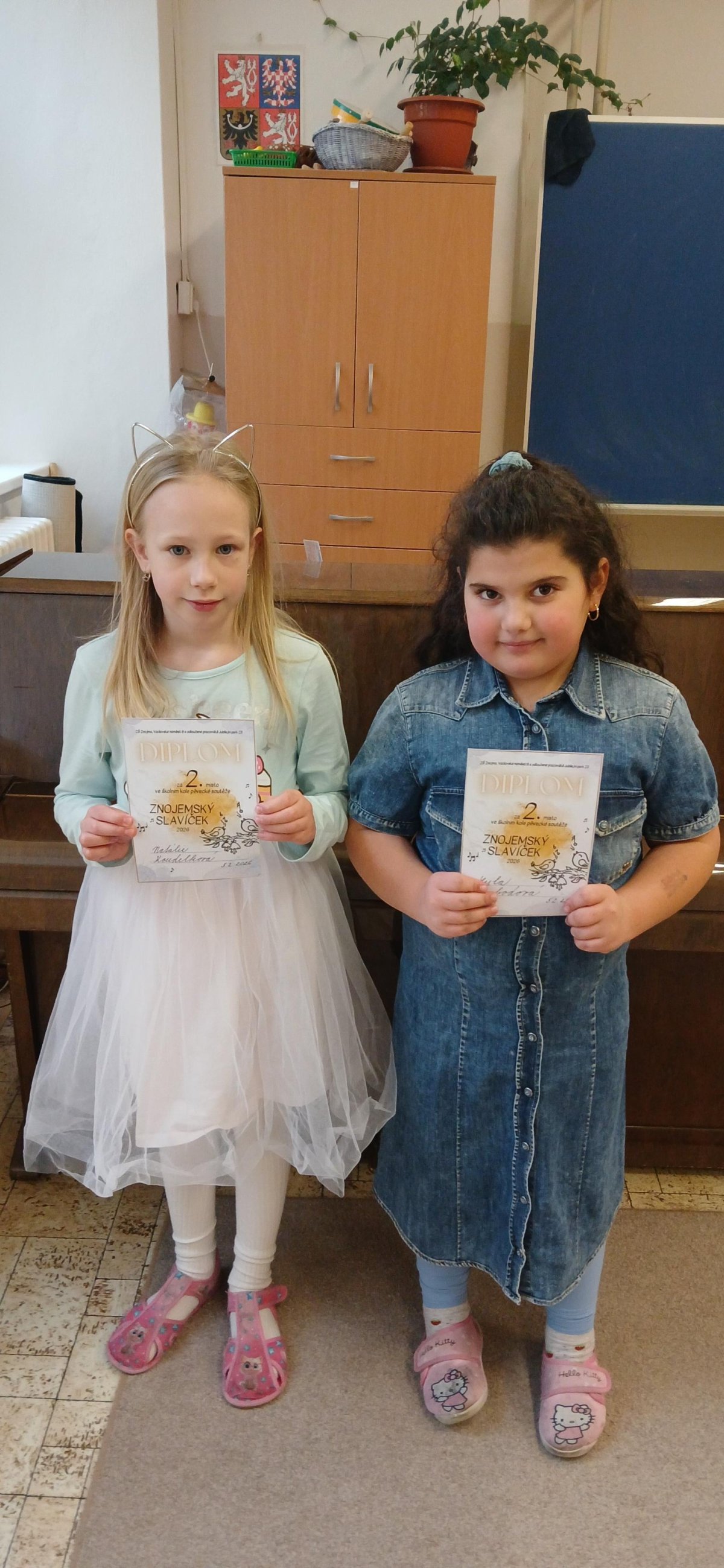 Ve školním kole Slavíčka soutěžily za naší třídu dvě dívky,které ve své kategorii vyzpívaly krásné 2.místo. Na dětech bylo vidět,že hudba je jejich oblíbená činnost a mají k ní vztah. Inu známe všichni větu " Hudba je lék" a nám posluchačům vytvořila radost a úsměv na tváři.