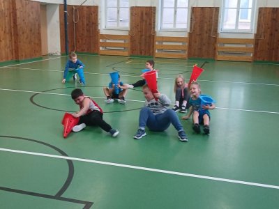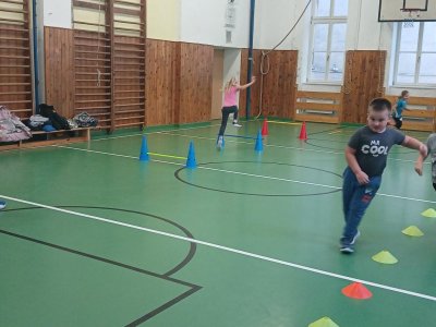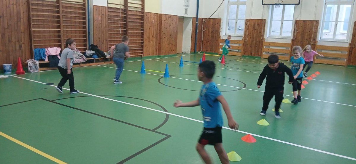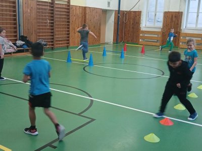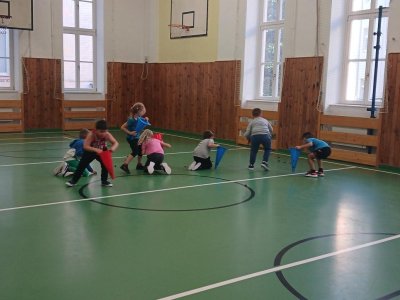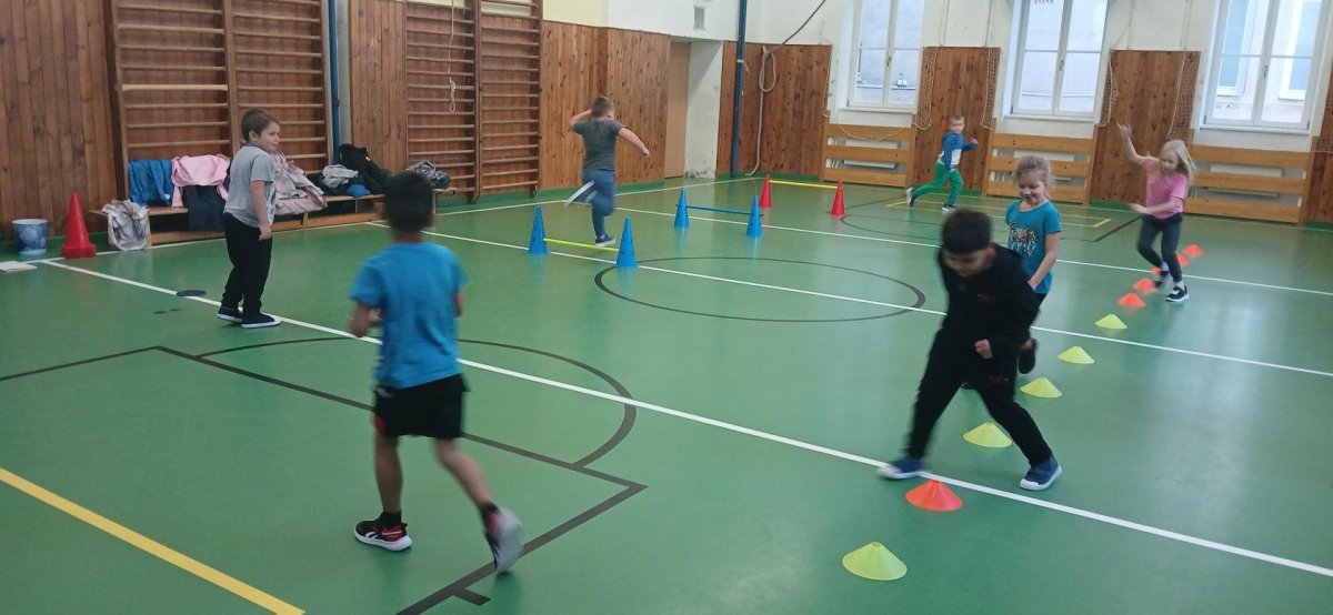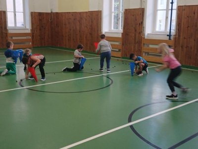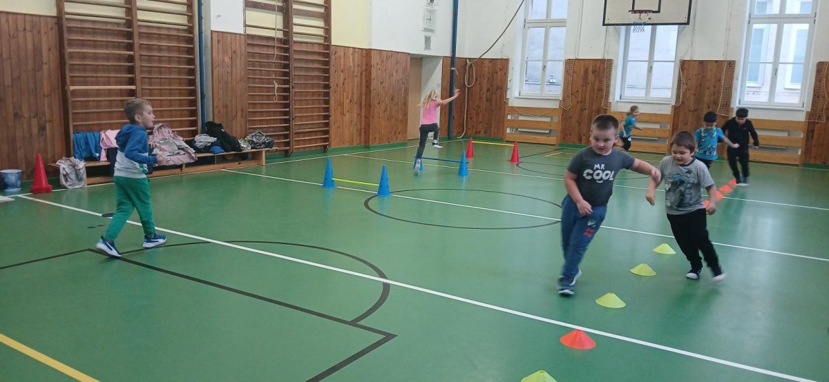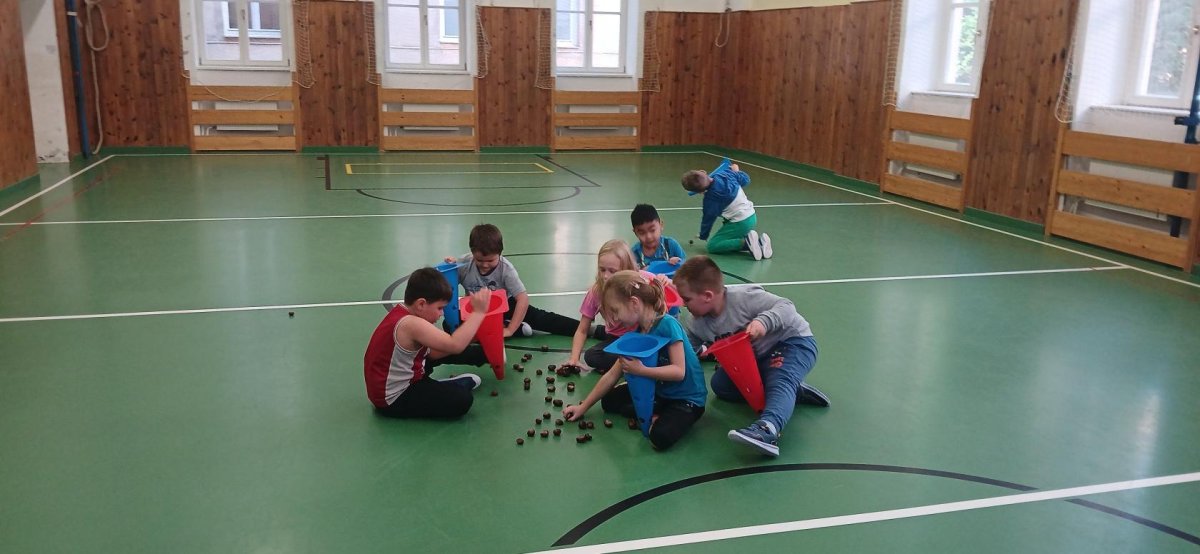 Lokomoční dovednosti jako jsou chůze,běh,skok,lezení a plazení děti rozvíjely hrami s přírodninami a pohybovými činnostmi s využitím cvičebního náčiní.