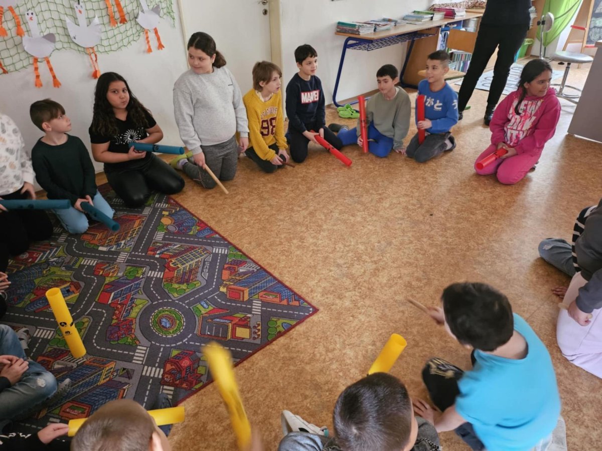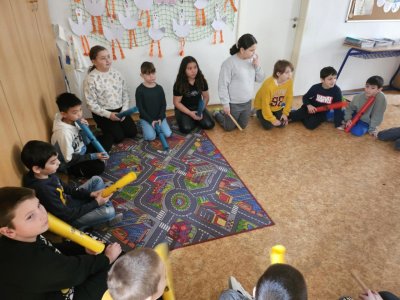 Naše škola má k dispozici velké množství pomůcek, které si mohou žáci vyzkoušet a mohou tak zažít netradiční hudební výchovu.