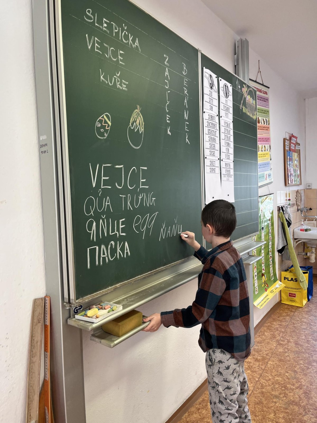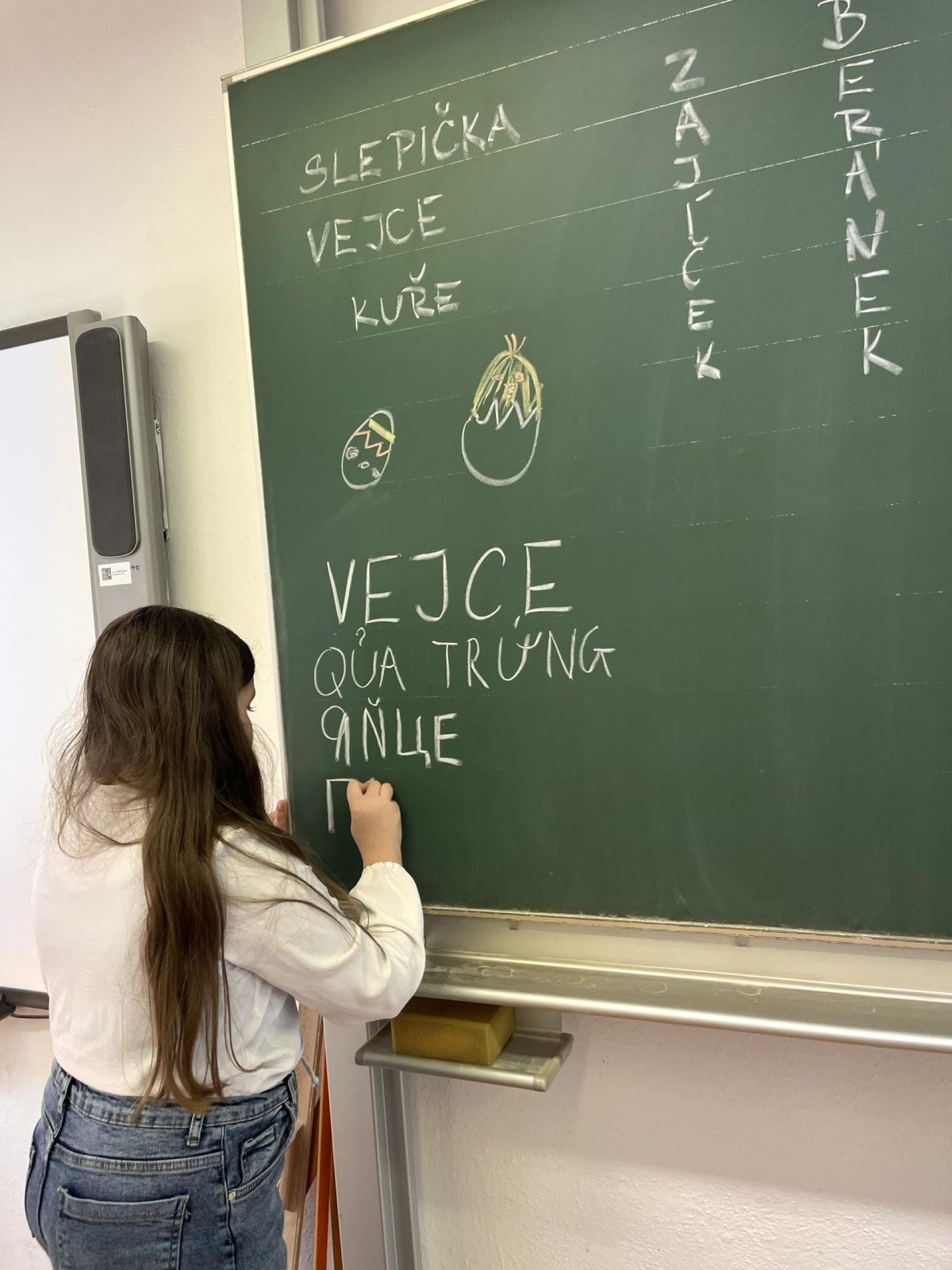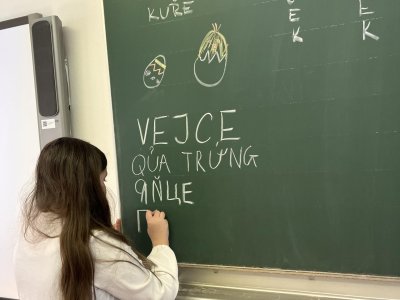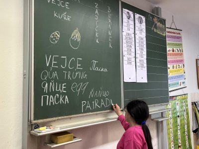 Zajímavou částí našeho povídání bylo také poznávání jiných jazyků. Dozvěděli jsme se, jak se řeknou „Velikonoce“ a „vejce“ ukrajinsky, vietnamsky a romsky. Bylo zajímavé slyšet, jak různě mohou tato slova znít, a uvědomit si, jak pestrý je svět kolem nás.