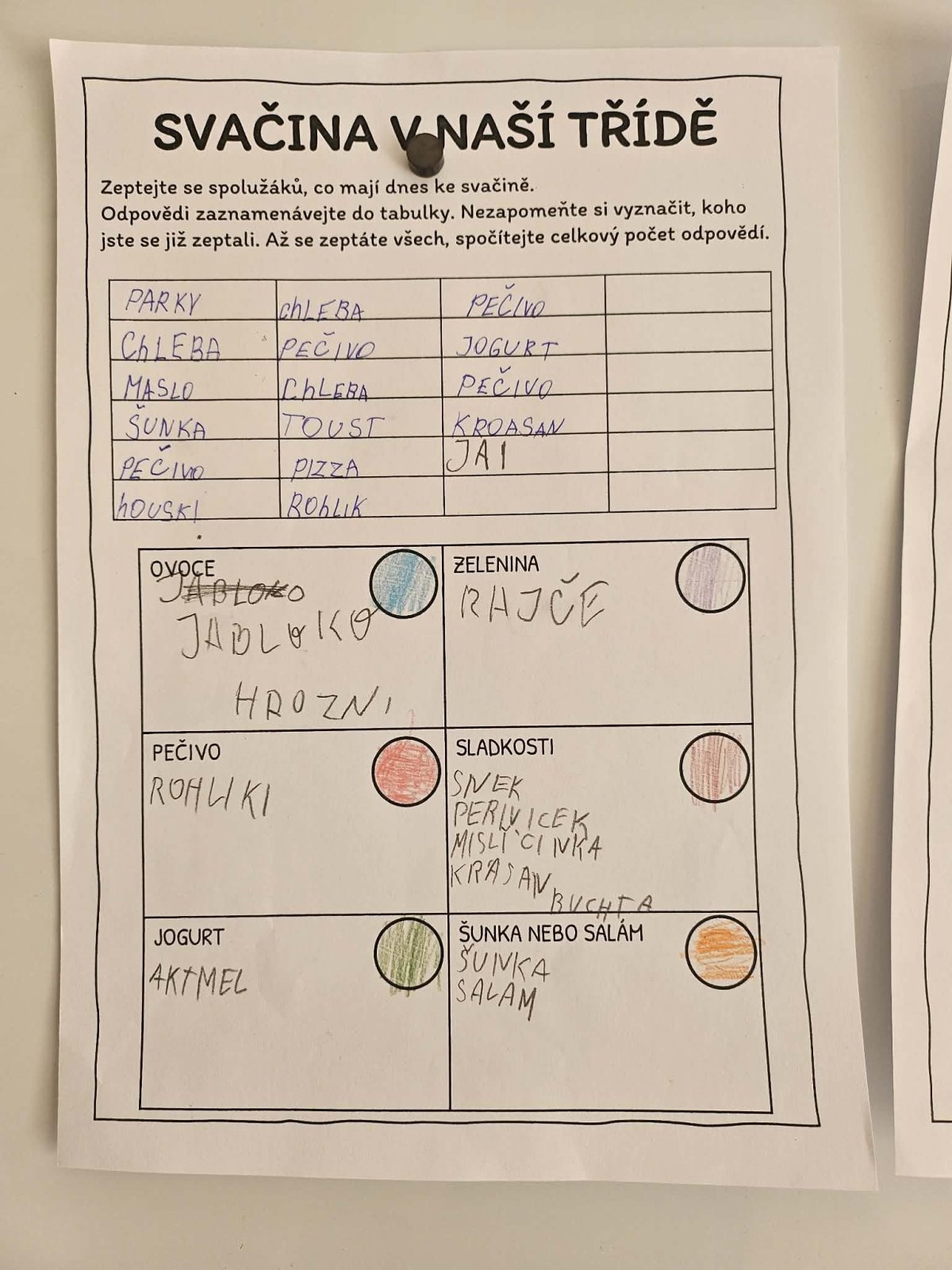 Naše třída se zapojila do vlastního projektu zaměřeného na zdravé svačinky ve škole. Cílem je nejen zjistit, jaké svačiny si žáci běžně nosí, ale především podpořit zdravější stravovací návyky a vést děti k zamyšlení nad tím, co během dne jedí.