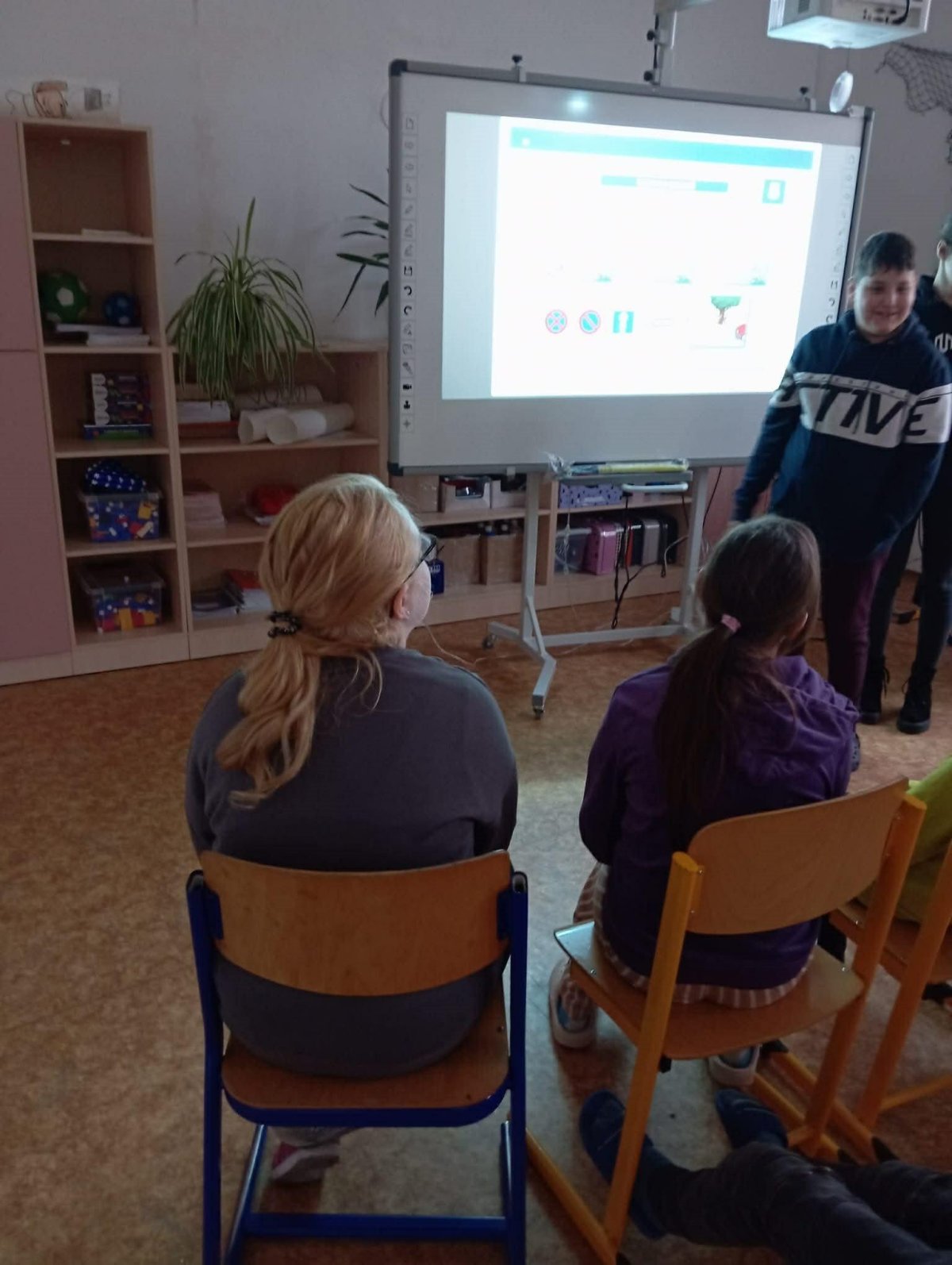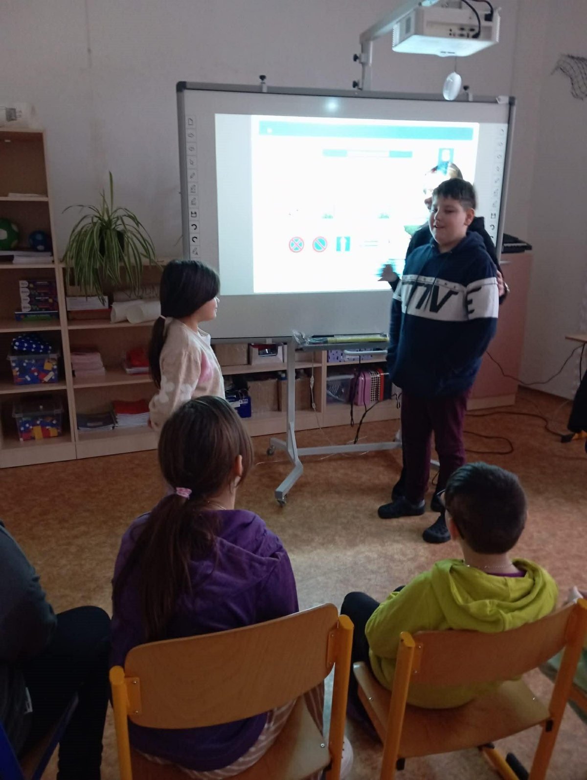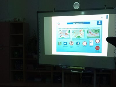 Součástí programu bylo také opakování dopravních značek a pravidel chování na křižovatkách. Učili jsme se, jak se správně rozhlížet, kdy dát přednost a jak bezpečně přecházet silnici. Děti měly možnost klást otázky a zapojit se do diskuze.