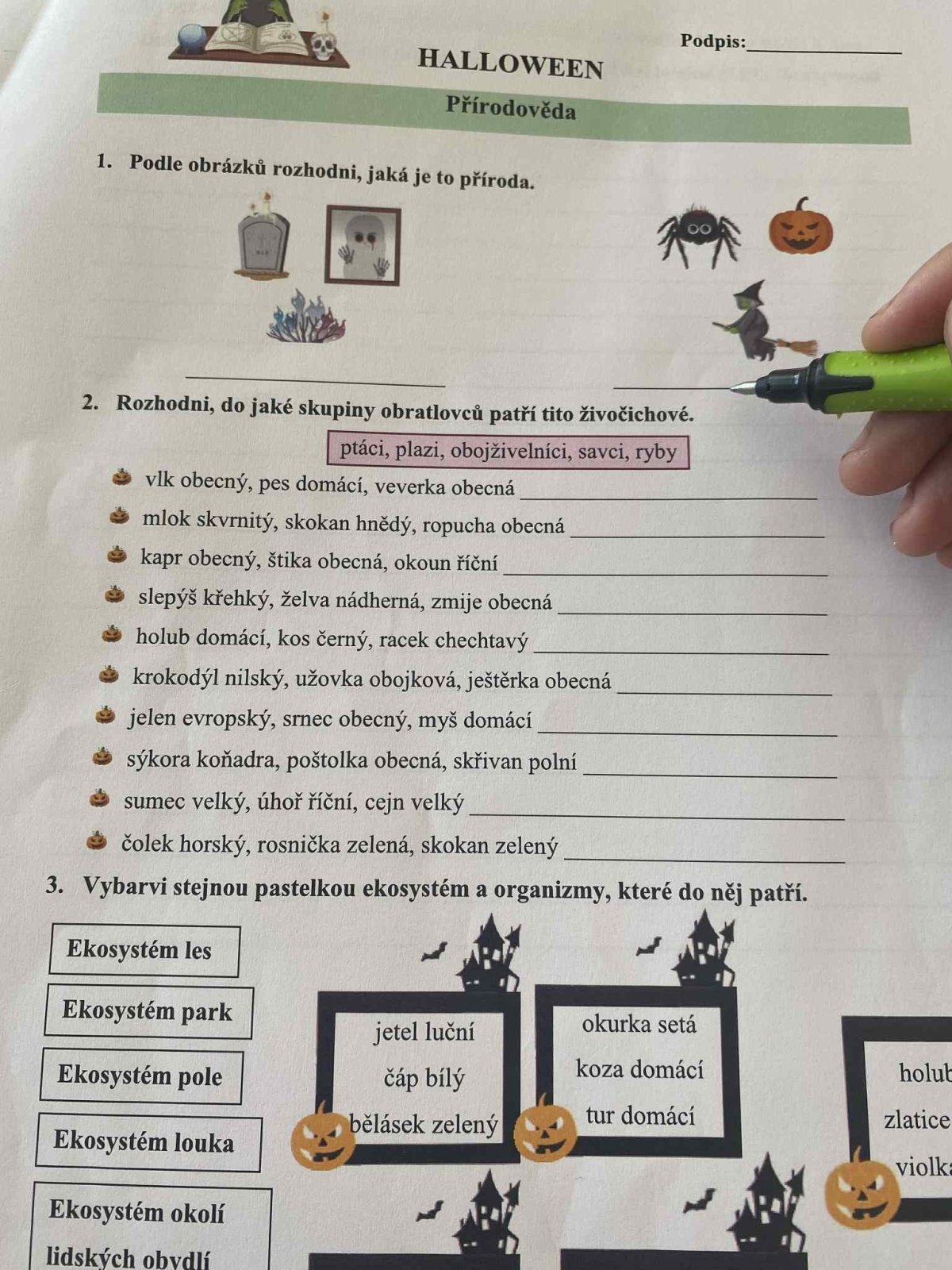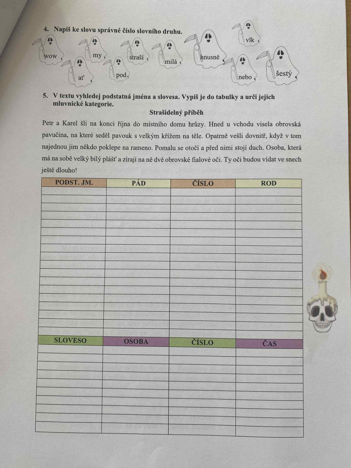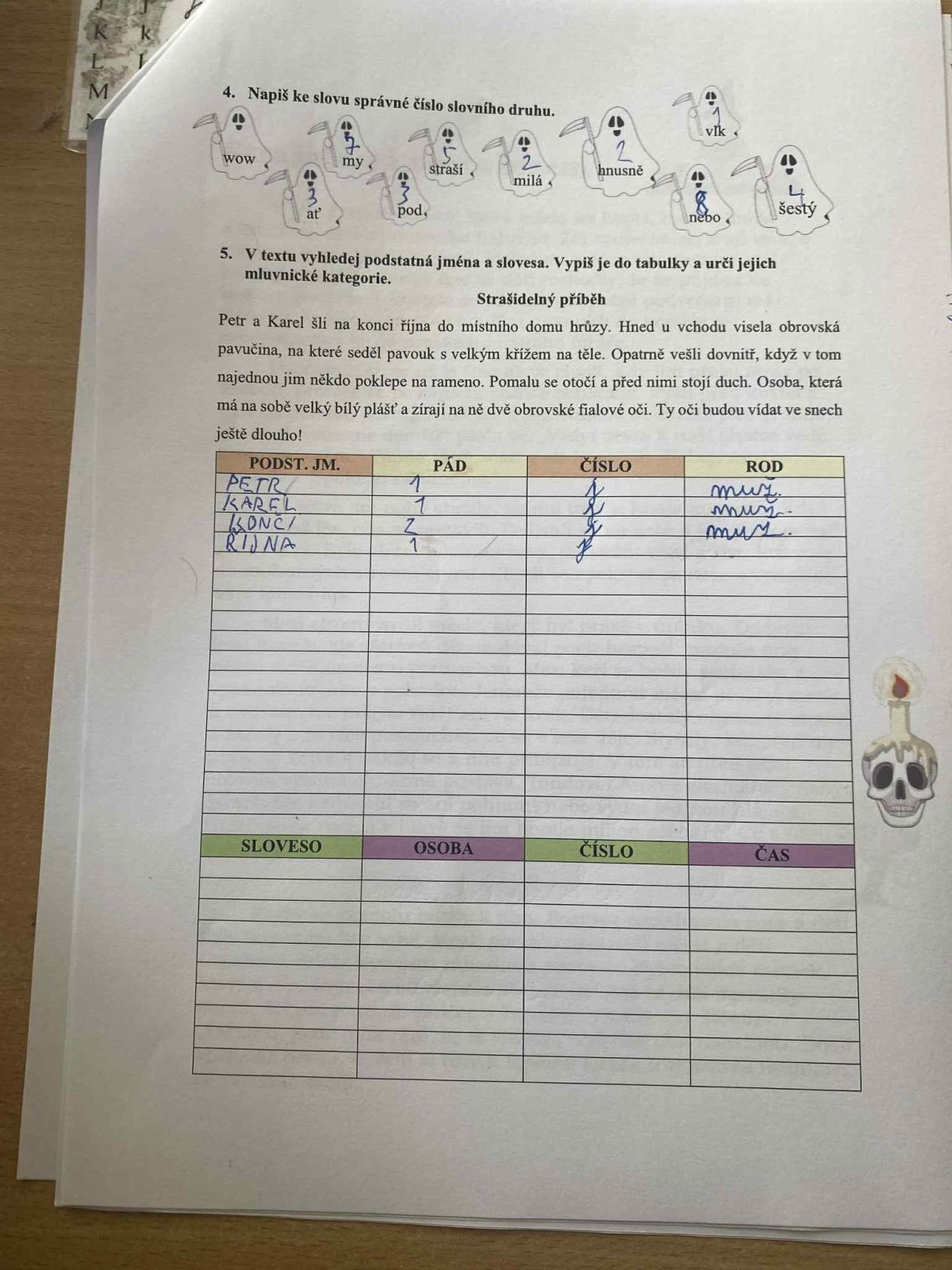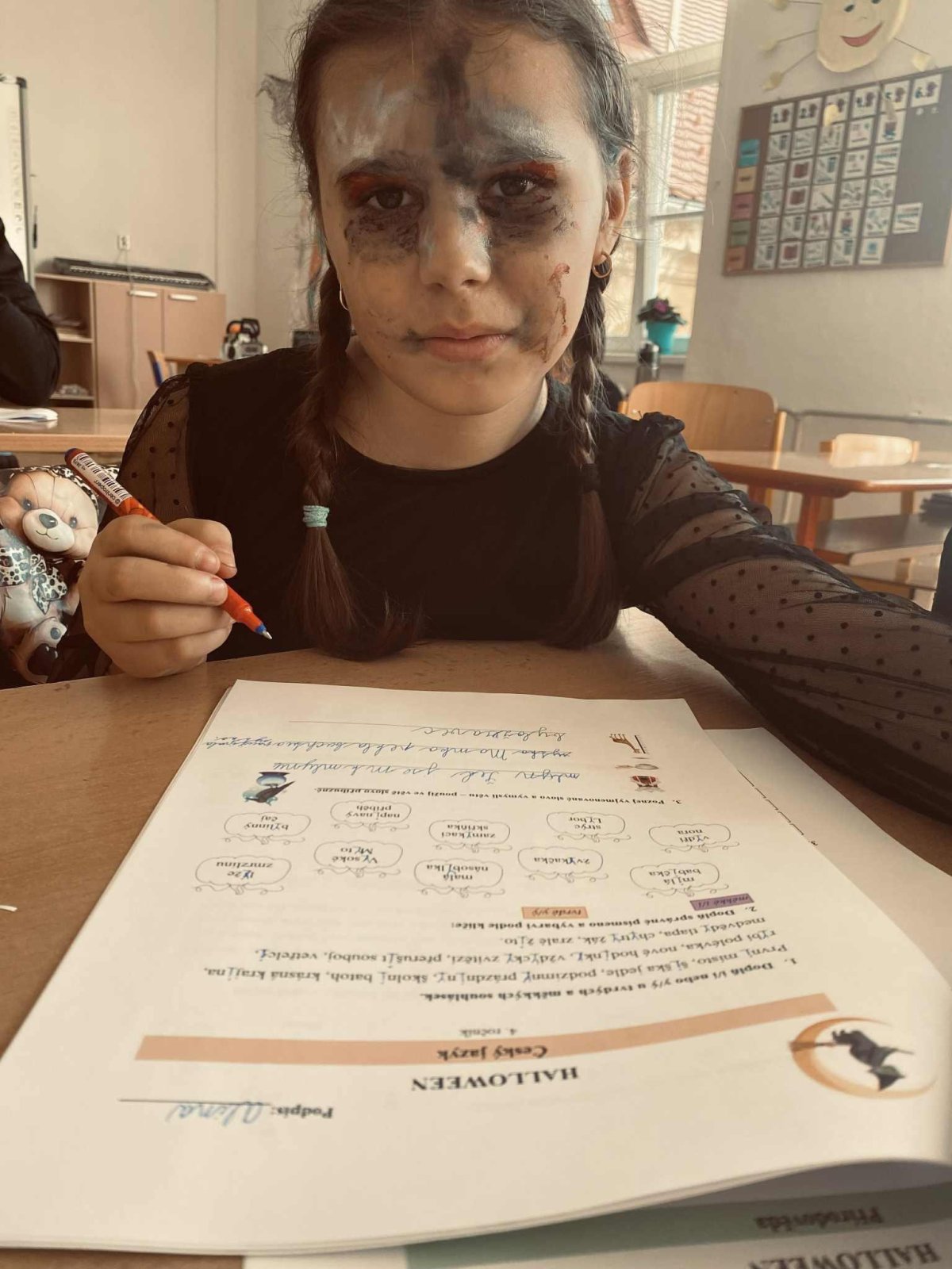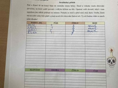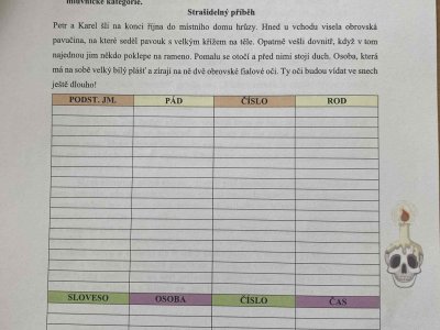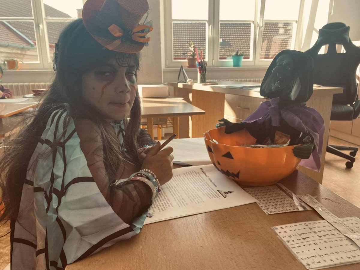Páteční den jsme věnovali Halloweenu! Všechna naše vyučování se nesla v duchu této strašidelné tradice – řešili jsme pracovní listy, procvičovali učivo s halloweenskou tematikou a dozvěděli se zajímavosti o tomto svátku. Byl to den plný podzimní atmosféry, smíchu a nových znalostí!