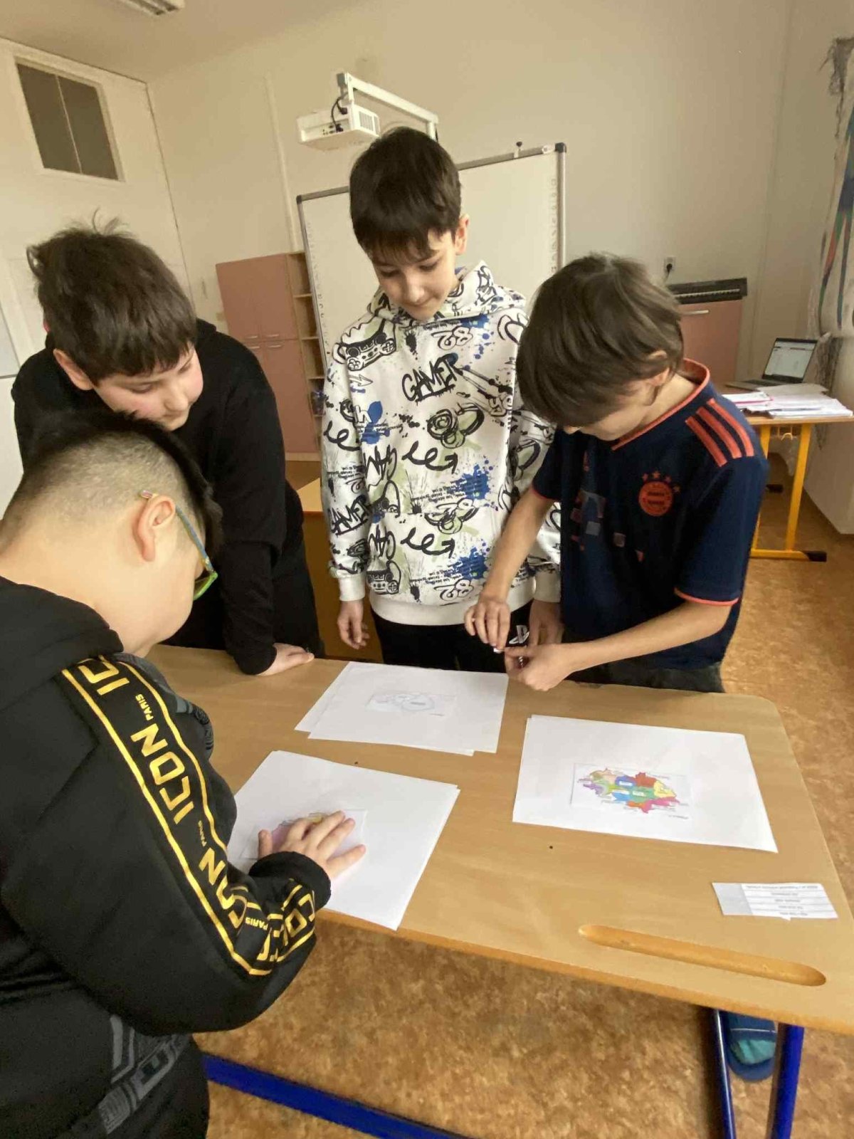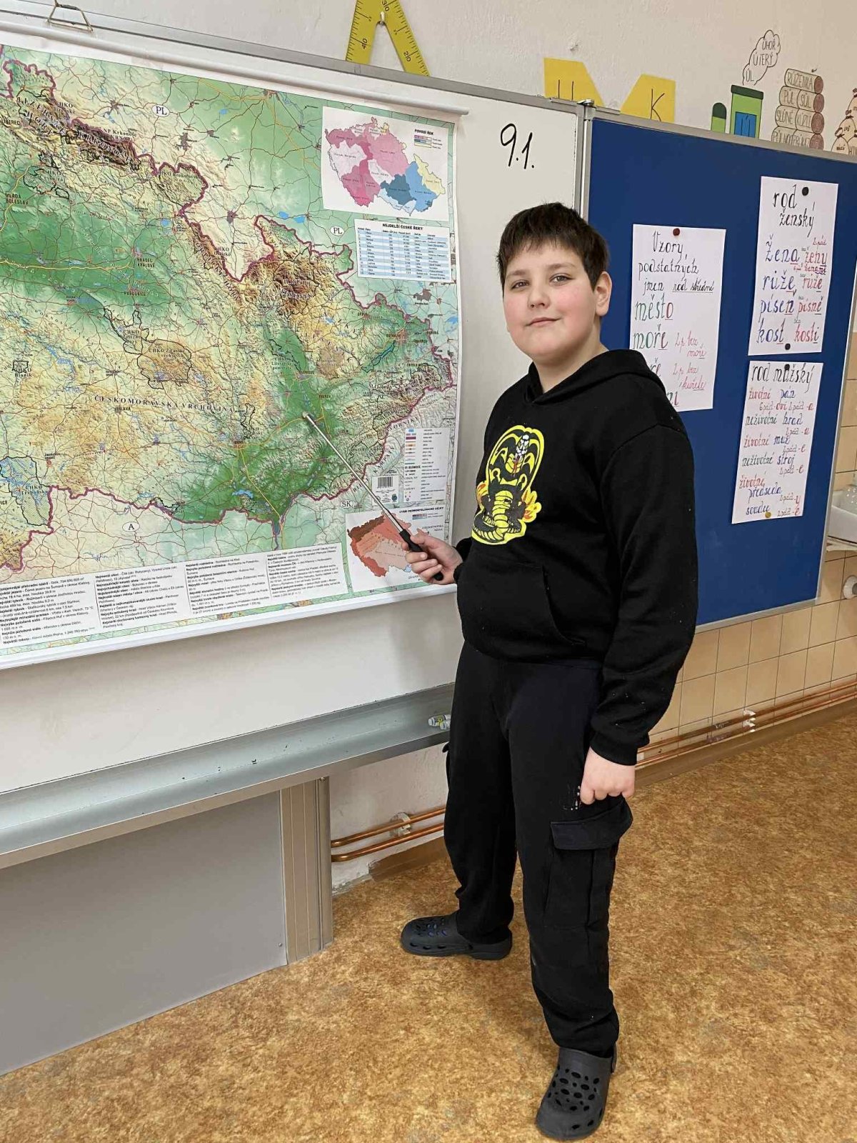 Mapa České republiky je u nás skoro pořád v akci. Víme, kde jsou řeky, hory i nížiny, a rádi to ostatním ukážeme. Pracujeme ve skupinách, plníme pracovní listy, zkoušíme Wordwall a hlavně – přemýšlíme. Vlastivěda u nás prostě žije.