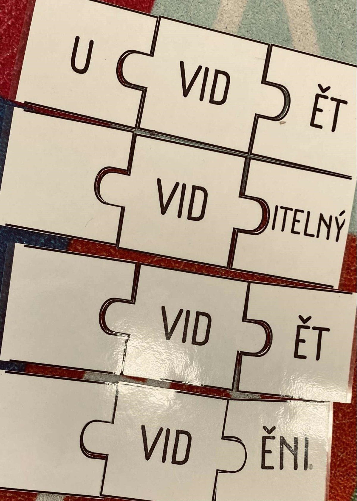 Zapomeňte na suché výklady a nekonečné zápisy do sešitu – u nás se učí v pohybu a barvách! Vytáhli jsme puzzle, rozložili je a začalo velké slovotvorné dobrodružství. Děti hledaly kořeny jako správní lingvističtí detektivové, připojovaly správné předpony a tvořily nová slova, až nám z toho skoro kořenily uši. (Nebo z toho byla radost?)