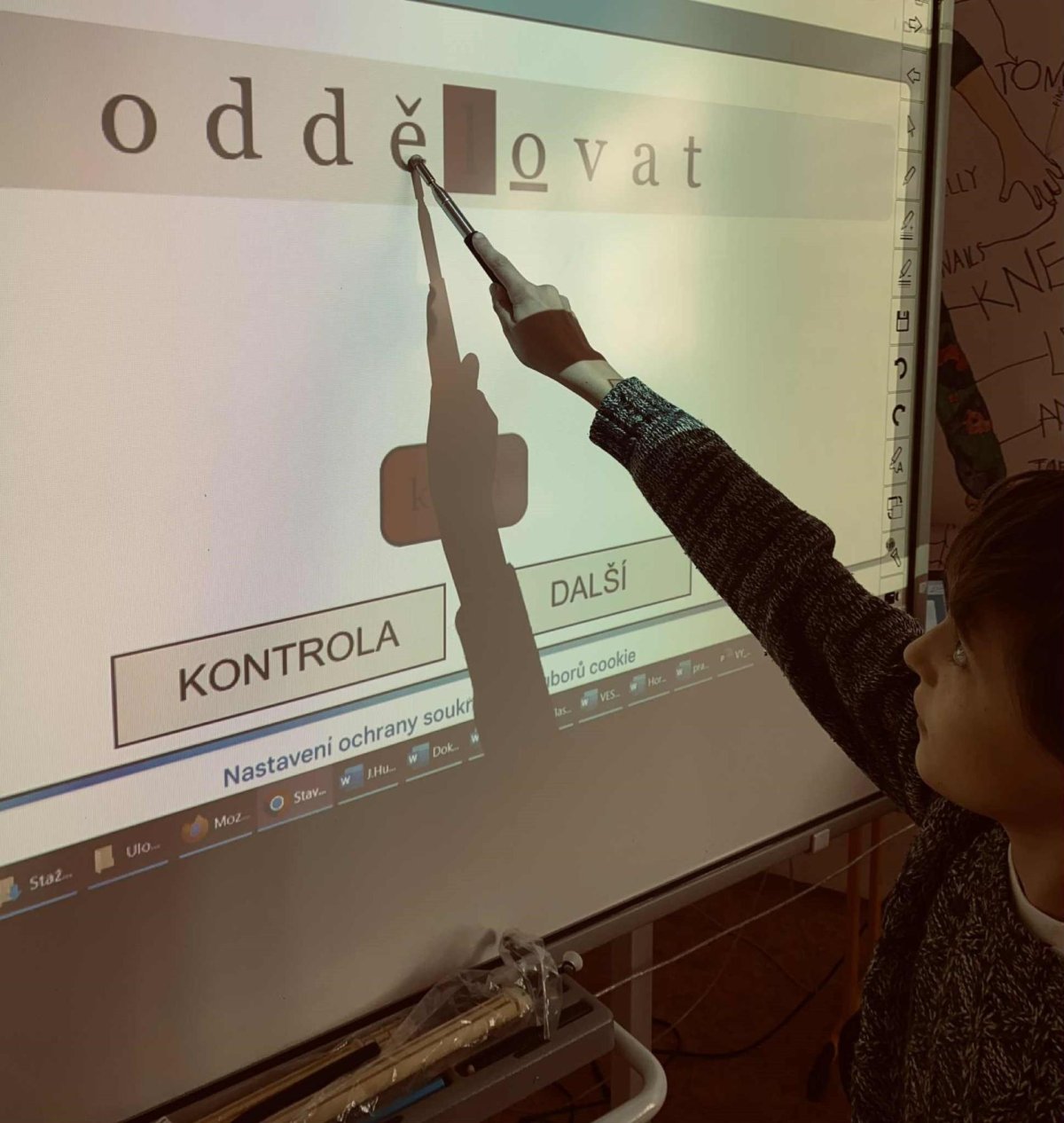 Interaktivní tabule se proměnila v hravé jeviště – střídal se Wordwall, Školákov, a kdo správně složil slovo, sklidil nejen body, ale i pochvalu od spolužáků.