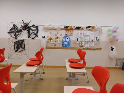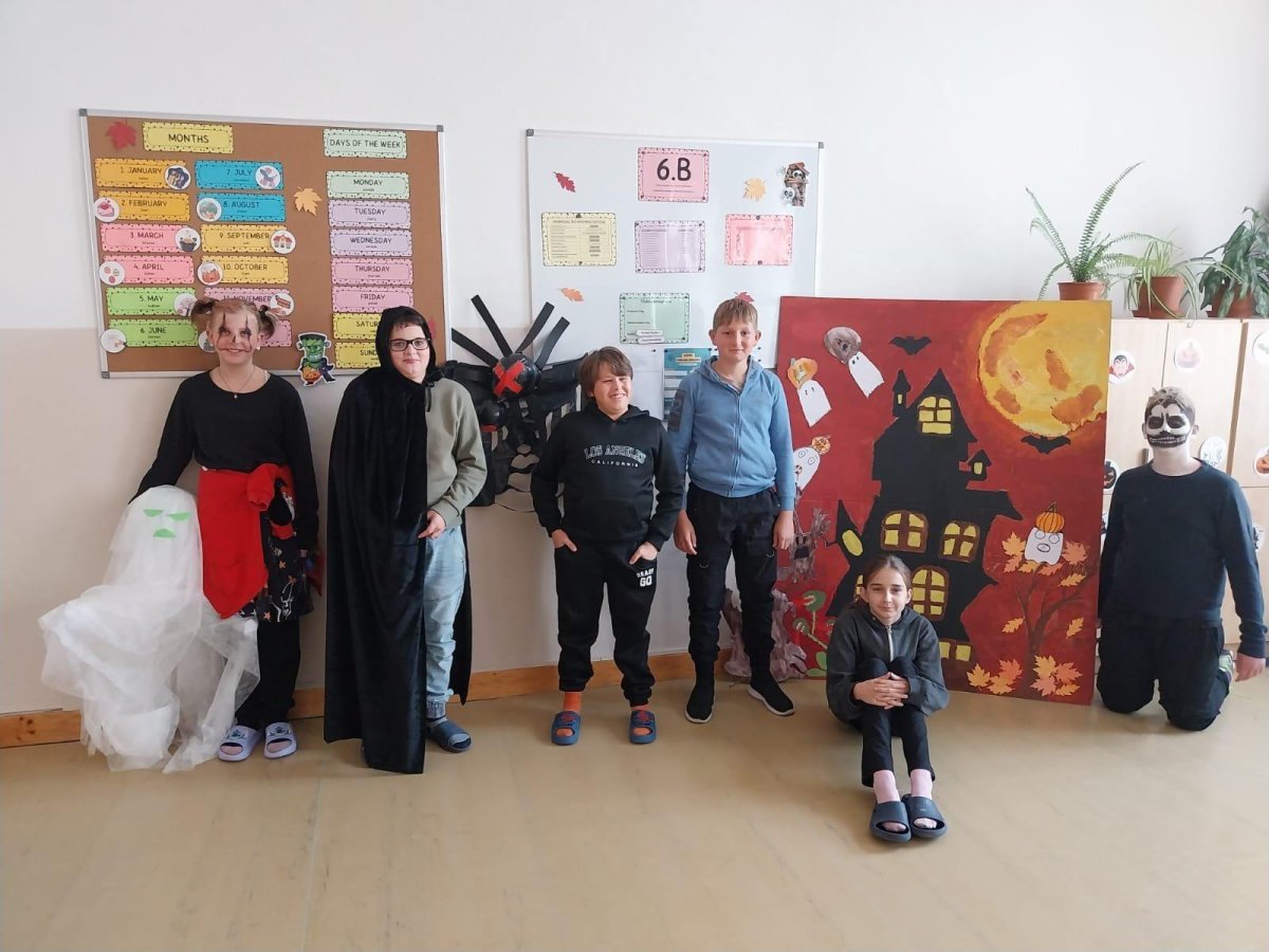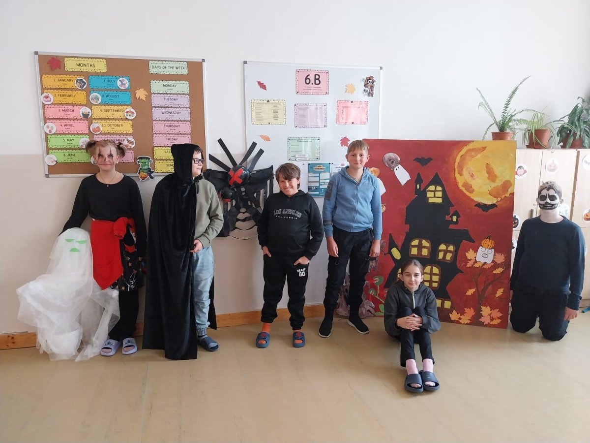 Naše třída 6.B se do letošního Halloweenu pustila s obrovským nadšením. I když jsme spolu teprve krátce, ukázalo se, že tvoříme skvělý tým. Společně jsme proměnili učebnu v strašidelně kouzelné místo plné duchů, netopýrů, dýní a pavouků – a výsledek stál za to.