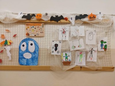 Díky nápaditosti, spolupráci a poctivé práci jsme získali 1. místo v soutěži o nejhalloweenskou výzdobu třídy! A jako bonus – náš kostlivec Pavel vyhrál soutěž o nejlepší masku!
