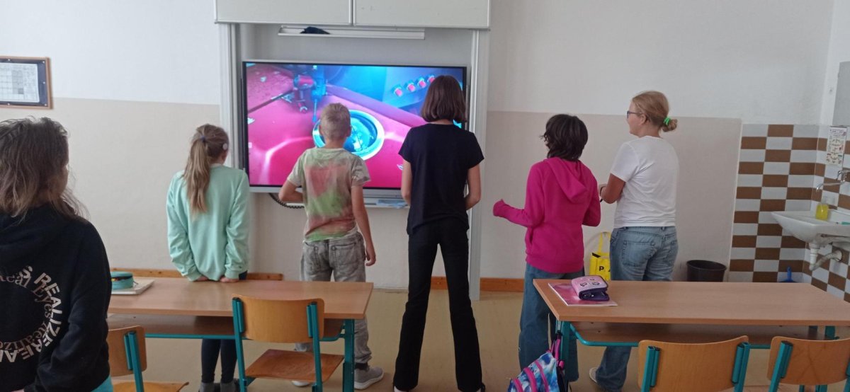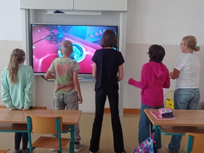 Žáci 6. C využívají přestávky nejen k odpočinku, ale také k zábavě a pohybu.