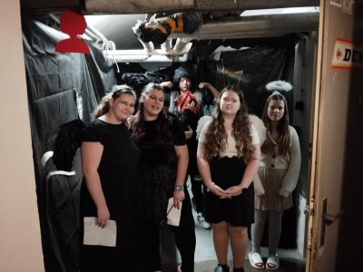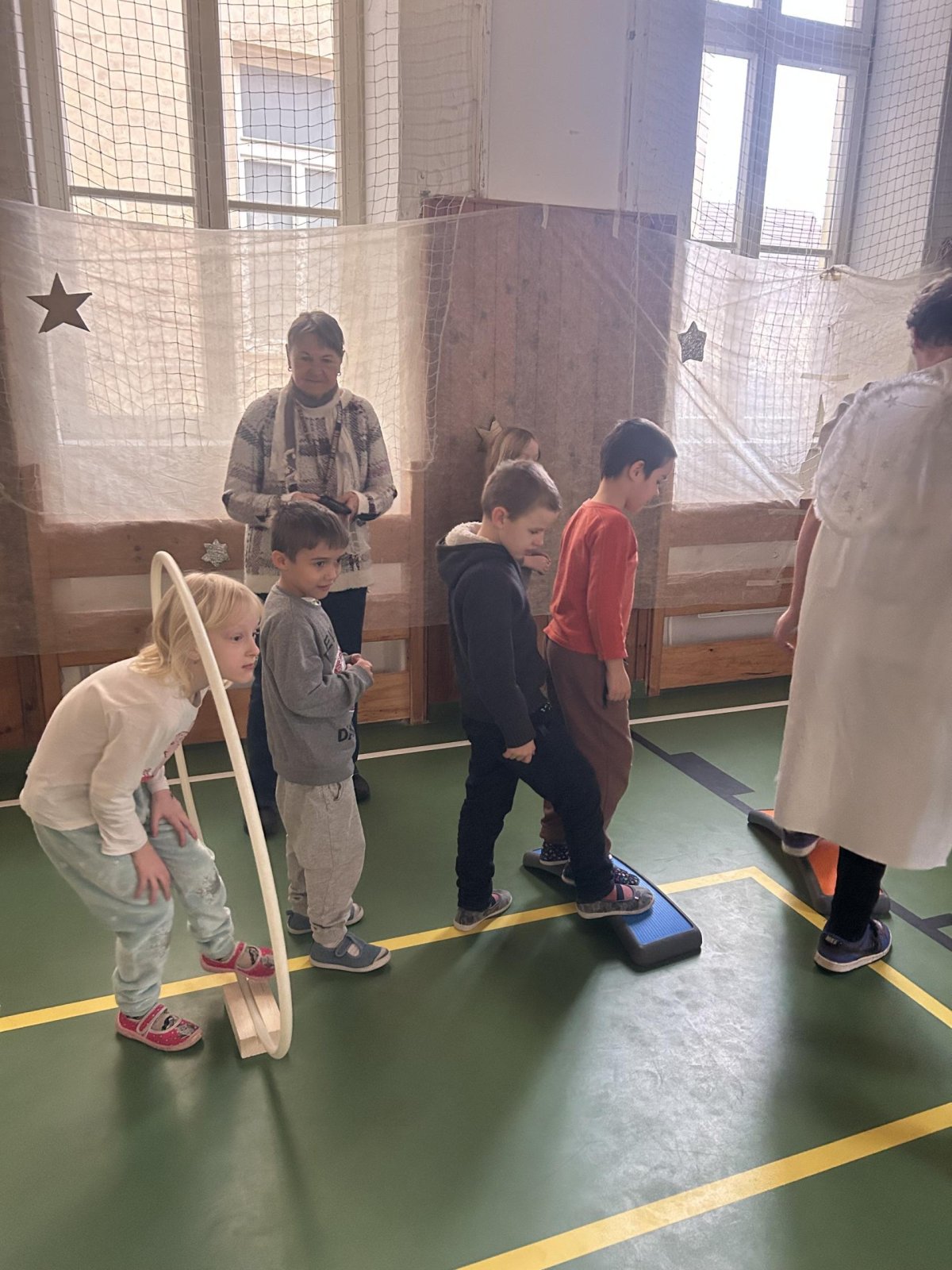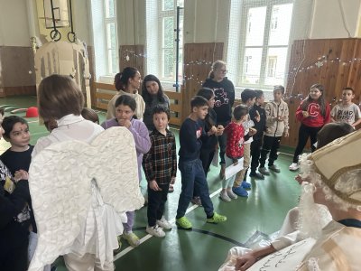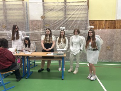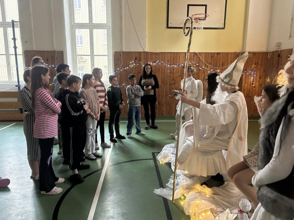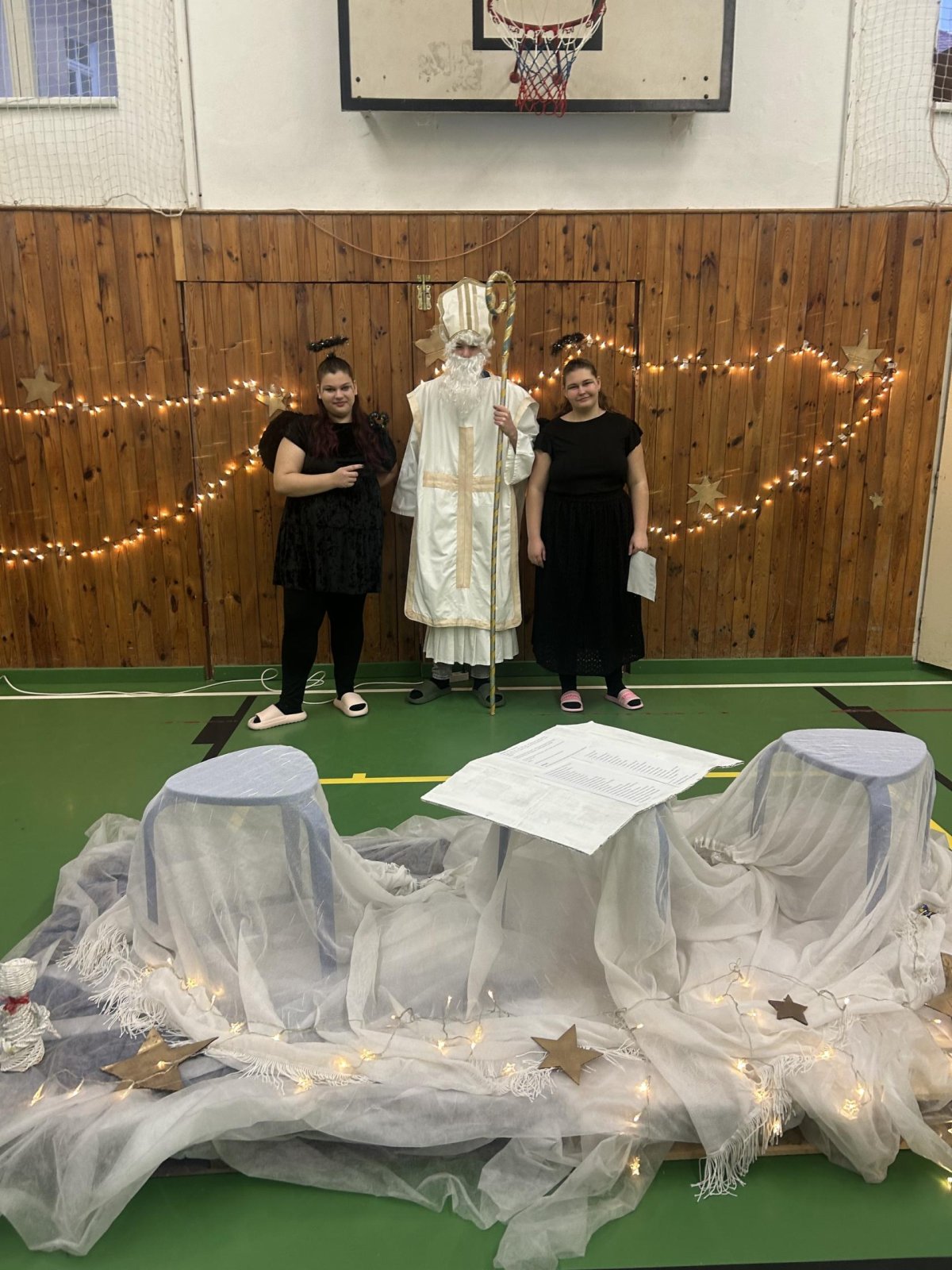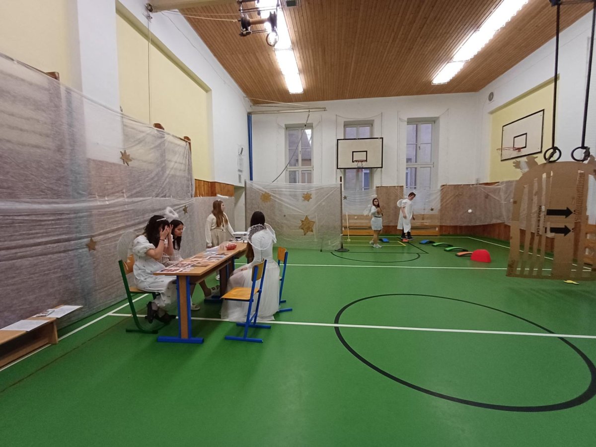 V pekle děti čekala tma a čerti je prověřili hmatovým poznáváním tvarů, následovala ochutnávka „pekelného“ nápoje a krátká audience u vládce pekel. Odtud žáky dva „padlí“ andělé odvedli do nebe. Děti zvládly překážkovou dráhu k nebeské bráně, nechaly si namalovat obličej a nakonec společně přivolaly Mikuláše. Ten je pochválil za jejich dobré skutky a povzbudil je, aby v nich pokračovaly. Na závěr dostaly perníčky, které napekla a nazdobila třída 8.B.