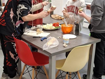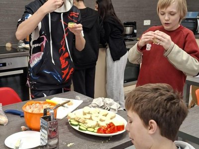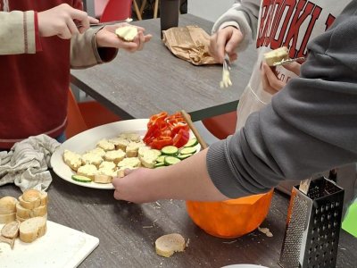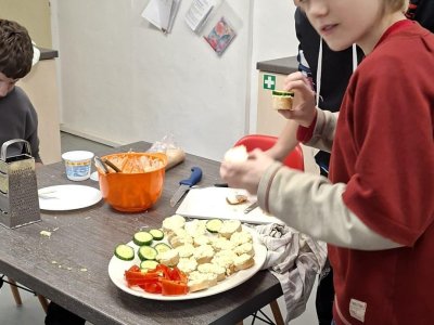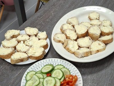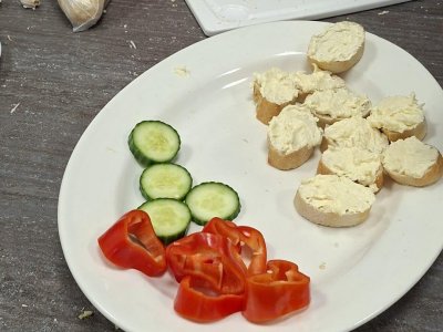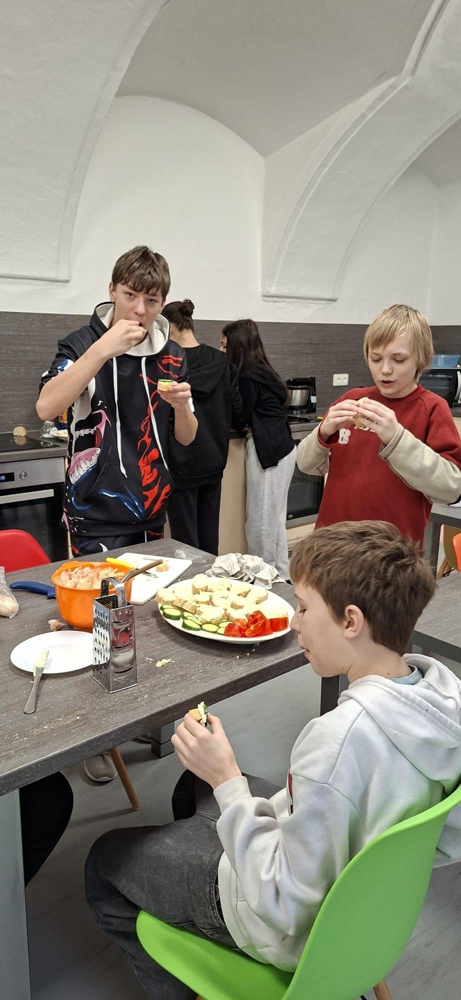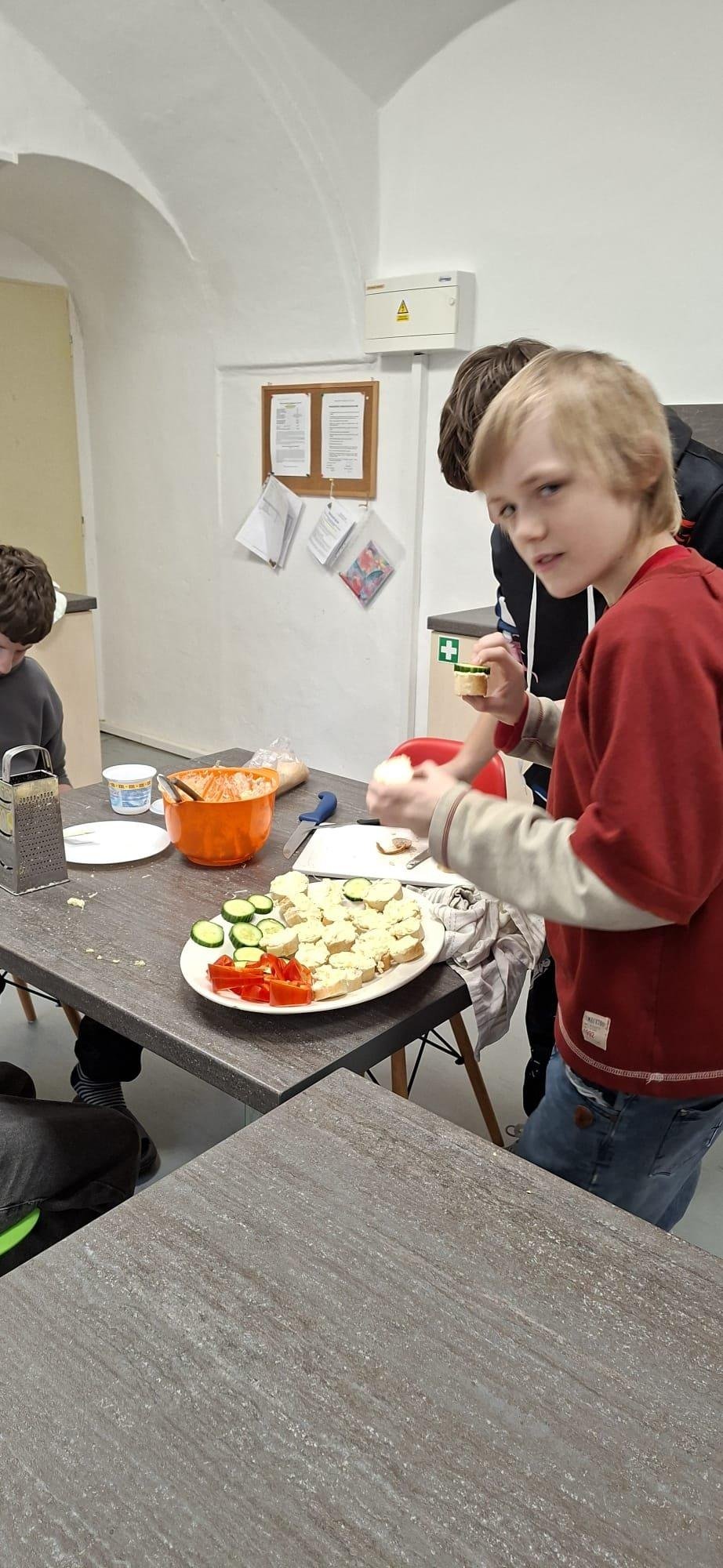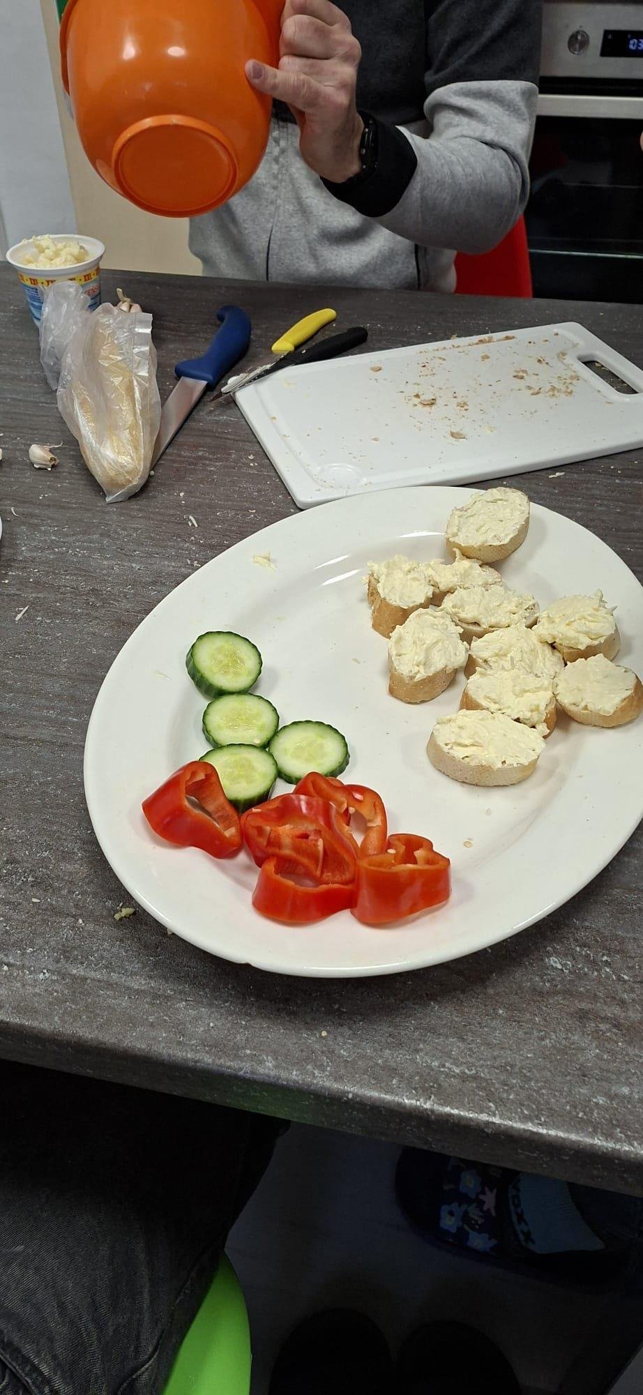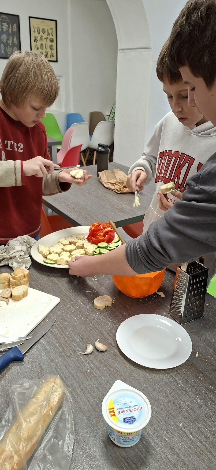 V hodině pracovních činností si žáci vyzkoušeli přípravu česnekové a vaječné pomazánky. Sami si připravili suroviny, pomazánky společně vyrobili, ochutnali, namazali na rohlíky a kreativně si je nazdobili. Nechyběla spolupráce, radost z práce ani dobrá nálada, která celou aktivitu provázela.