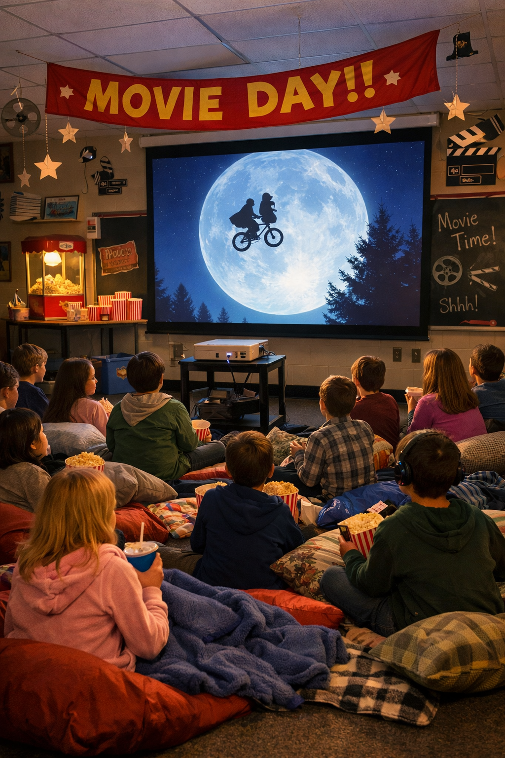 V den rozdávání vysvědčení v naší škole proběhl filmový den. Celkem se ve čtyřech místnostech promítaly čtyři snímky.
