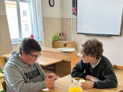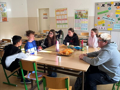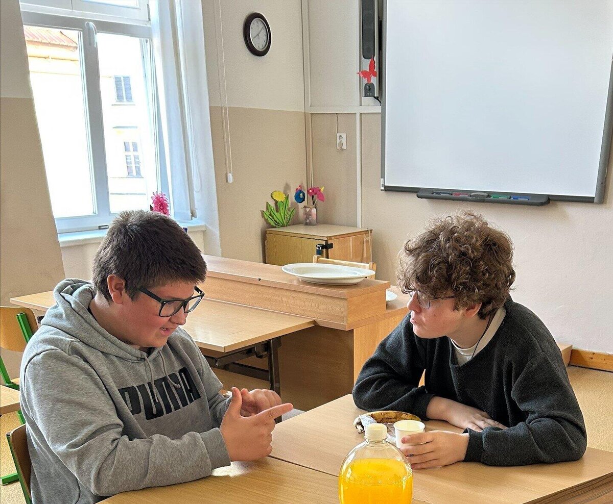 Dnešní hodina se nesla v pohodové a trochu slavnostní atmosféře. Povídali jsme si a k tomu jsme si „procvičili mozkové závity“ u matematických hádanek a kvízů, které nás občas pěkně potrápily, ale o to víc nás bavily.