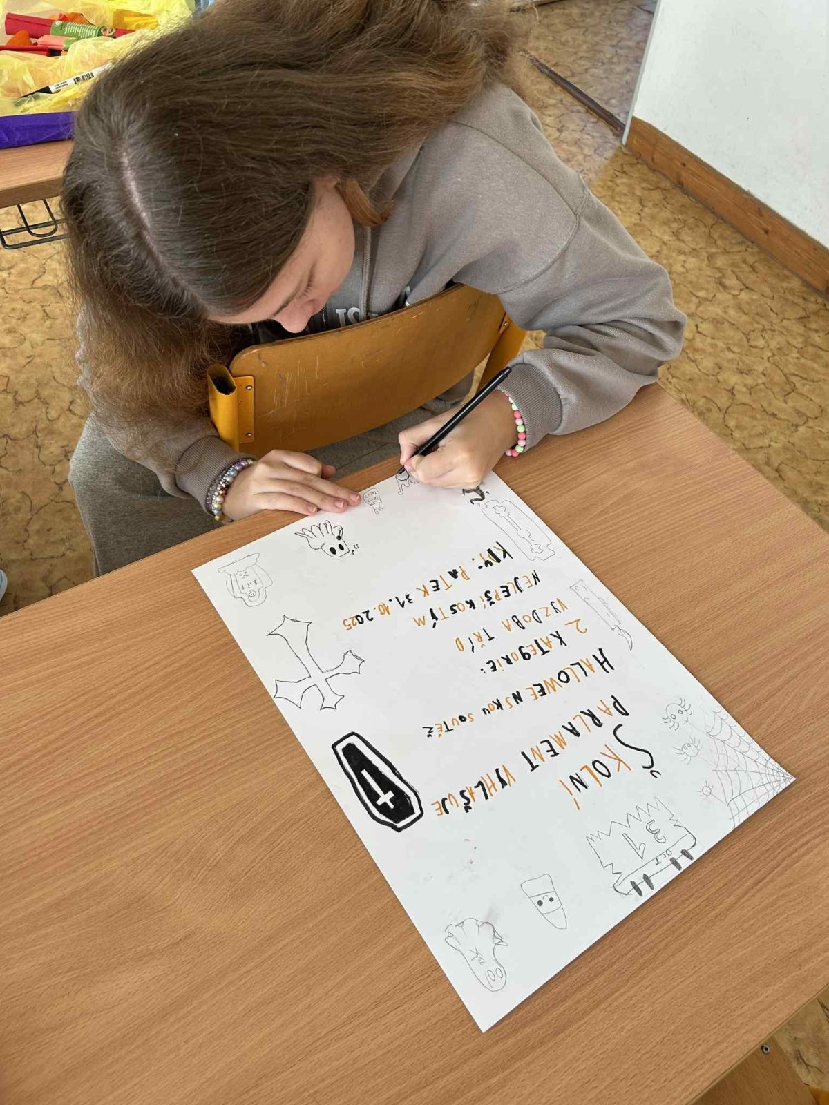 V naší třídě to v posledních dnech žilo přípravami na Halloween. Vyráběli jsme strašidelnou výzdobu, ladili kostýmy a chystali všechno tak, aby měla třída tu správnou tajemnou atmosféru.